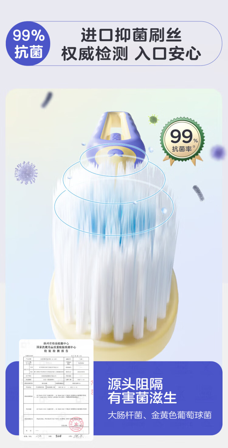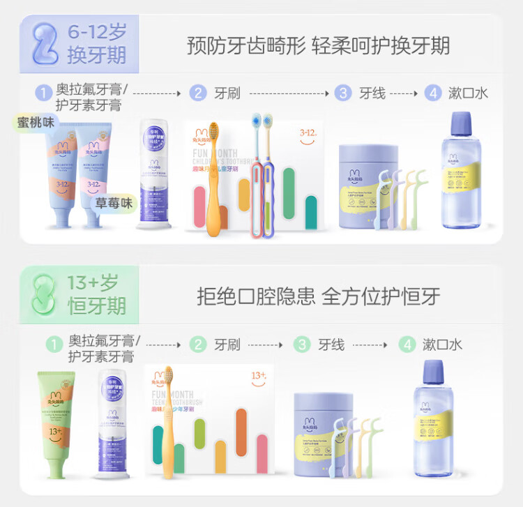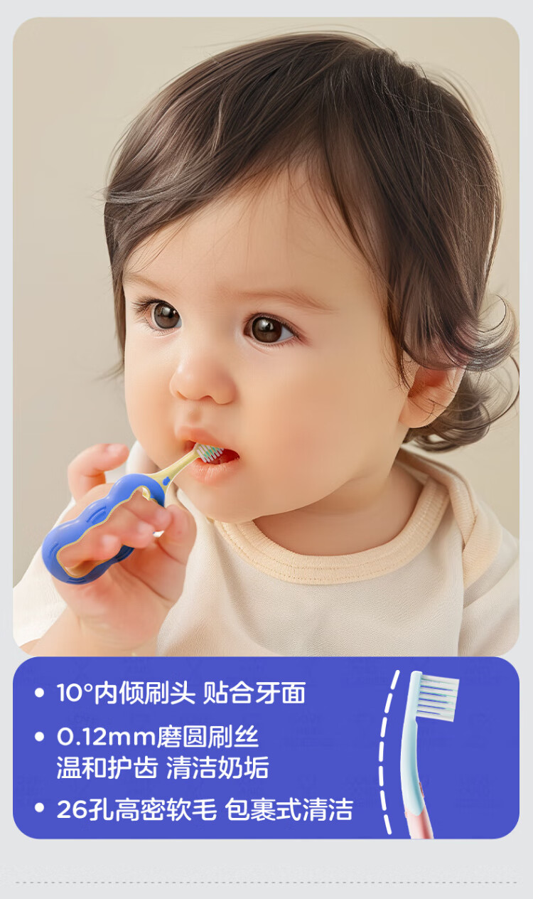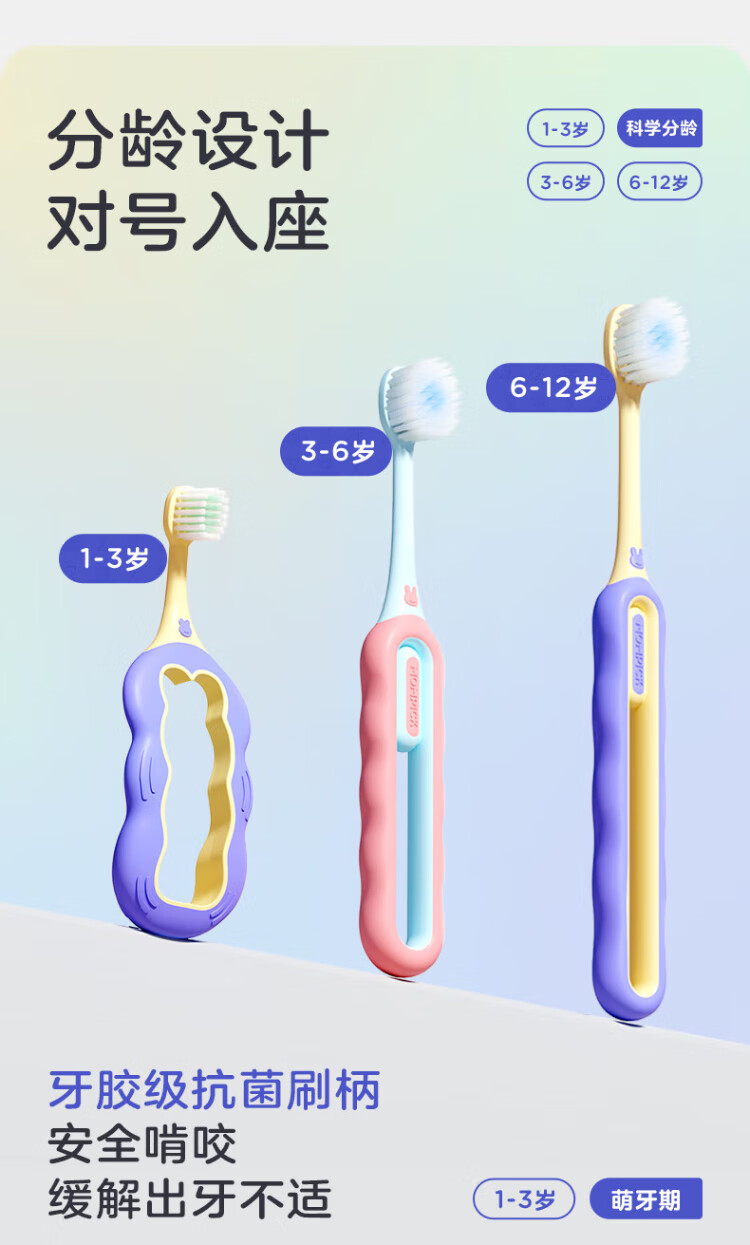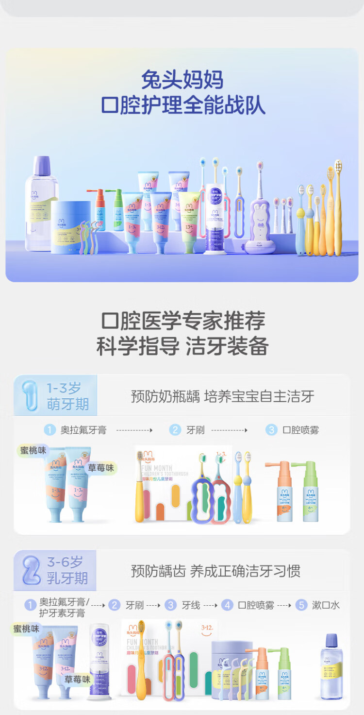 Rabbit Head Mom Children's Double Speed Toothbrush 6-12 years old, lightweight and portable, wider and thinner, 4 pieces in total, blue and pink Nezha set