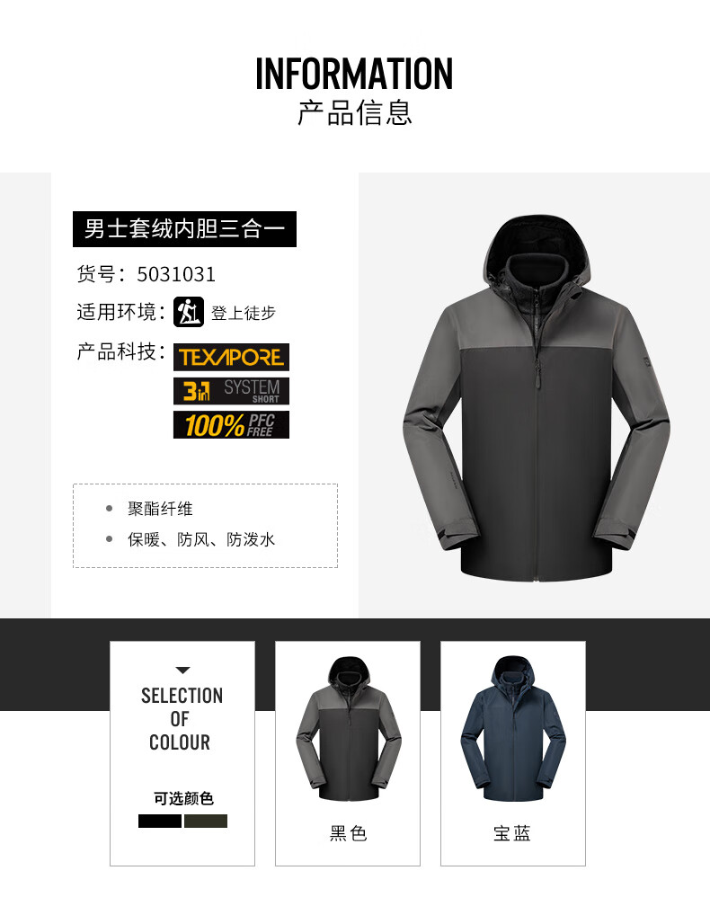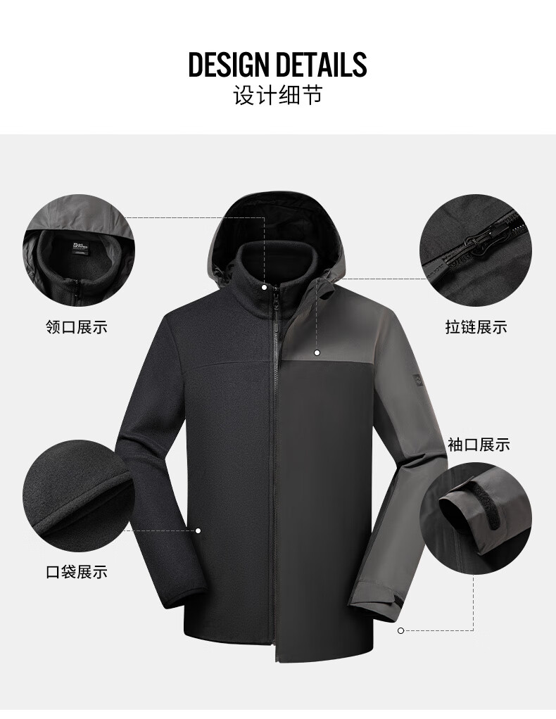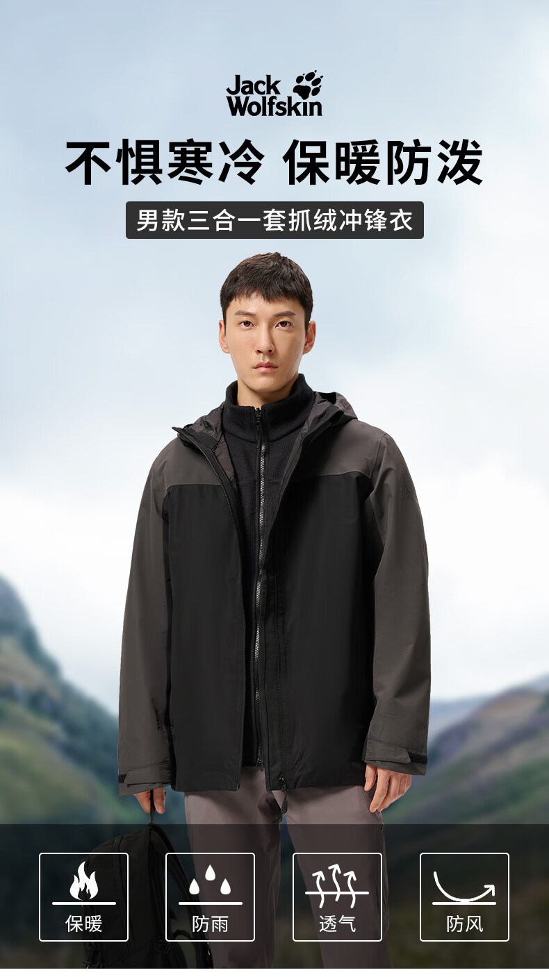 Jack Wolfskin Wolf Claw Jacket Men's Windproof and Waterproof Fleece Three-in-One Jacket 5031031 Royal Blue/Size Large