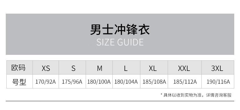 China (cm) 165 / 88-90 170 / 96-98 175 / 108-110 180 / 118-122 185 / 126-130
