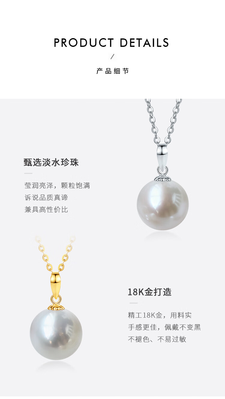 Pearl Queen domestic product 18K gold Edison pearl pendant strong luster necklace clavicle chain birthday gift for women