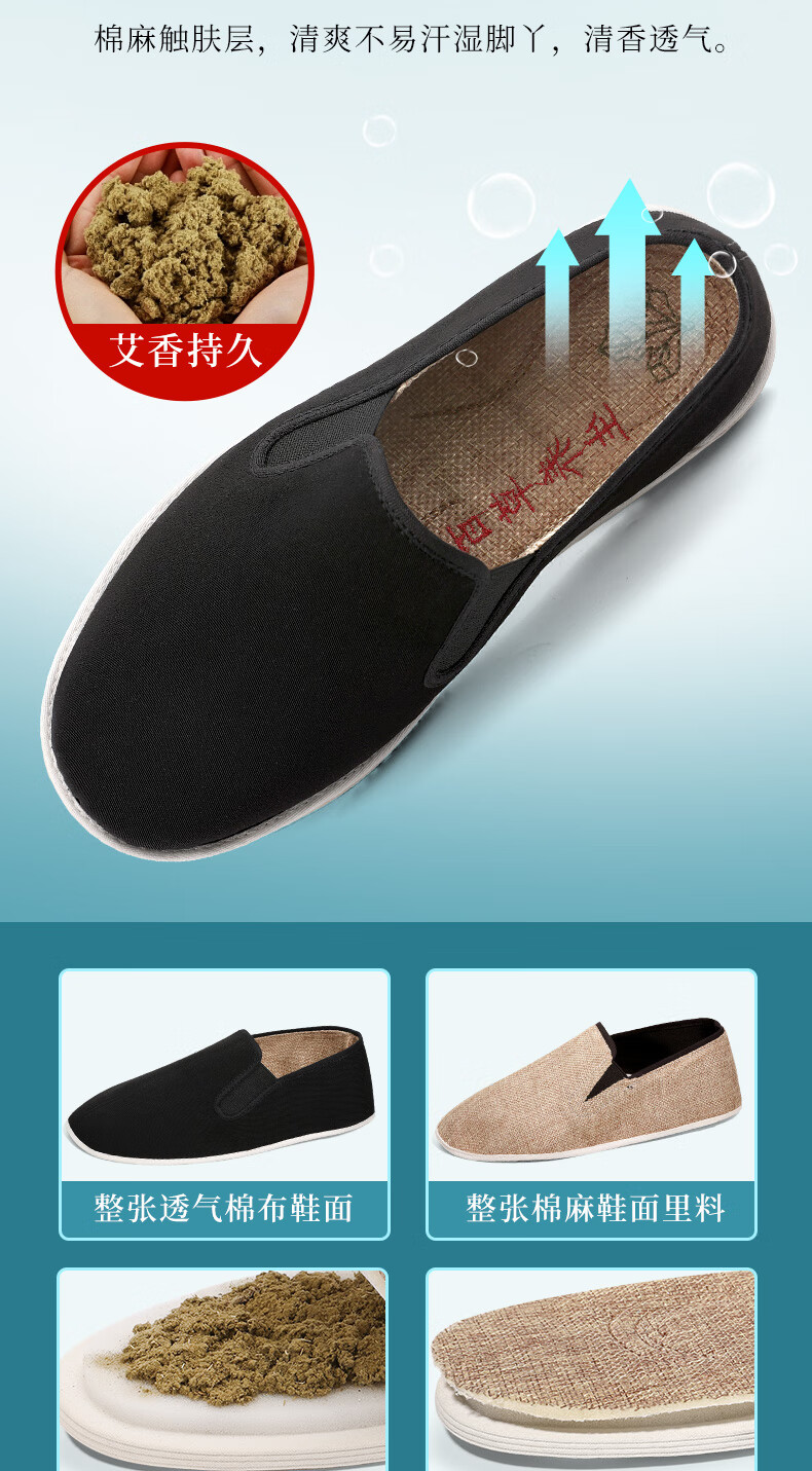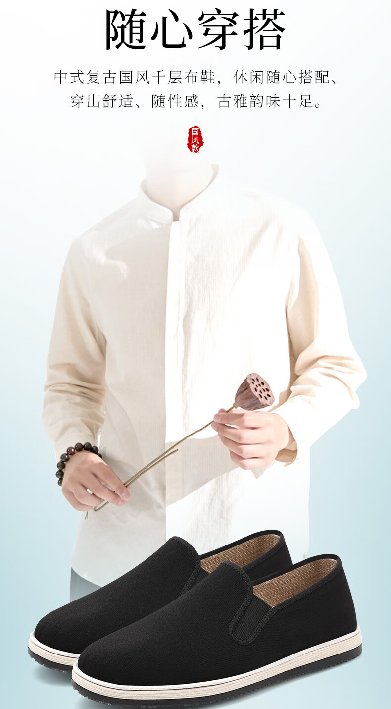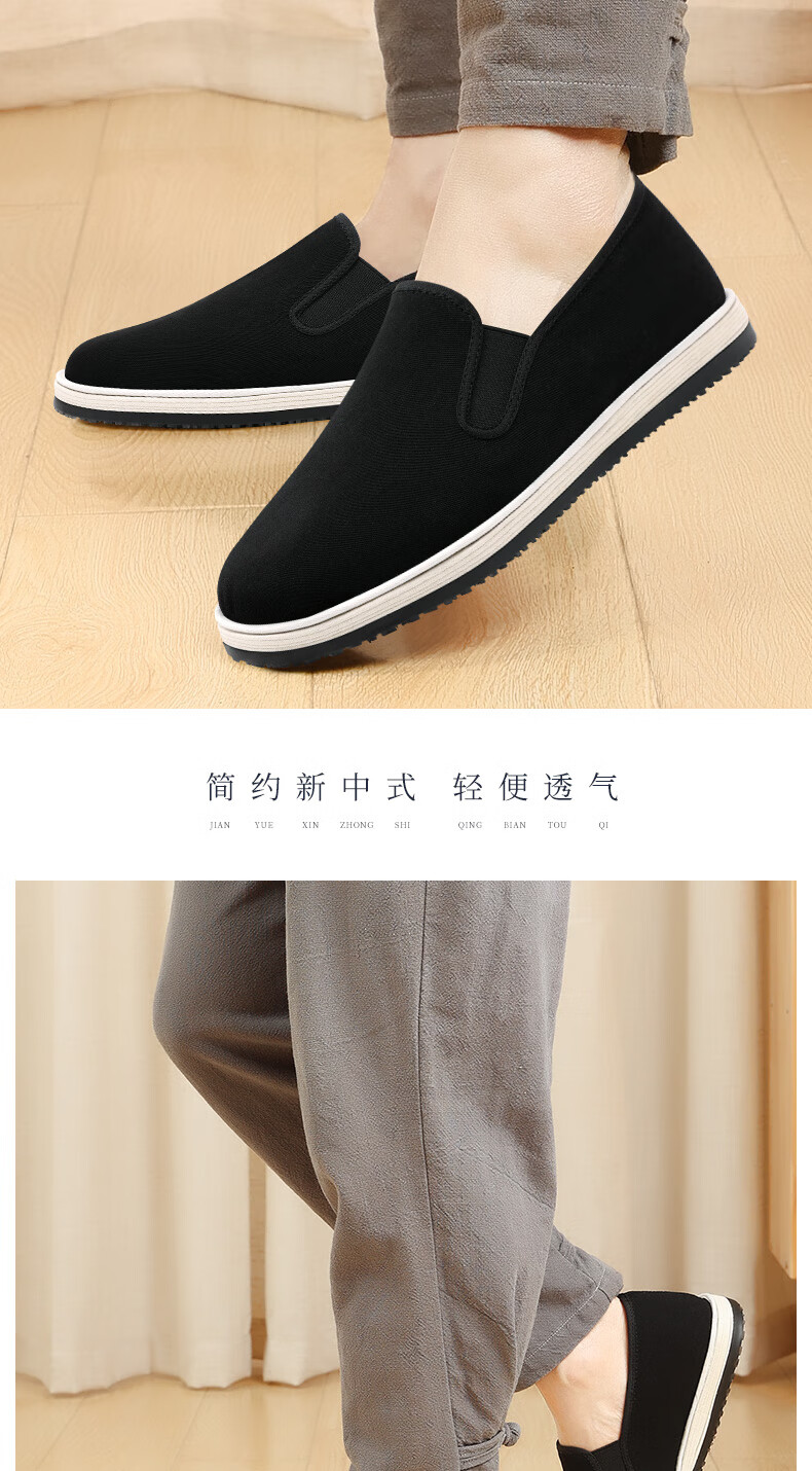 Bu Sheyuan Chinese style slip-on lazy mugwort traditional thousand-layer casual men's old Beijing cloth shoes 411-0411 black 40