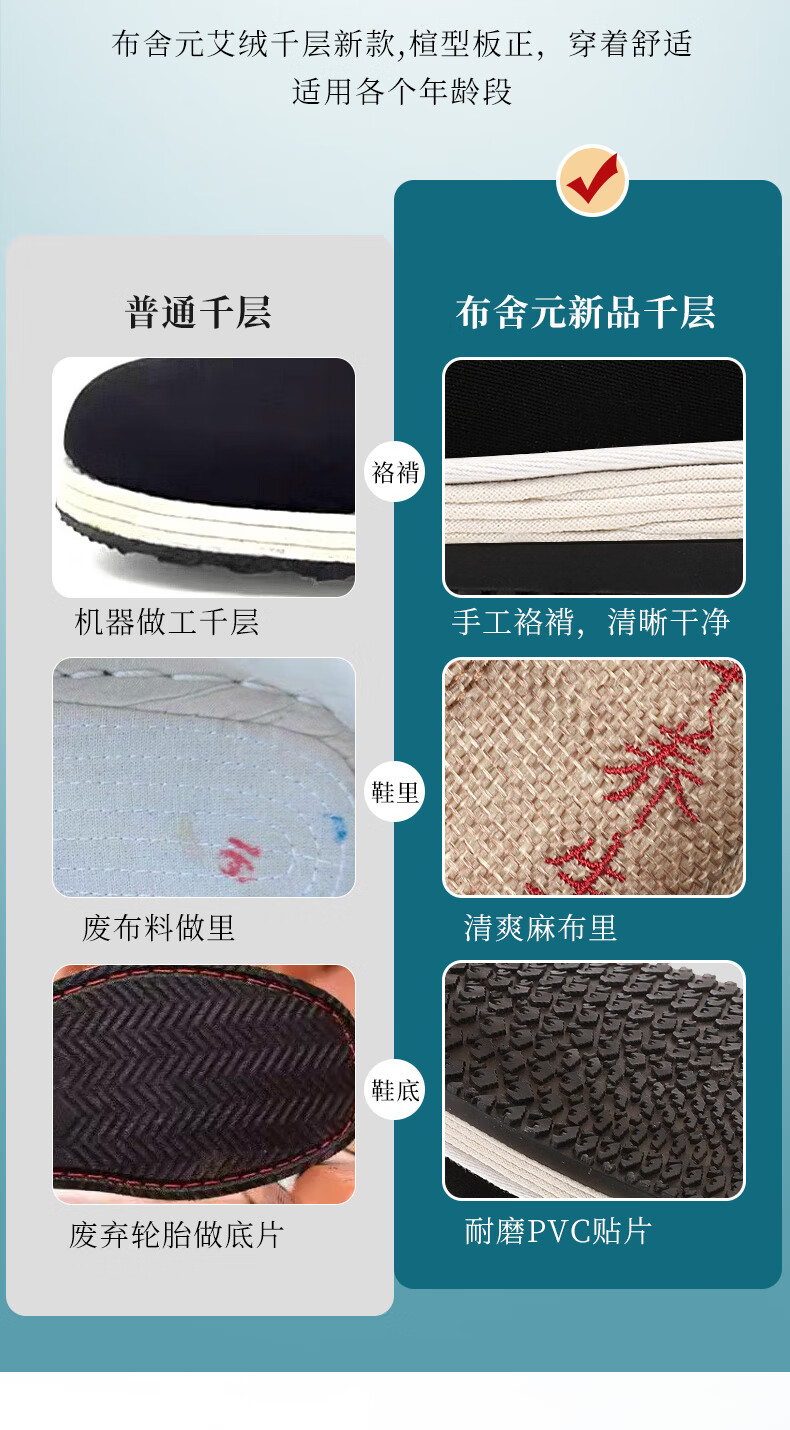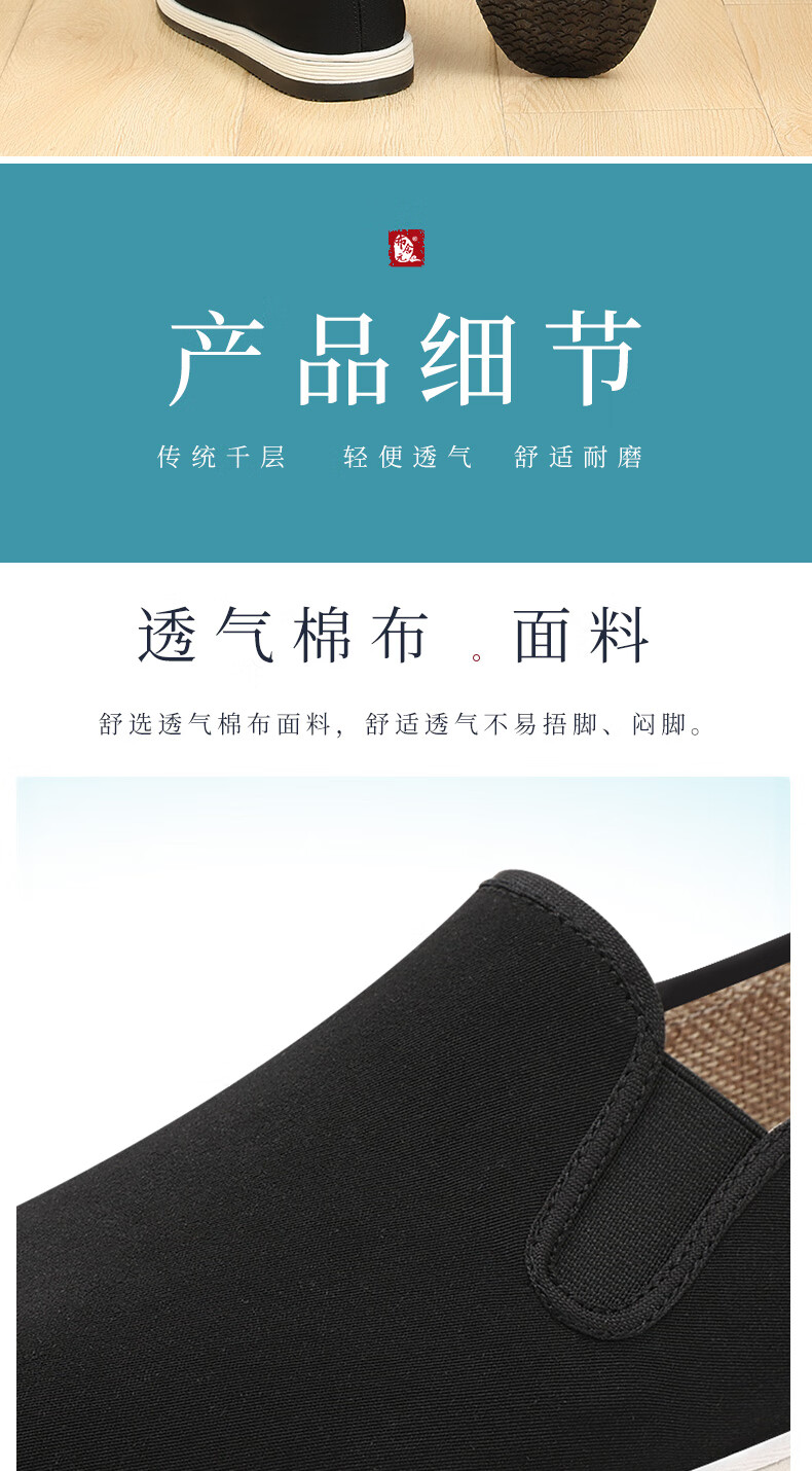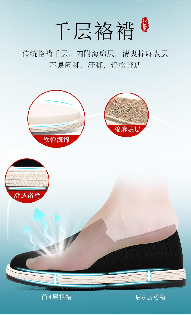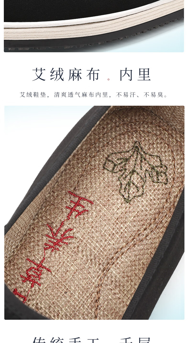 Bu Sheyuan Chinese style slip-on lazy mugwort traditional thousand-layer casual men's old Beijing cloth shoes 411-0411 black 40