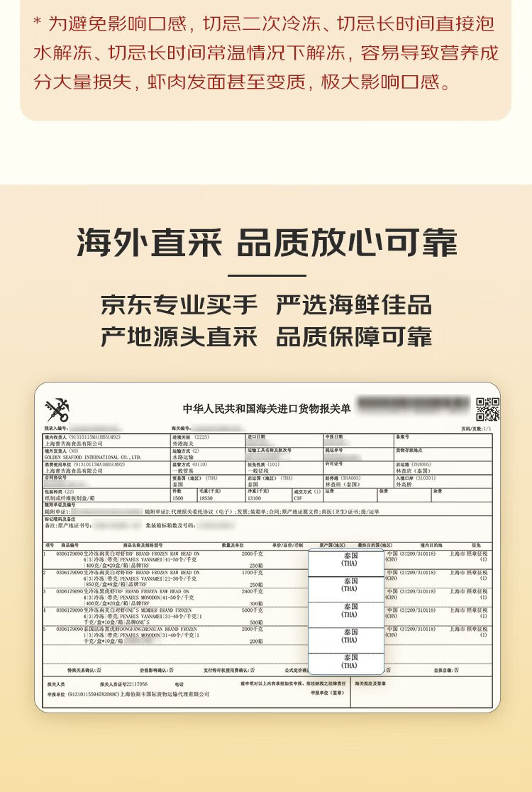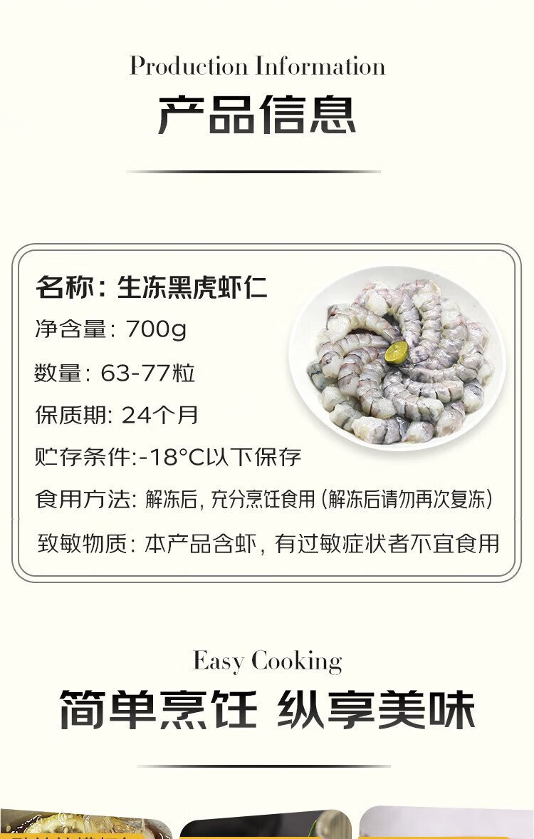 Jingdong Supermarket Overseas Direct Purchase Thai Black Tiger Shrimp Net Weight 700g (63-77 pieces/bag) No water-retaining agent to remove shrimp threads