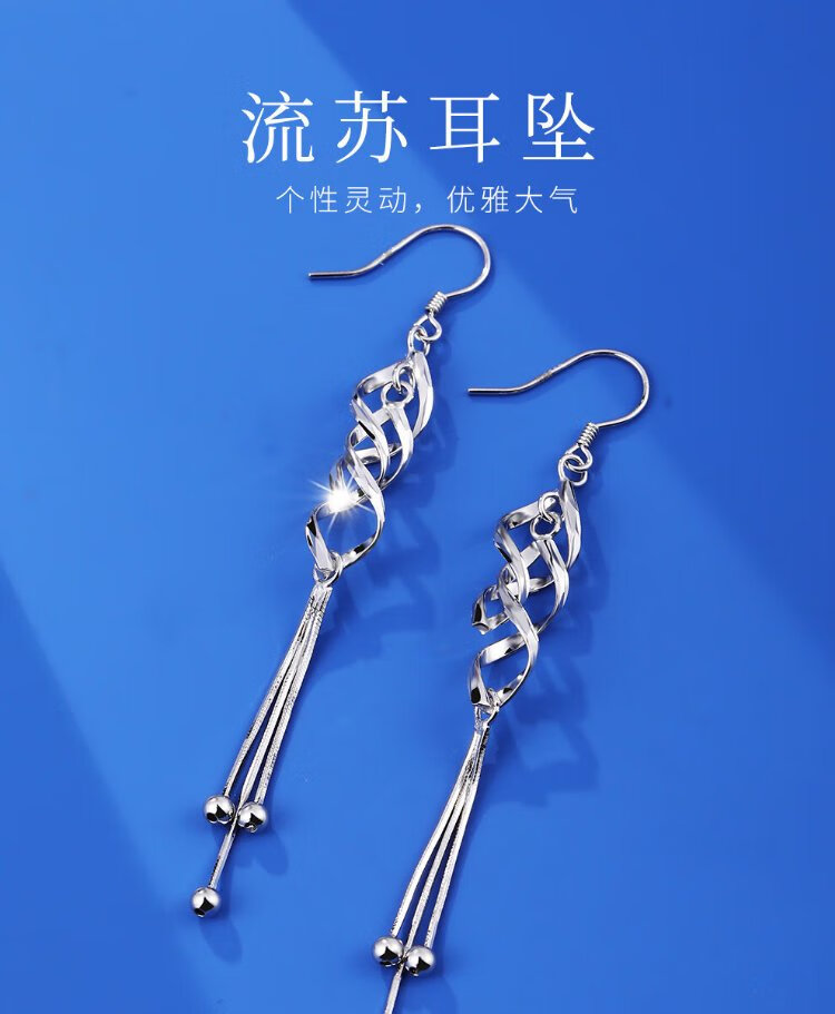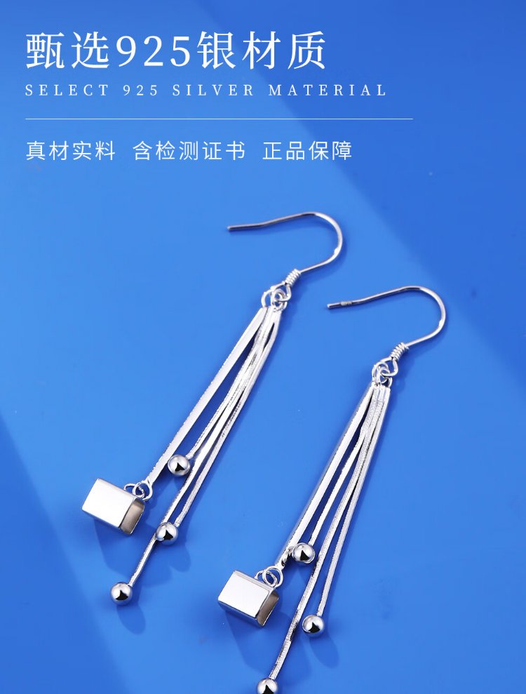 Old silversmith s925 silver tassel silver earrings for women, fashionable niche design, Valentine's Day gift for women, commuting silver earrings