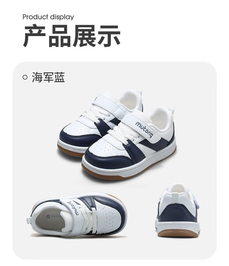 Shepherd Kindergarten White Shoes Girls Spring and Autumn Baby Shoes Boys Low-top Casual Shoes Navy Blue Size 22