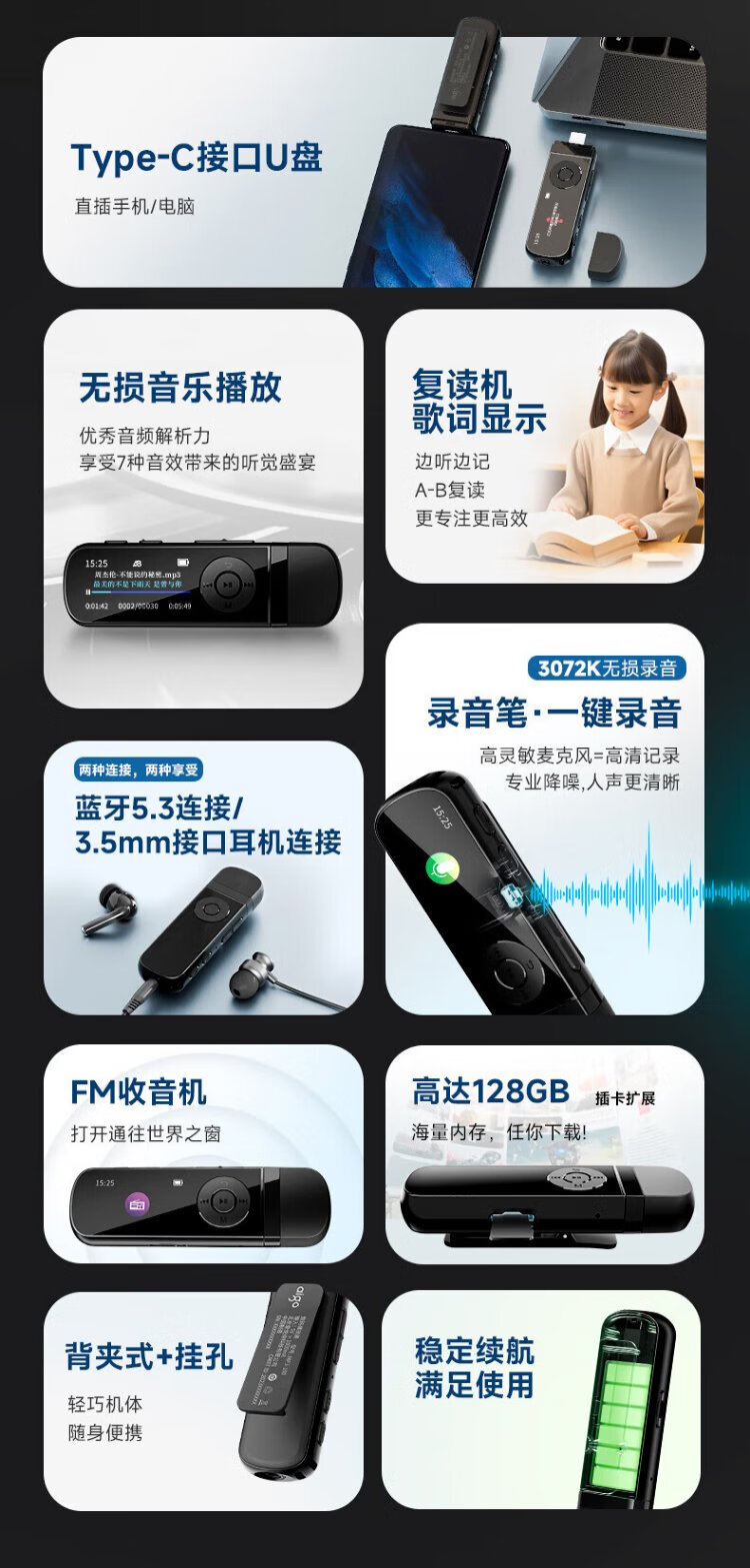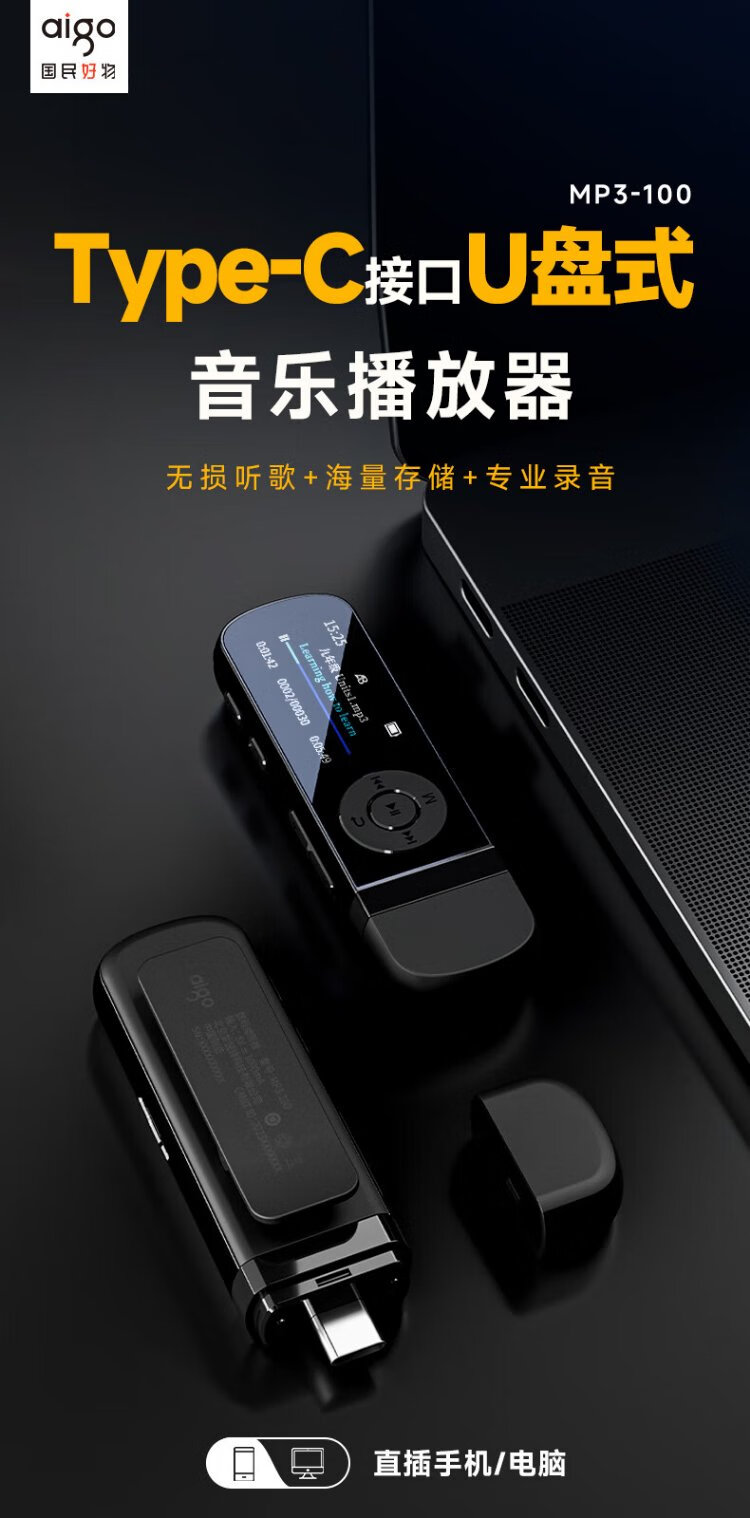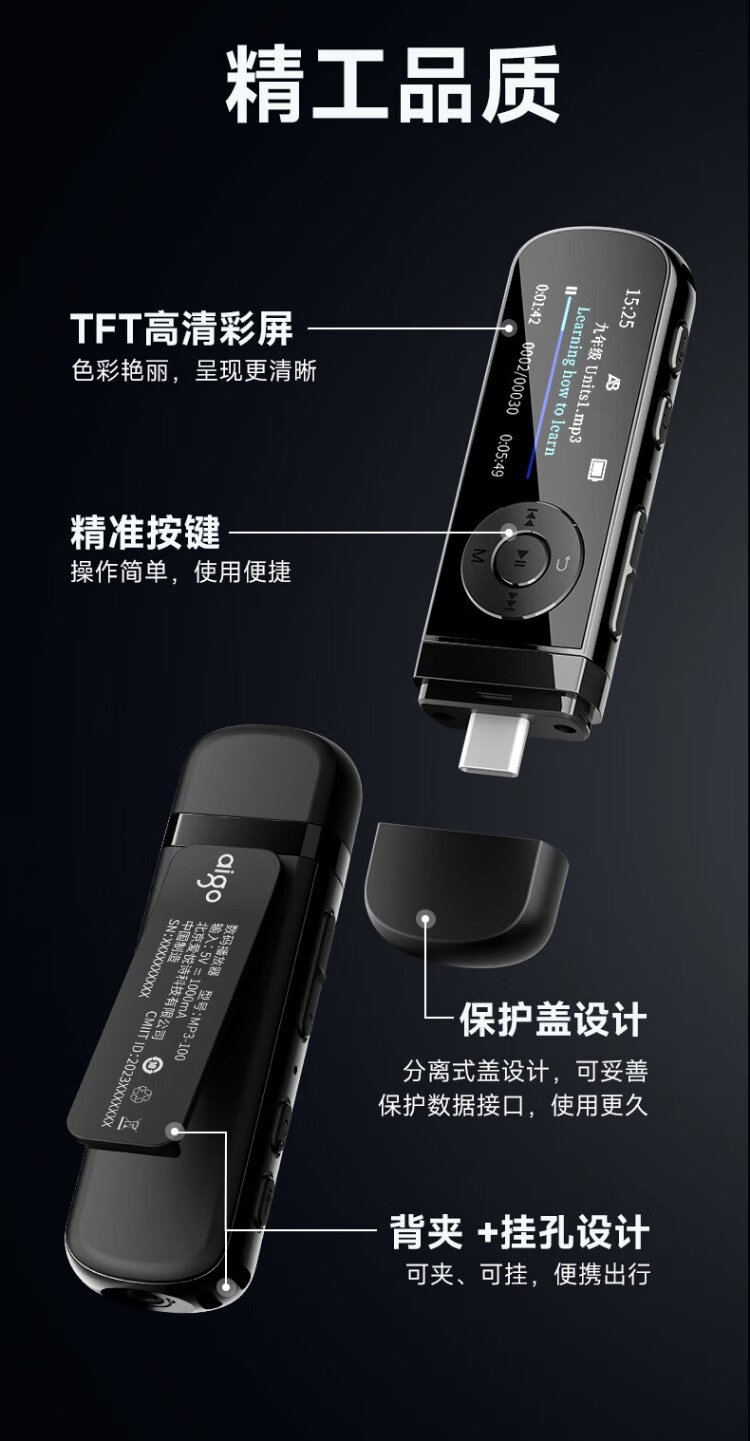 Patriot (aigo) mp3-100 32G portable mp3 music player mp4 Bluetooth student walkman English sports running recording U disk USB-C port expandable