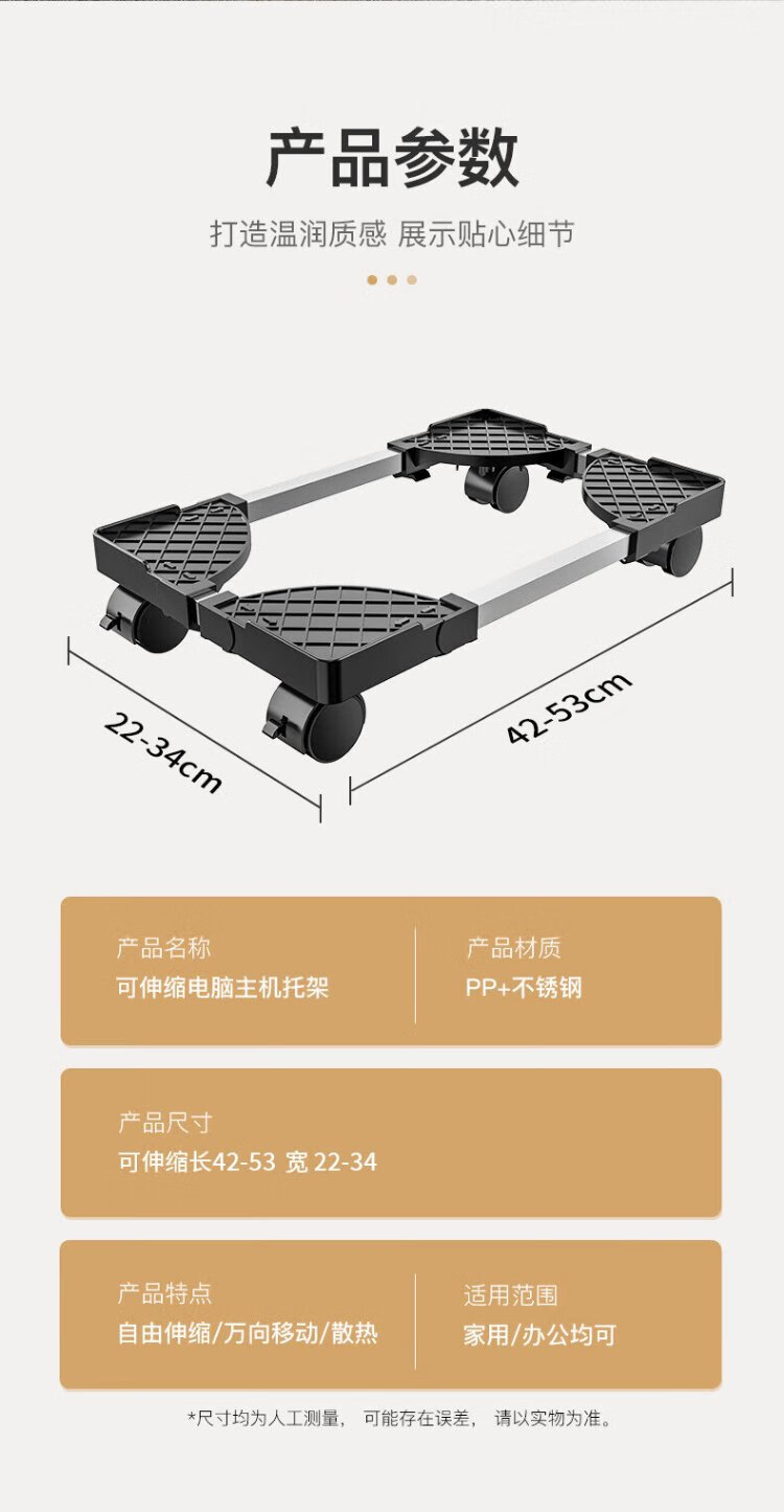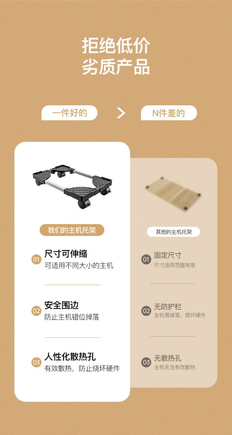 Liantuo host bracket movable desktop computer host chassis bracket base host mobile tray universal pulley lock wheel free movement thickened load-bearing length and width adjustable