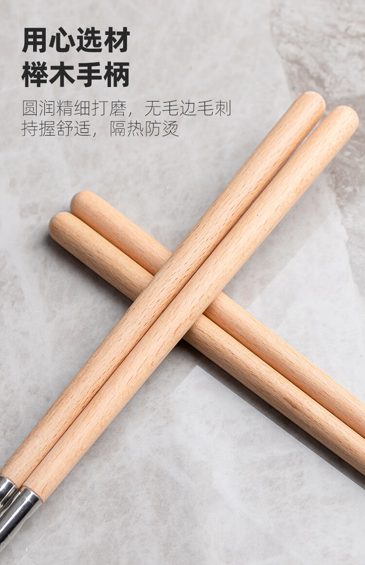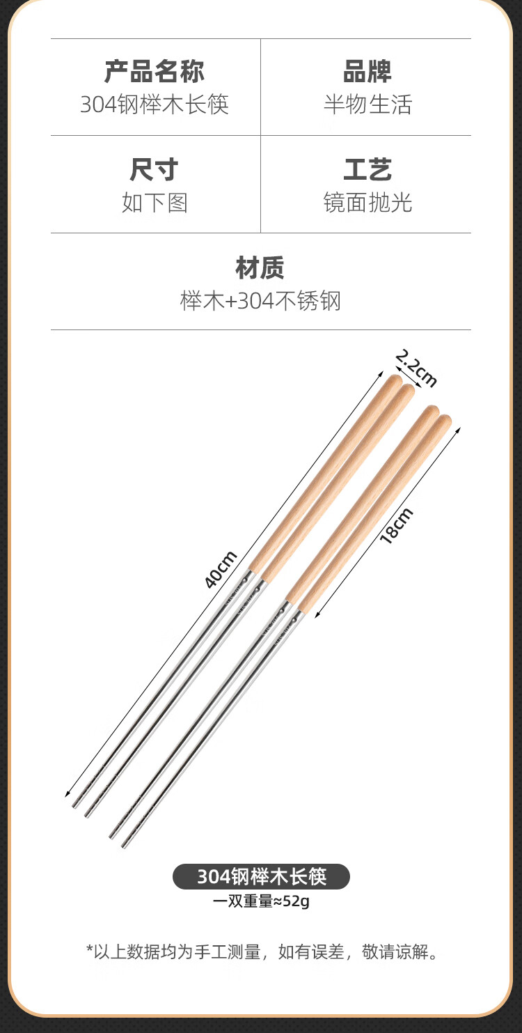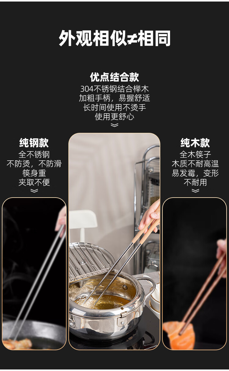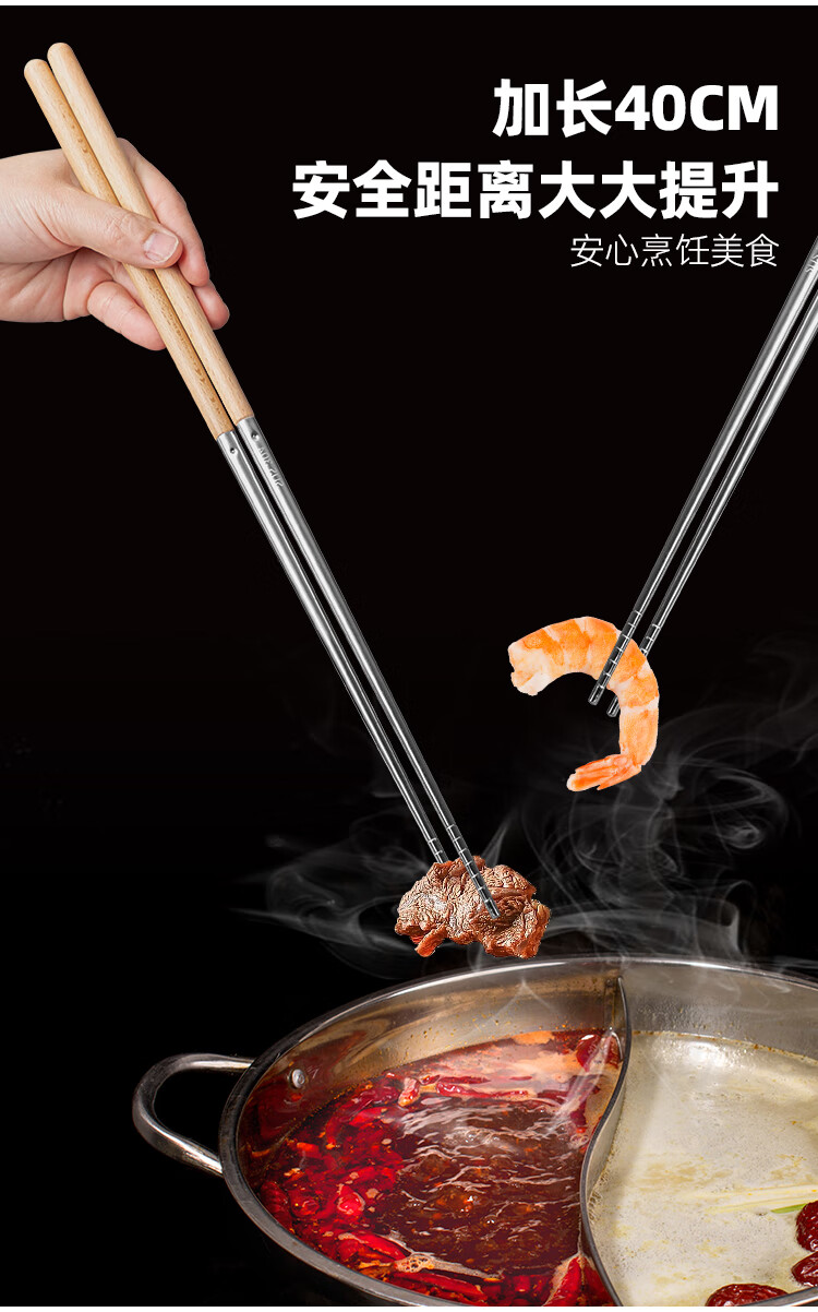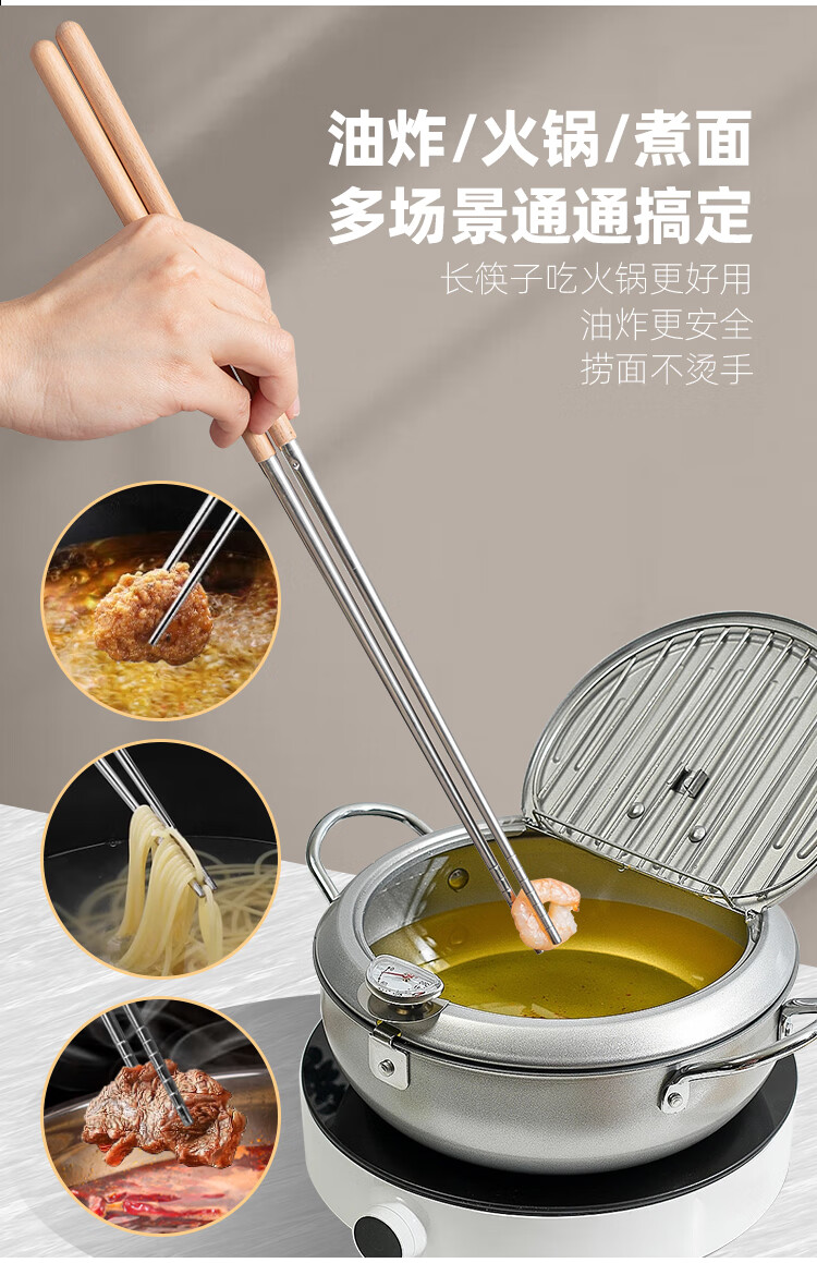 半物生活油炸加长筷子304不锈钢榉木长款火锅筷耐高温防烫捞面炸油条筷子