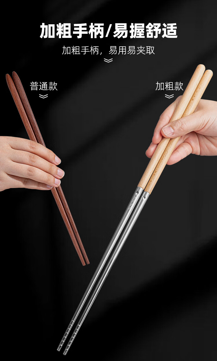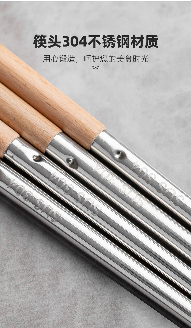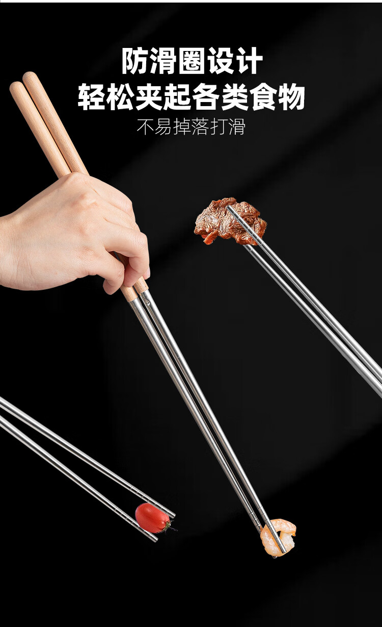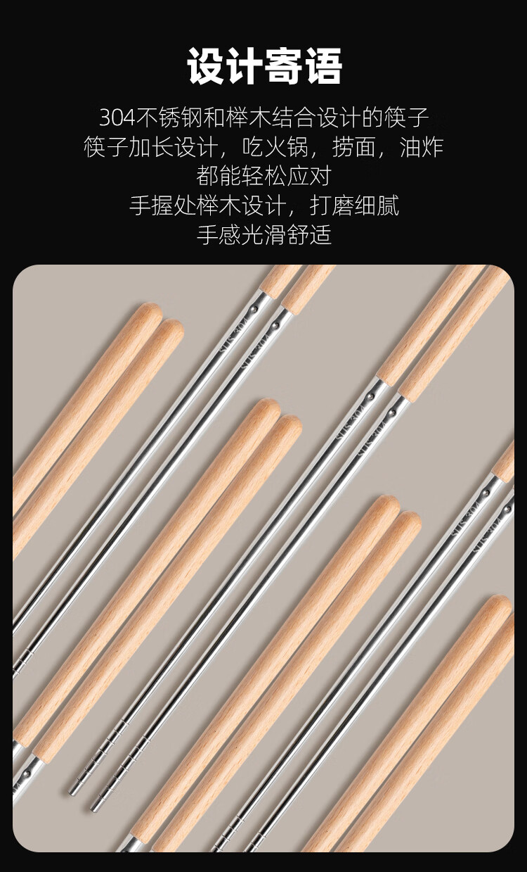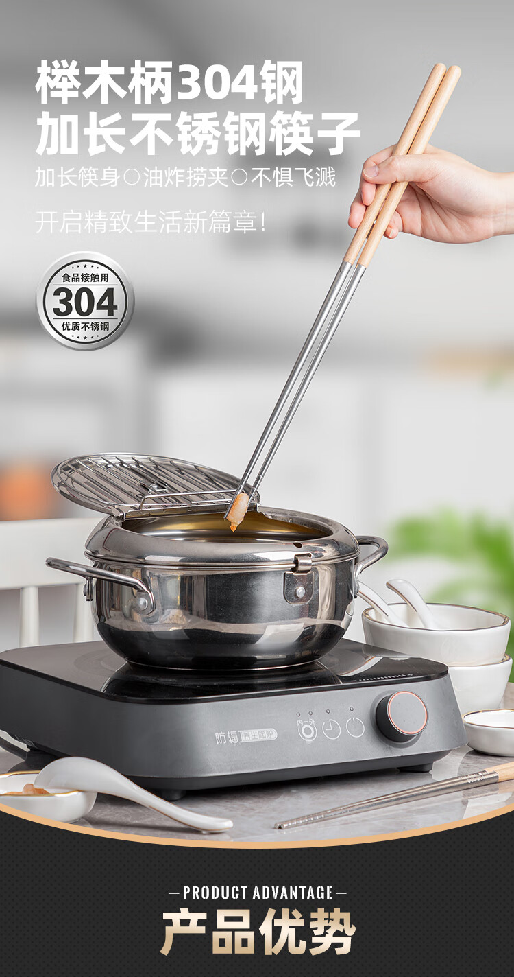 半物生活油炸加长筷子304不锈钢榉木长款火锅筷耐高温防烫捞面炸油条筷子