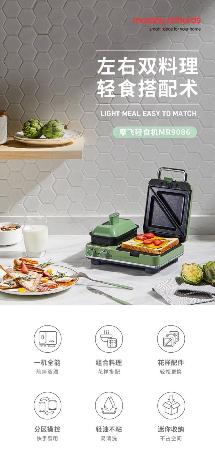 Mofei Sandwich Breakfast and Dinner Machine Home Waffle Light Food Machine Sandwich Oven Multifunctional Toast Bread Press Mini Steamer