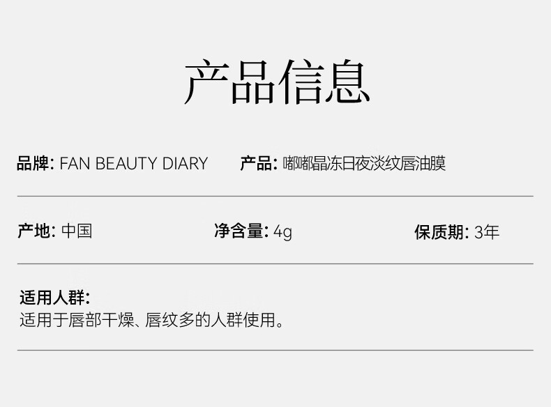 FAN BEAUTY DIARY Fan Bingbing's same style Dudu crystal jelly day and night lightening lip oil mask 4g moisturizing and lightening lip lines