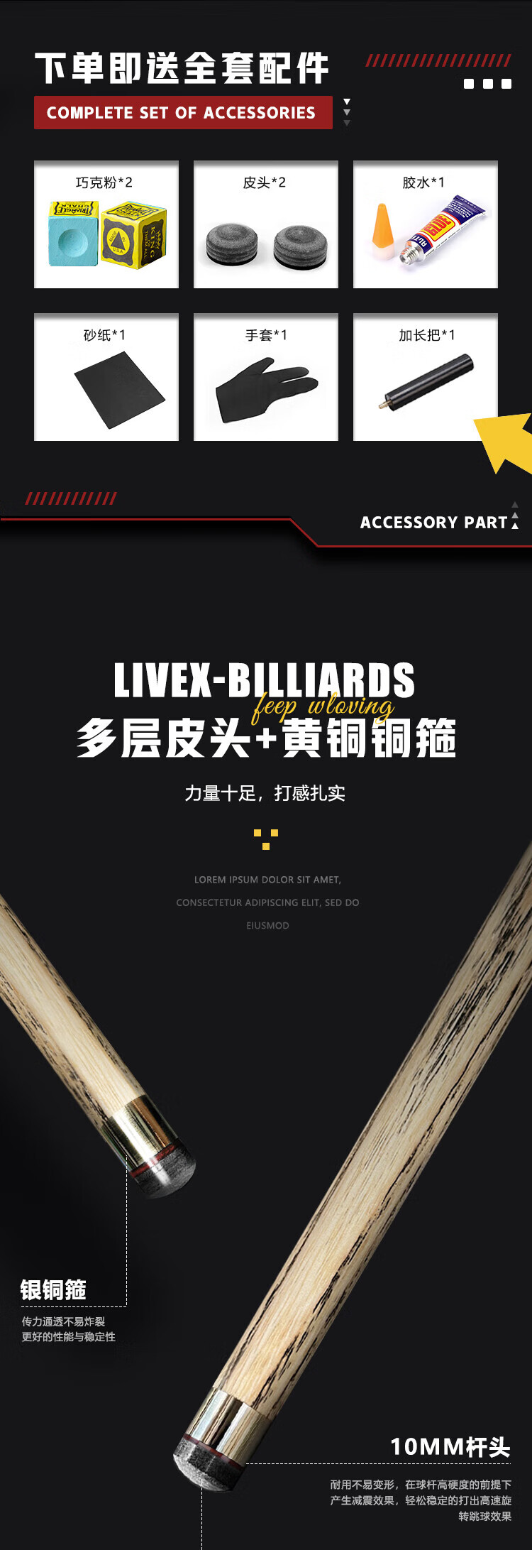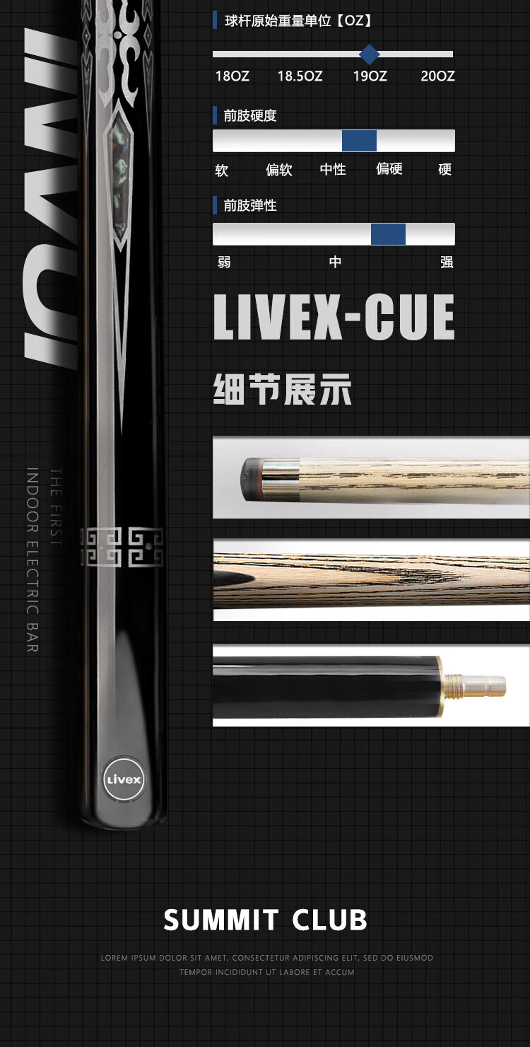 LIVEX God of War Billiard Cue Small Head Snooker Black 8 Cue Eight Ball Split Table Cue American 16 Color Nine Cue