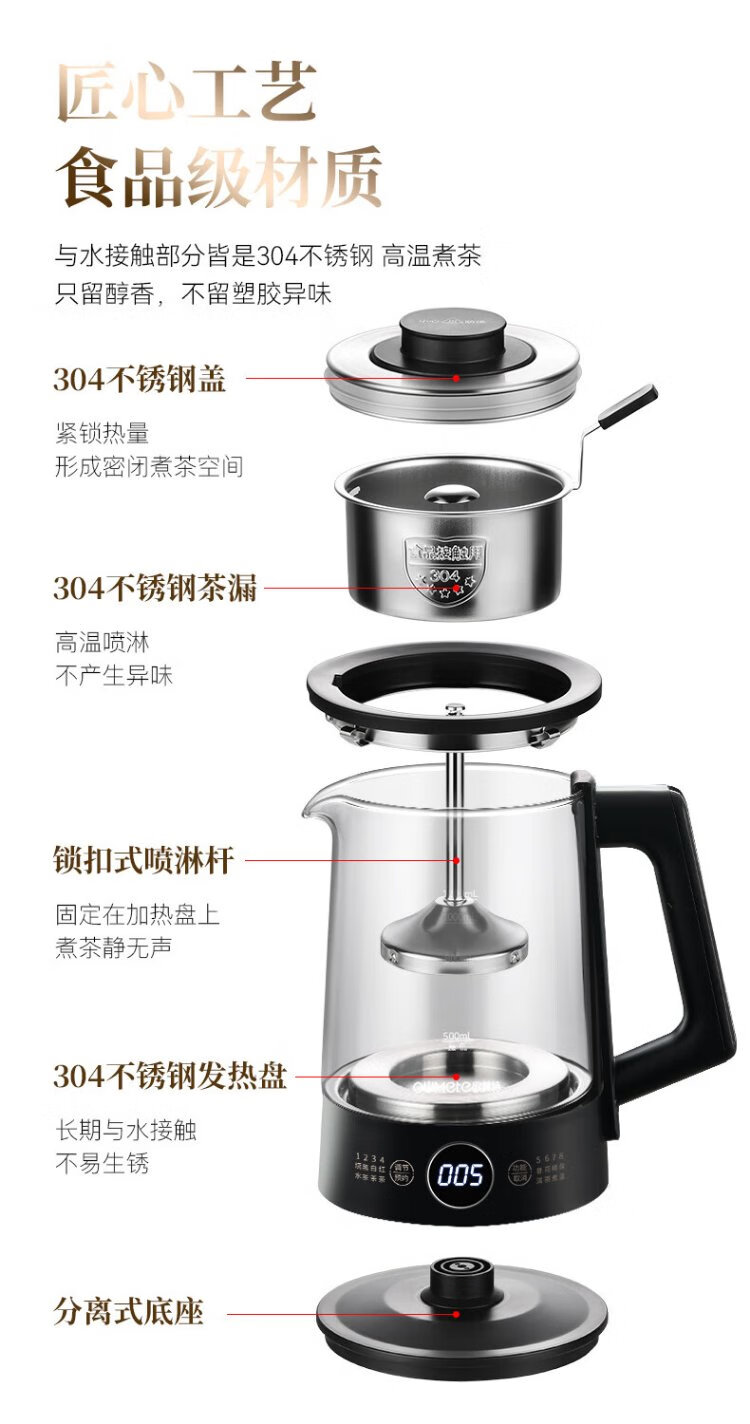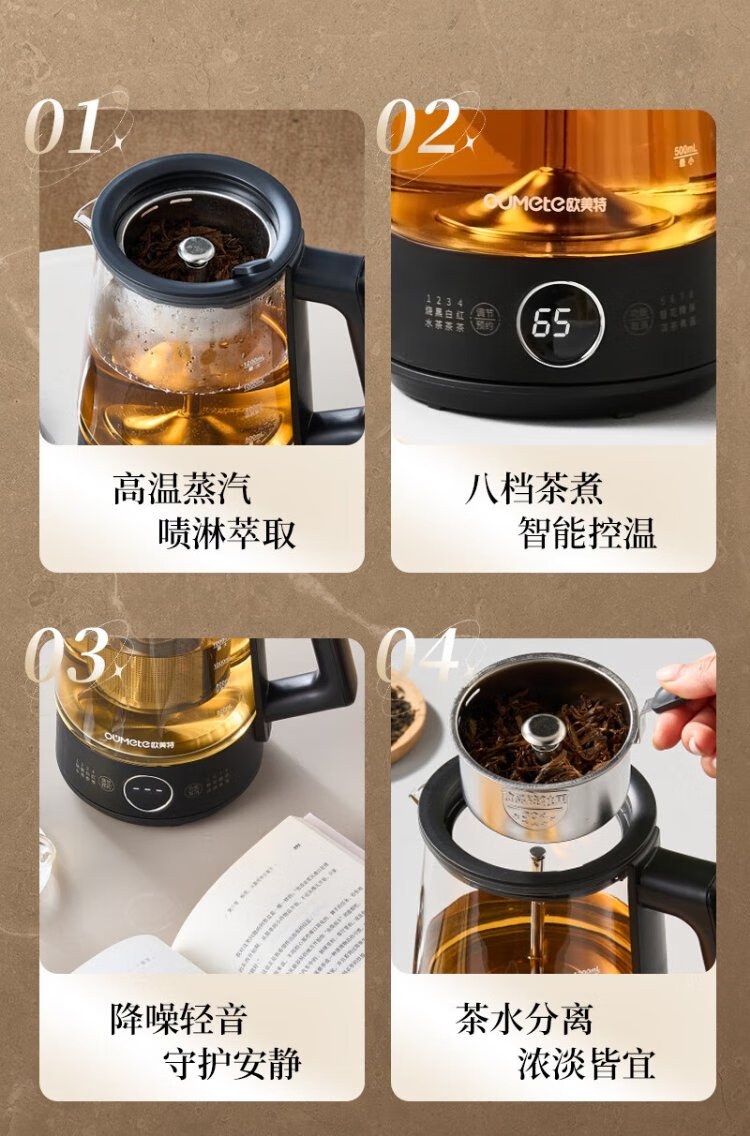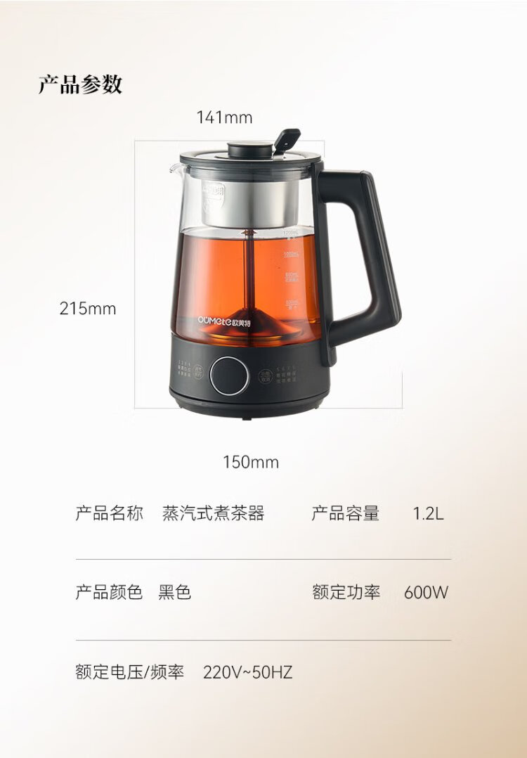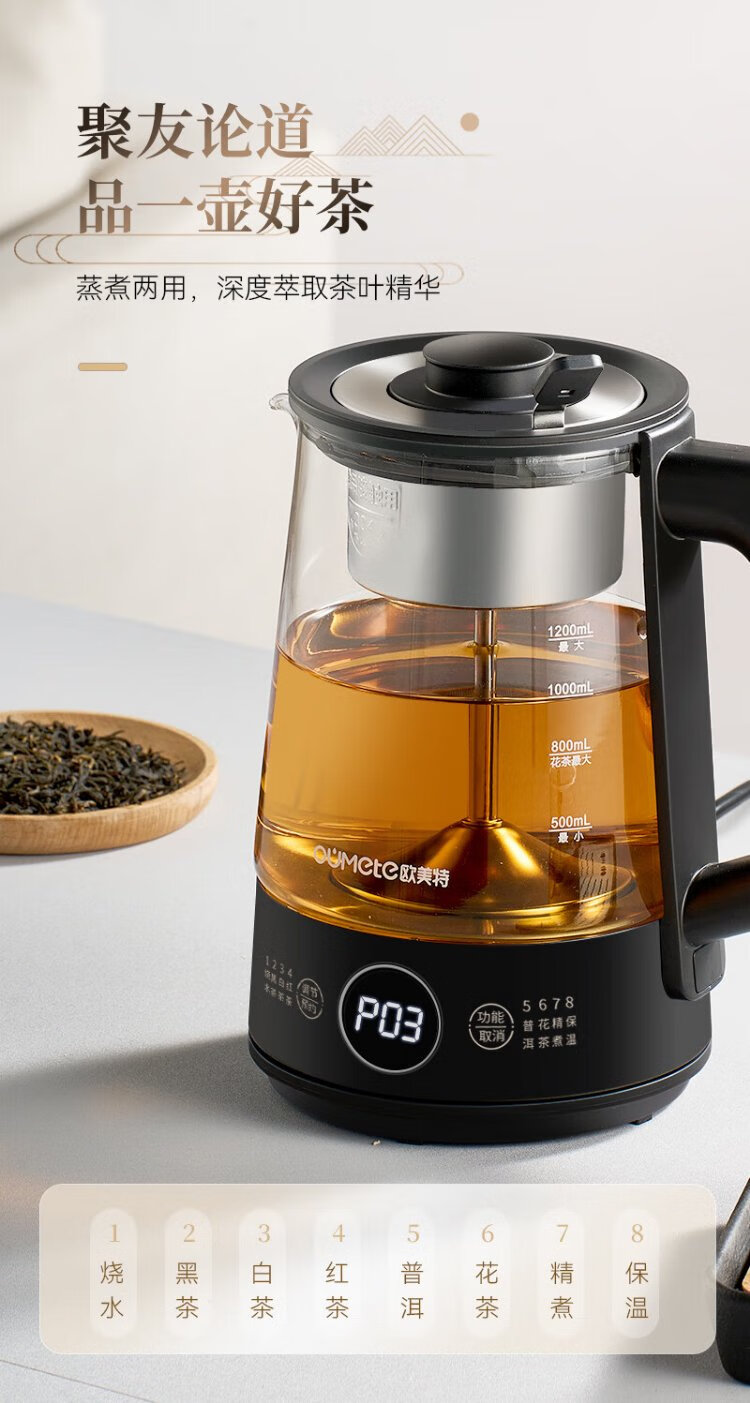OUMETE tea kettle, spray steam tea kettle, health pot, glass thermal insulation tea kettle OMT-PC1051 (single network)