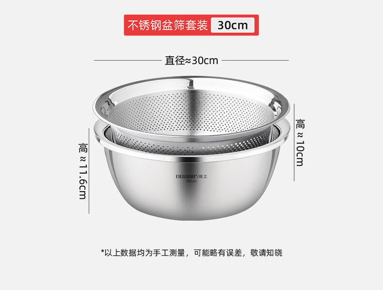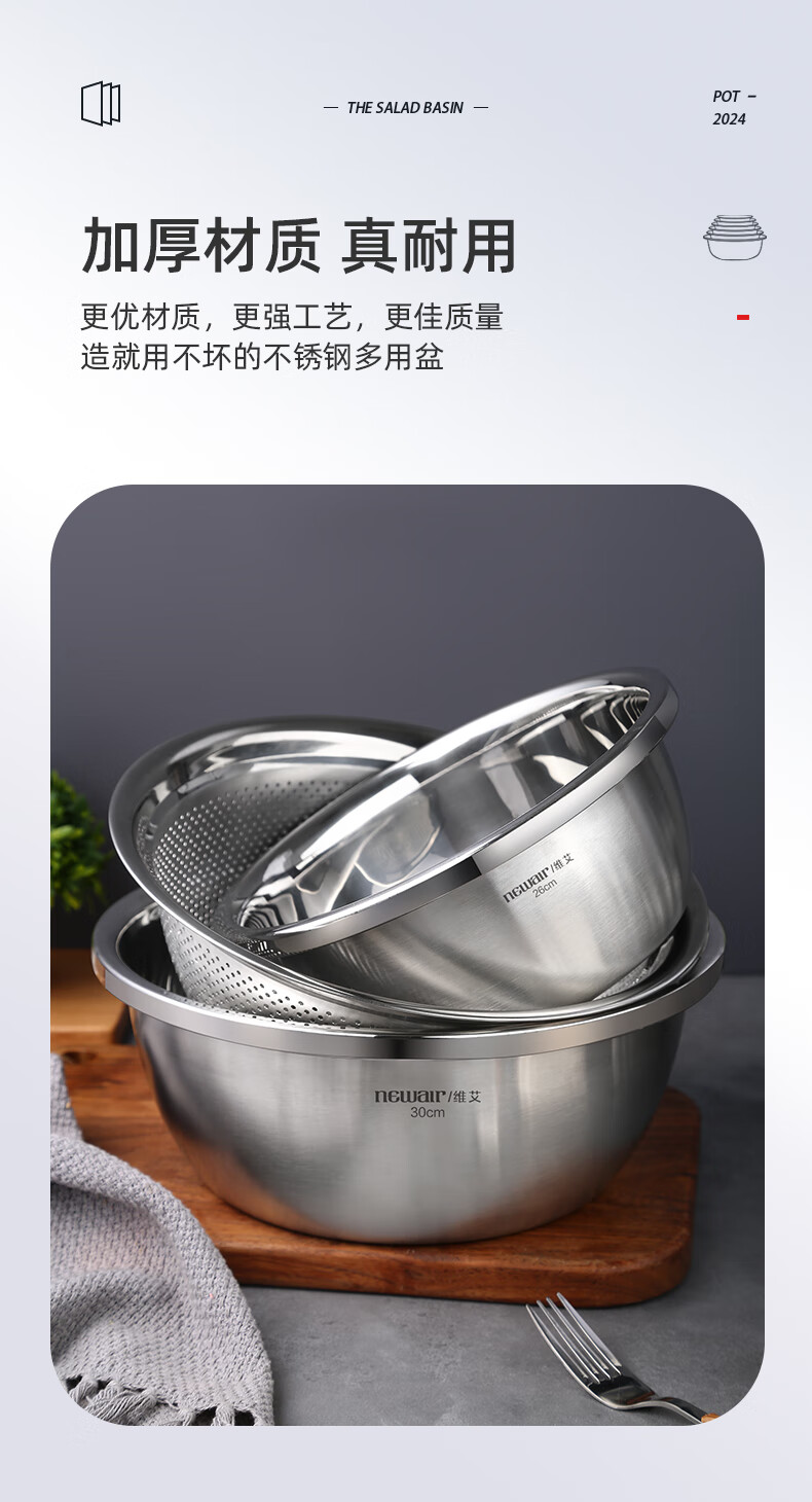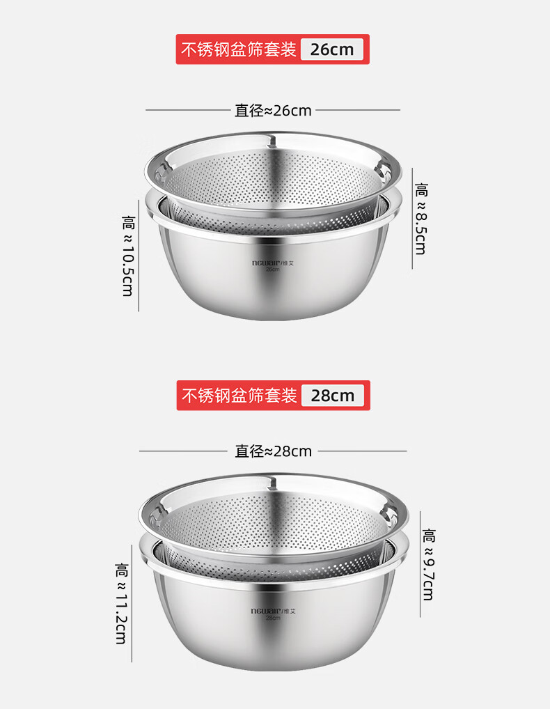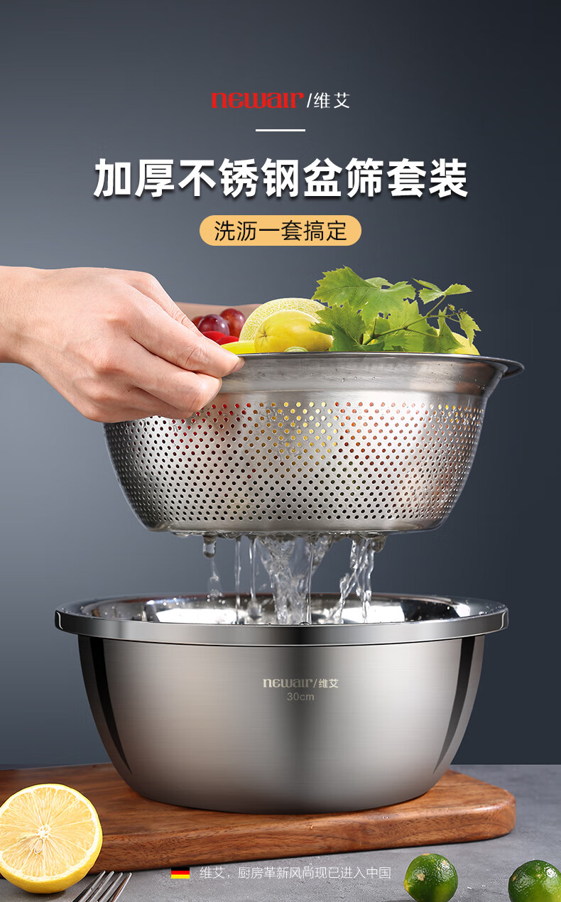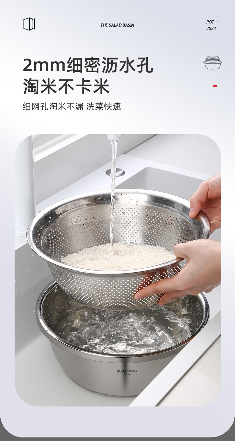 Newair stainless steel vegetable sink drain basket rice washing sieve rice basin kitchen fruit basket household drain basin set