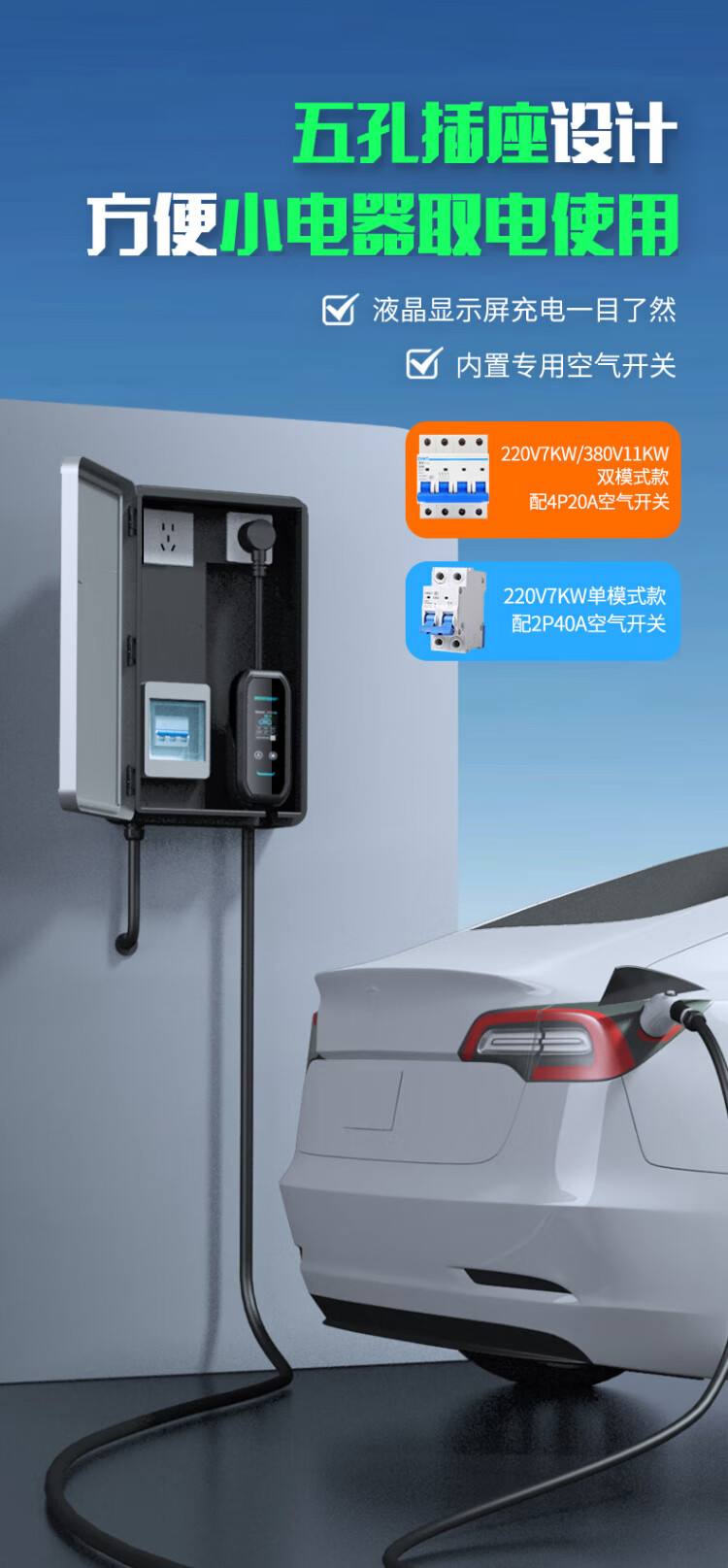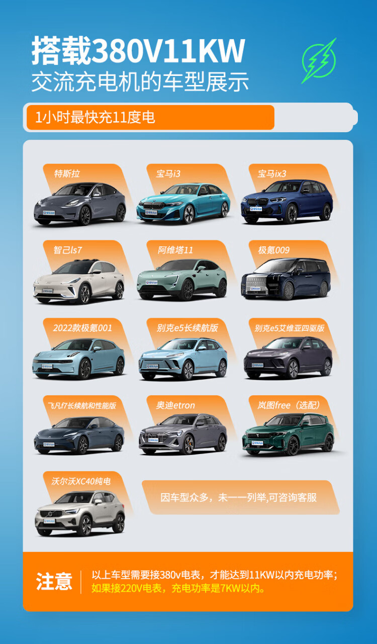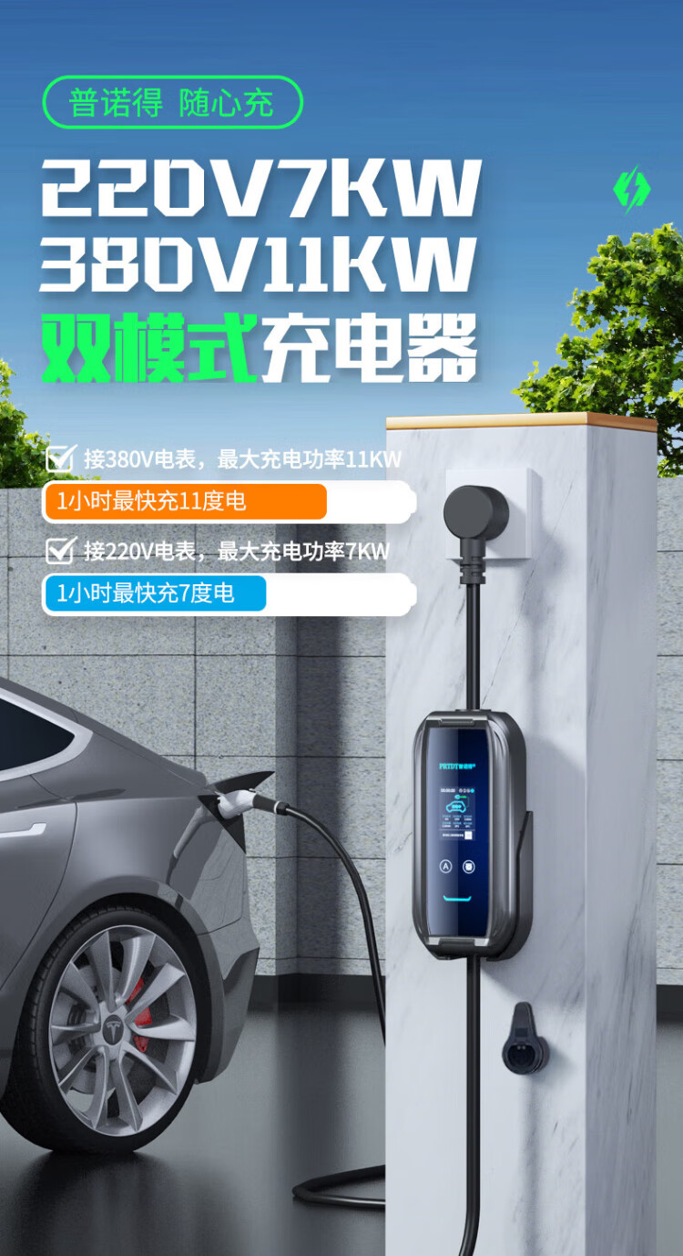 Punode Cyber ​​Charge 7KW/11KW new energy vehicle home charging pile fixed and portable dual-purpose charging gun suitable for Tesla Krypton 009 Avita Porsche