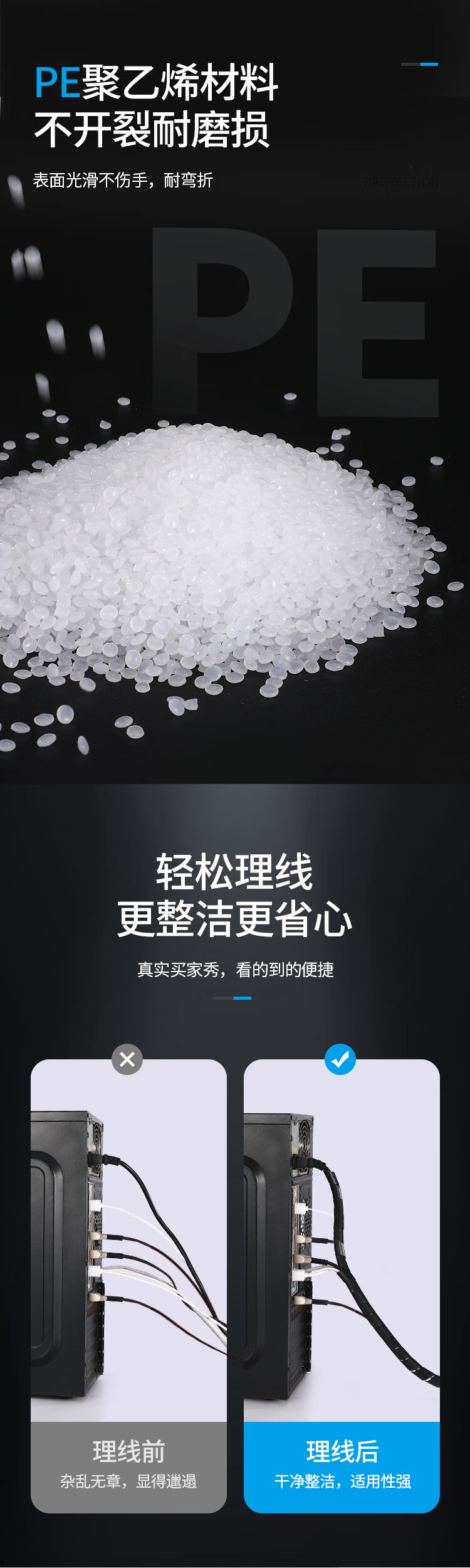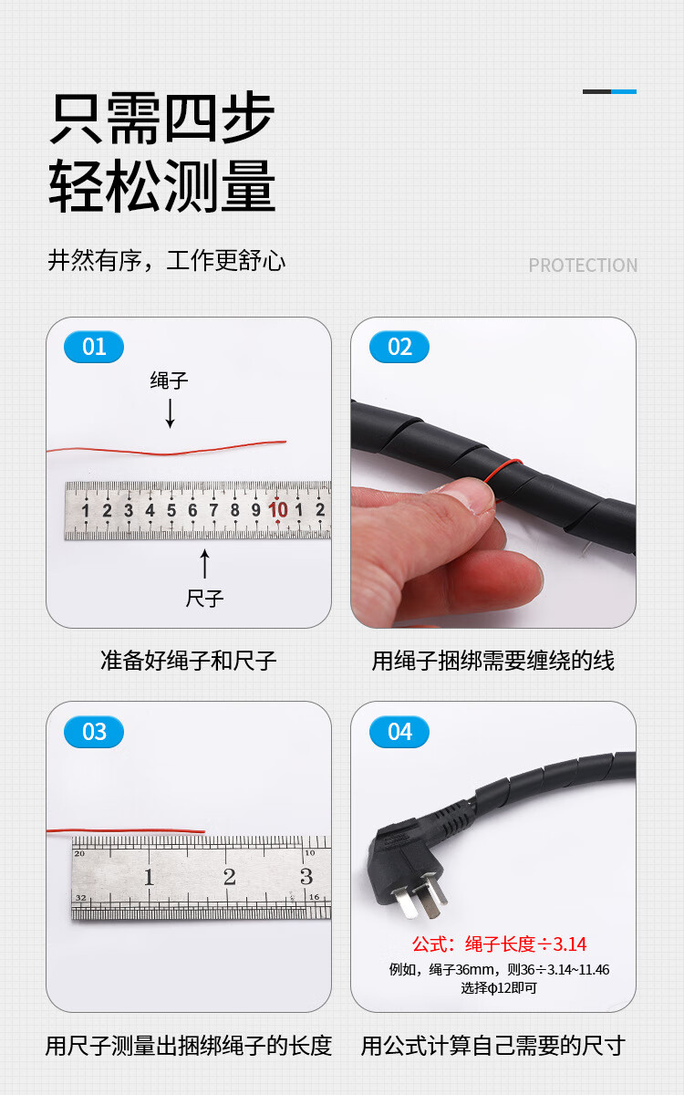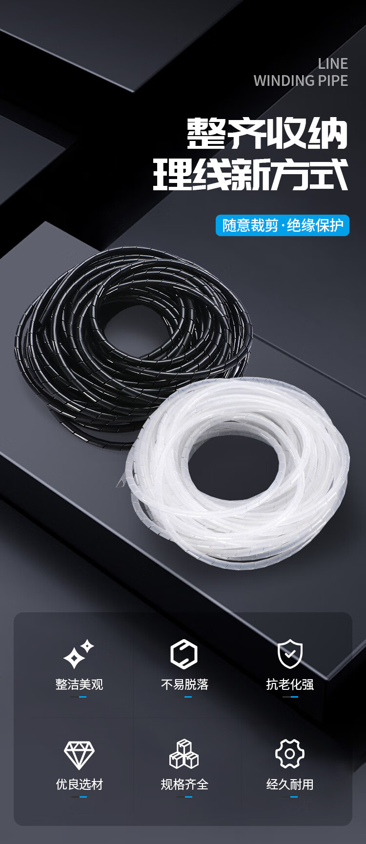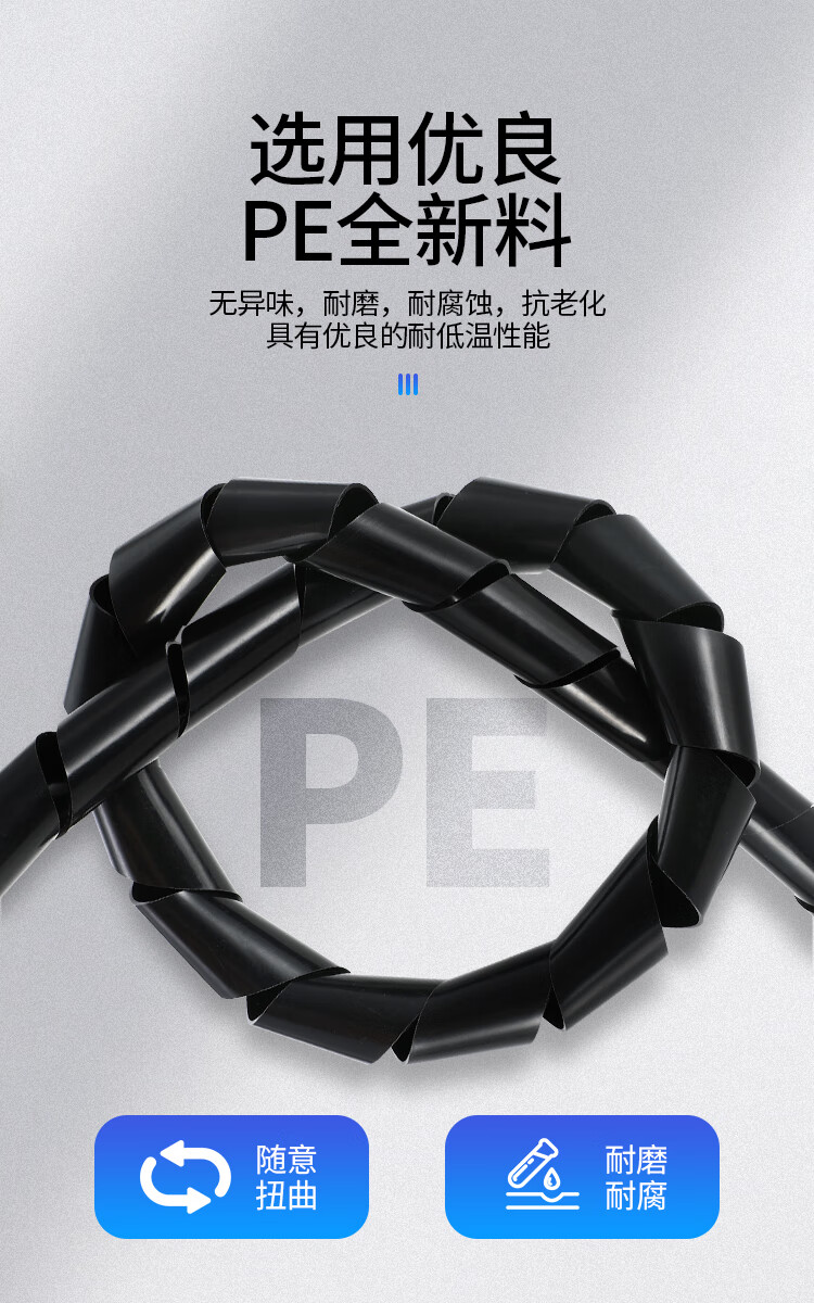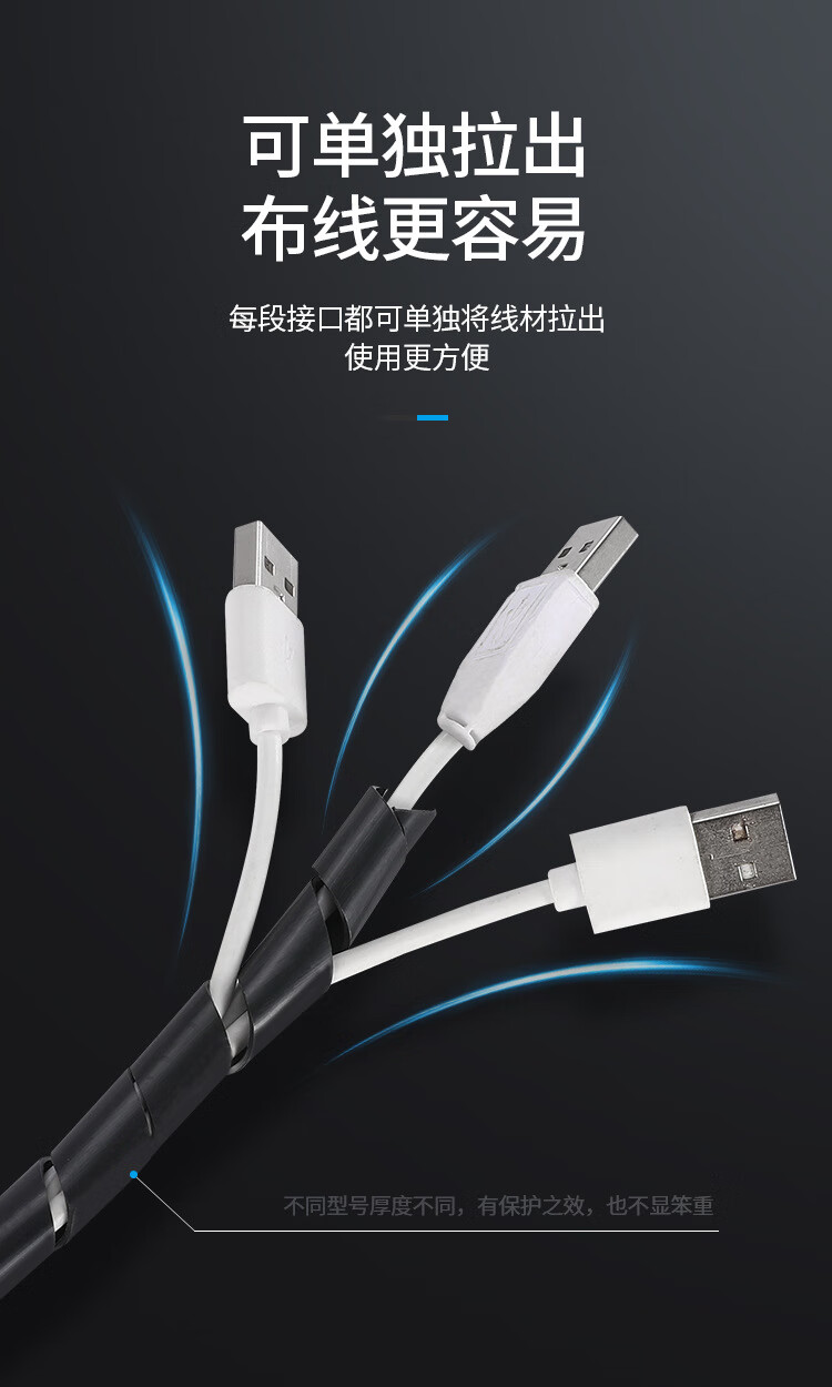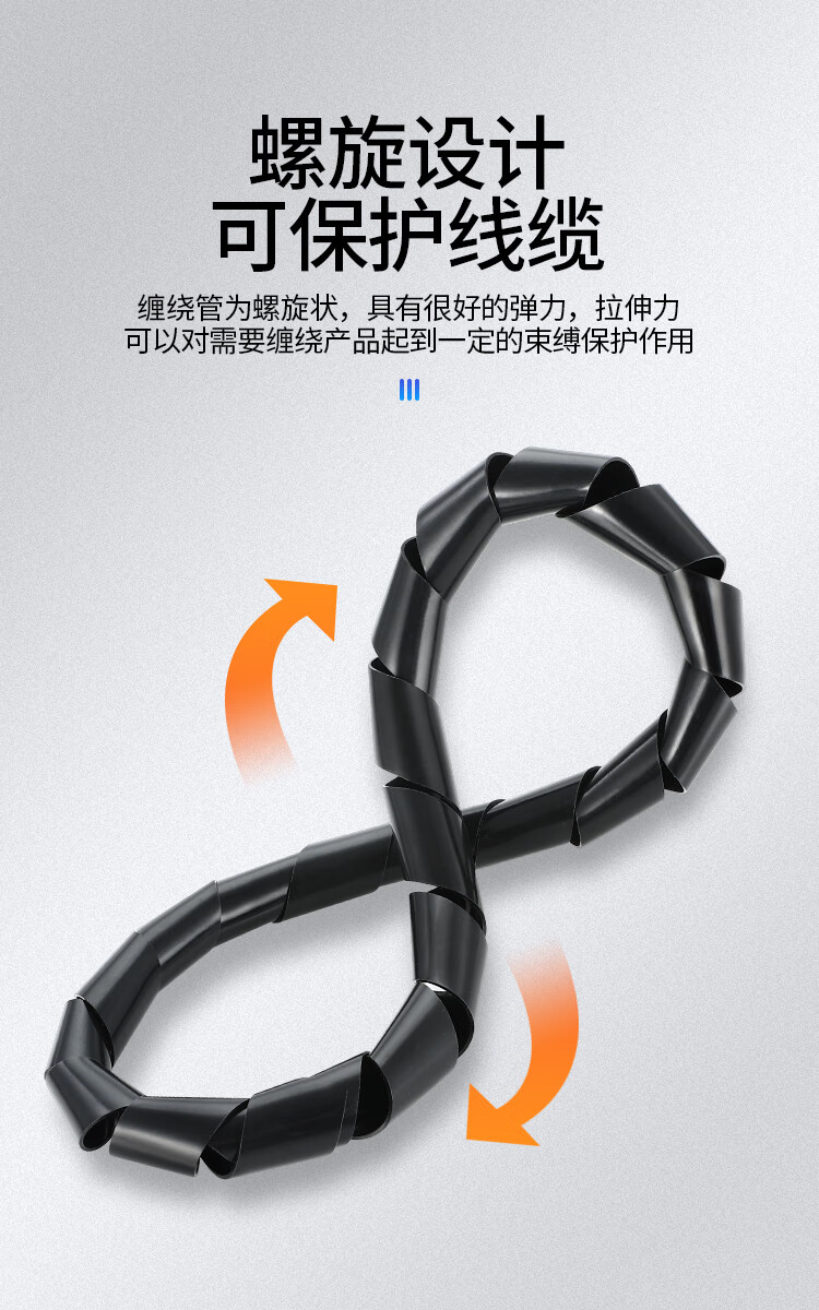 铸固 缠绕管 绕线管束线管理线管网线电线包线管 黑色缠线管8mm*10m