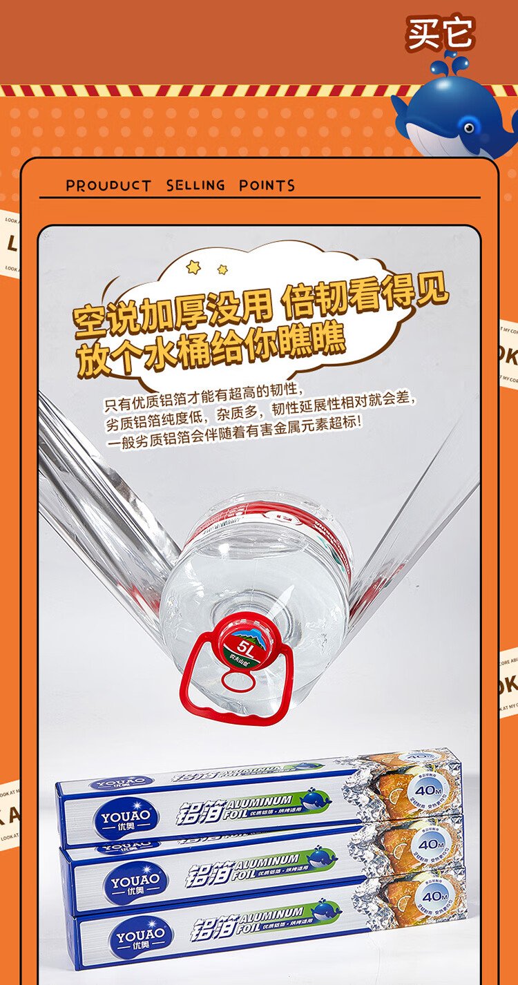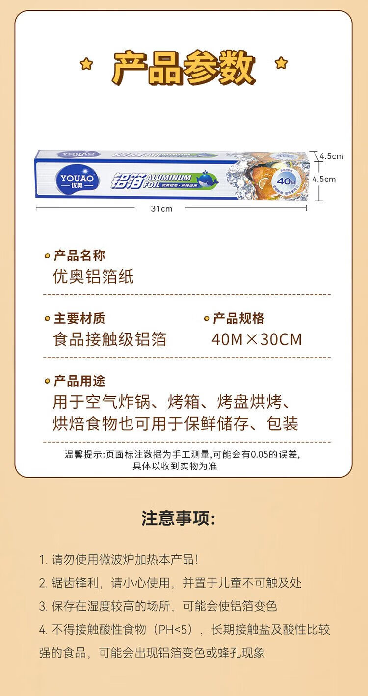 Youao tin foil air fryer special paper 40 meters long * 30cm wide baking pan oven barbecue special aluminum foil paper