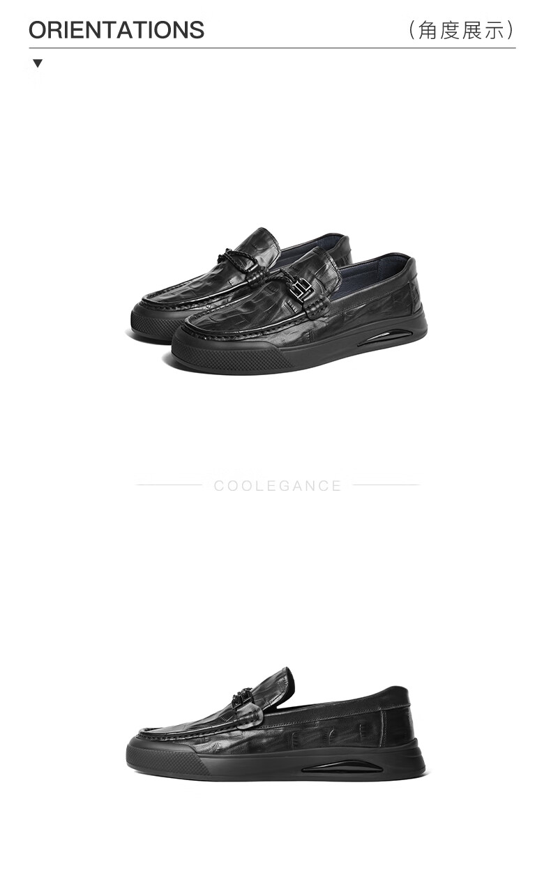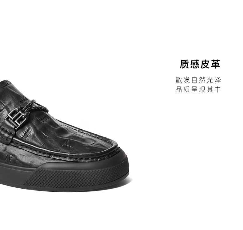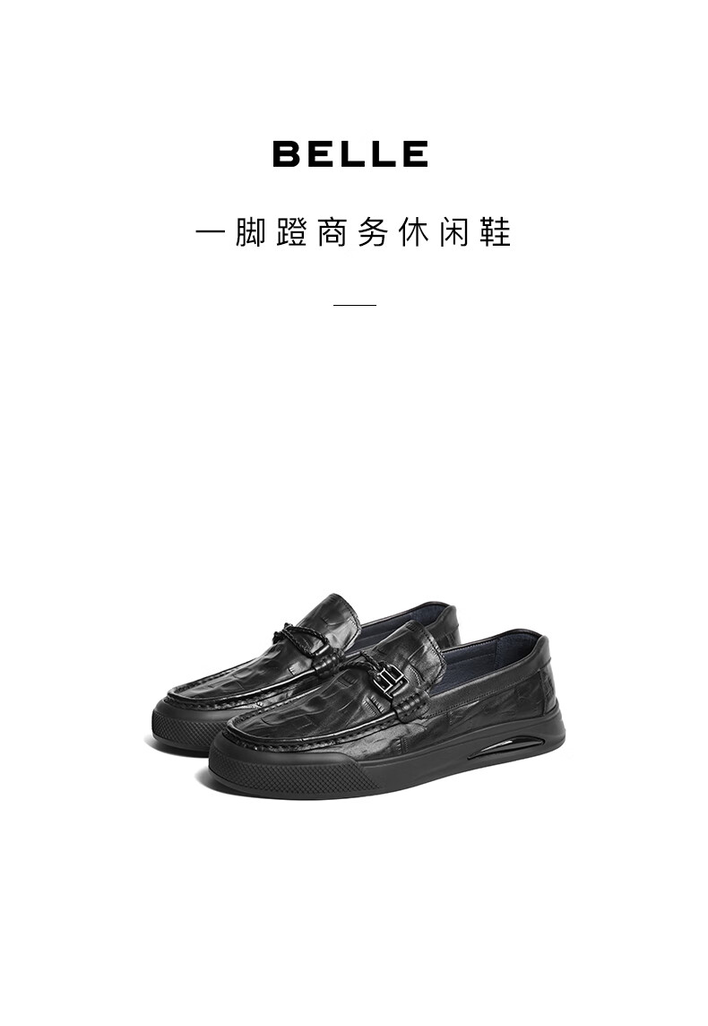 Belle Casual Shoes Men's Cow Leather Plaid Slip-On Shoes A1368AM4 Black 41