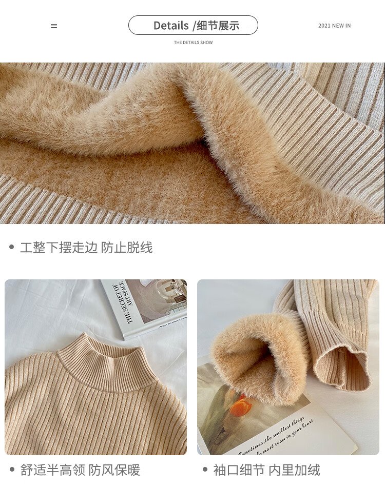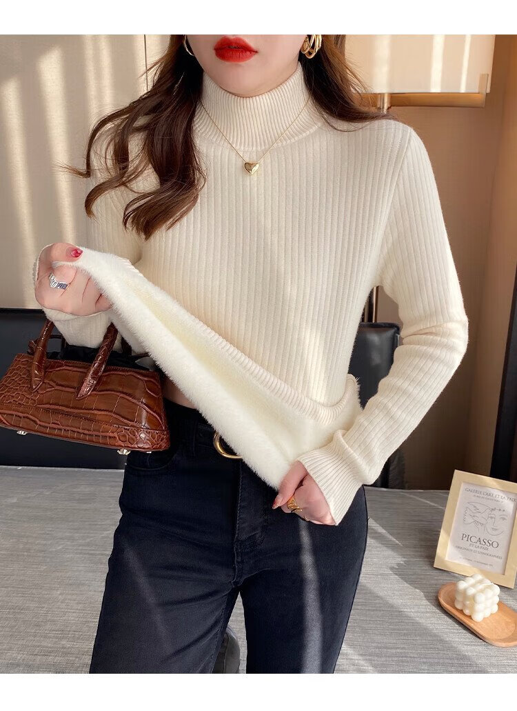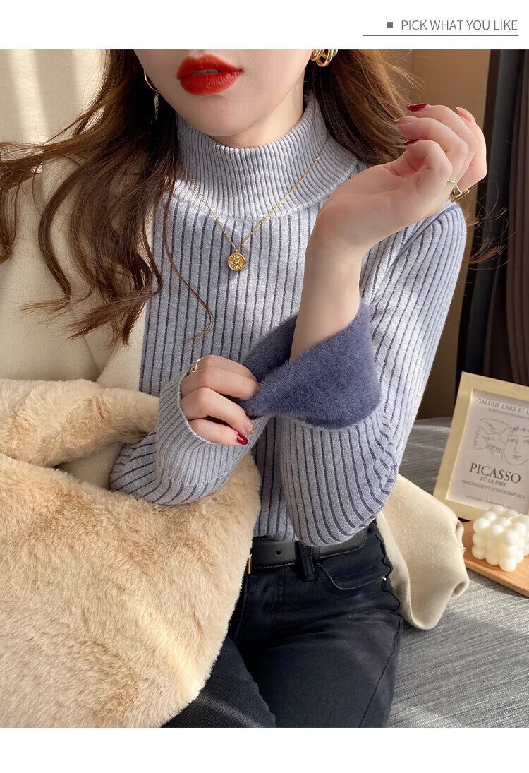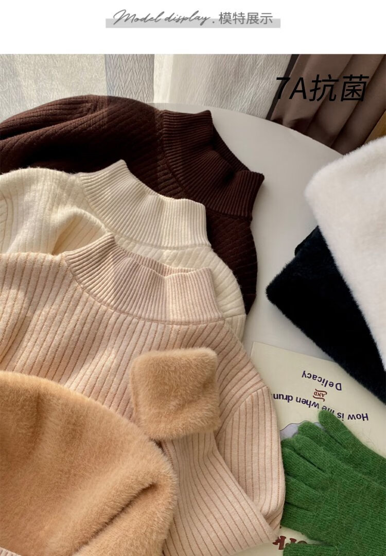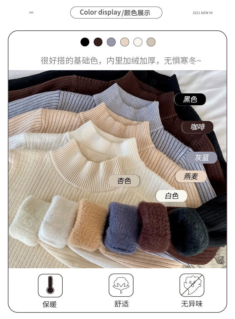 Yu Zhaolin half turtleneck plus velvet knitted bottoming shirt for women, one-piece velvet inner layer, autumn and winter velvet thickened sweater top