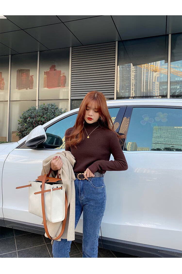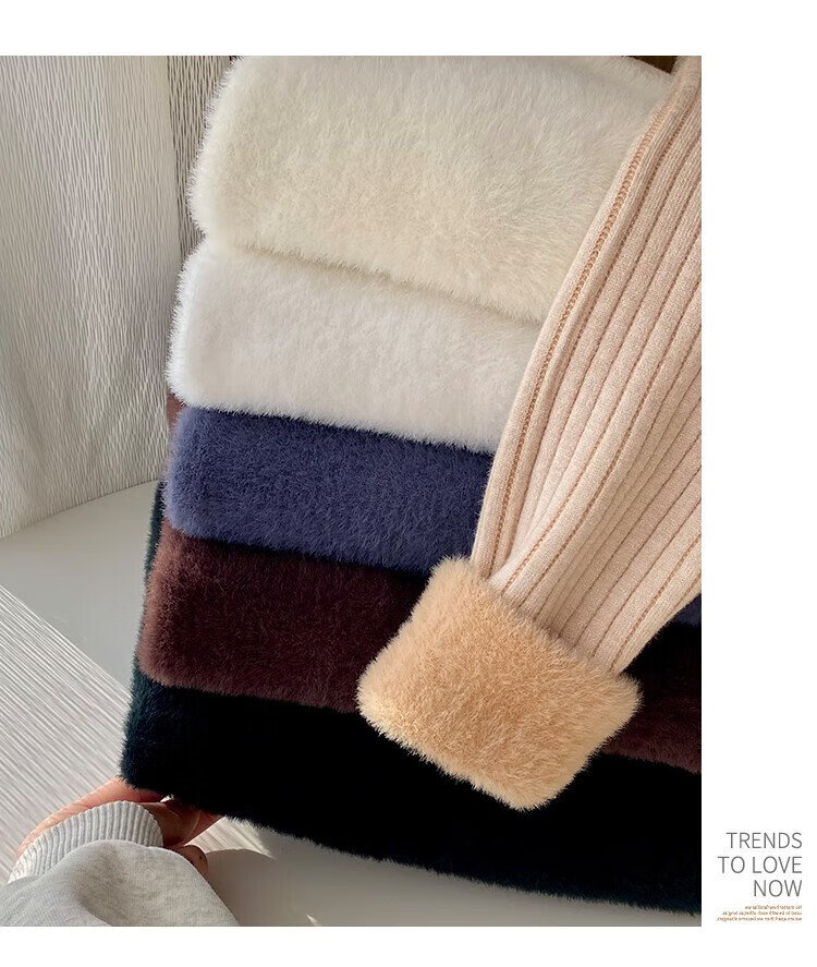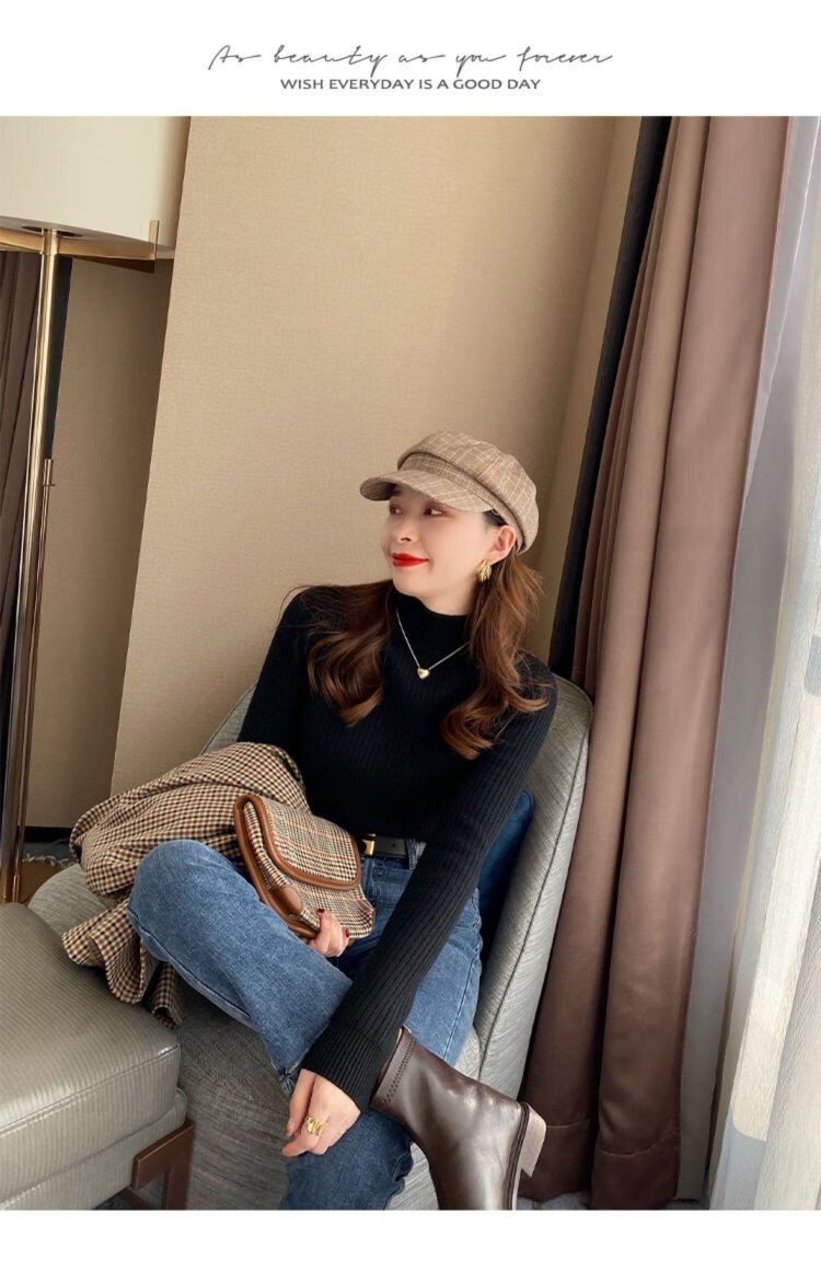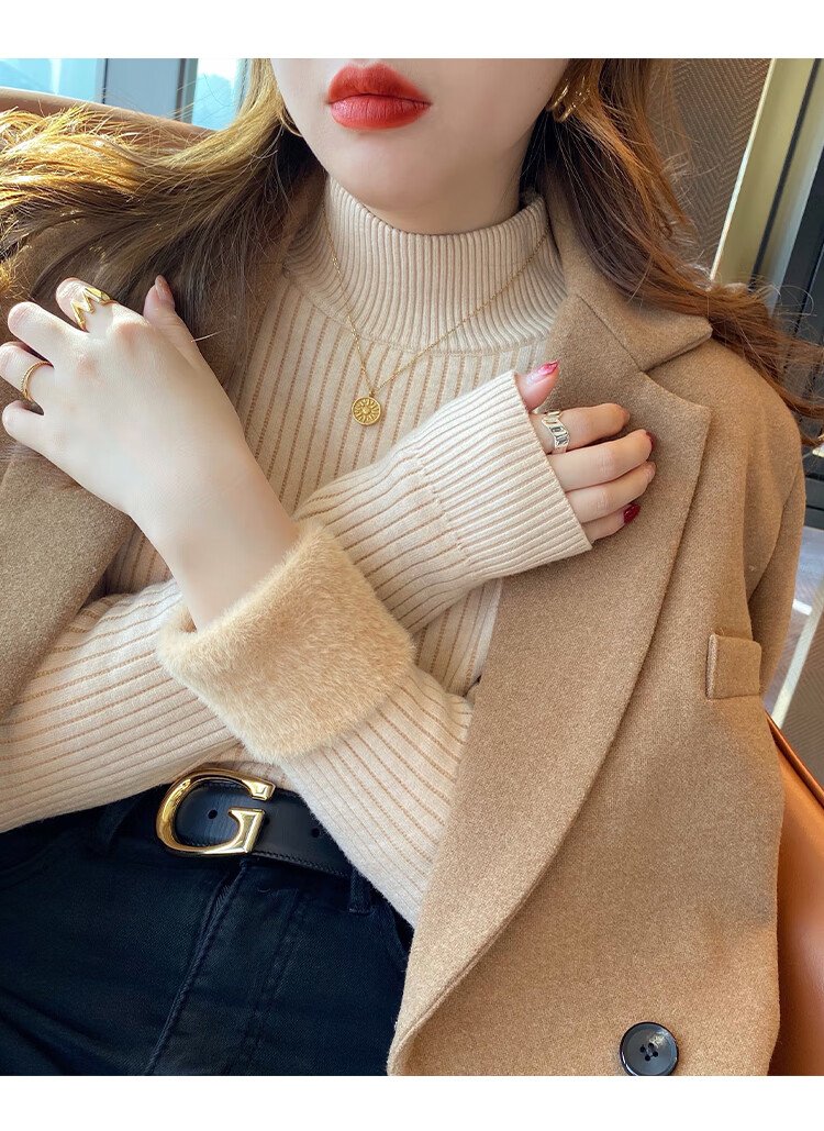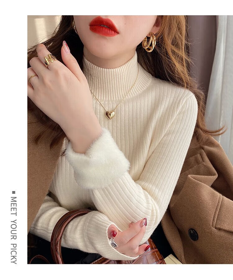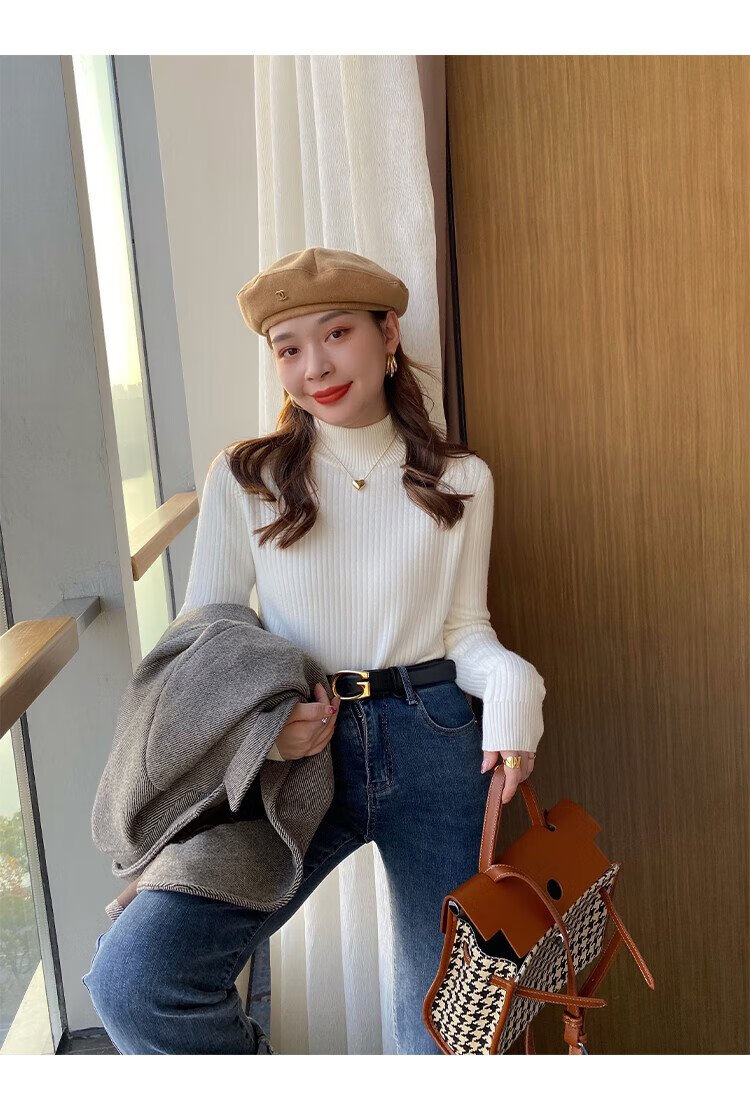 Yu Zhaolin half turtleneck plus velvet knitted bottoming shirt for women, one-piece velvet inner layer, autumn and winter velvet thickened sweater top