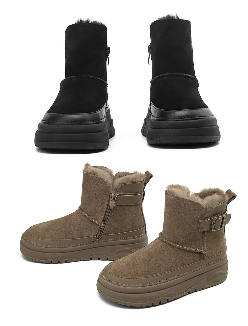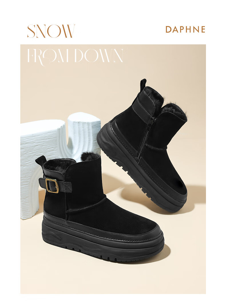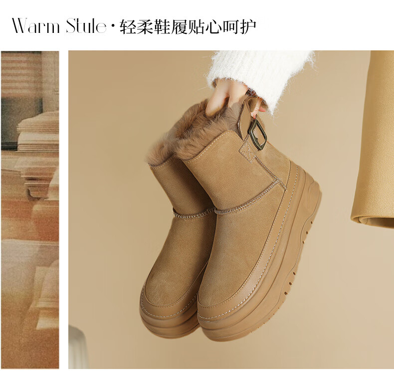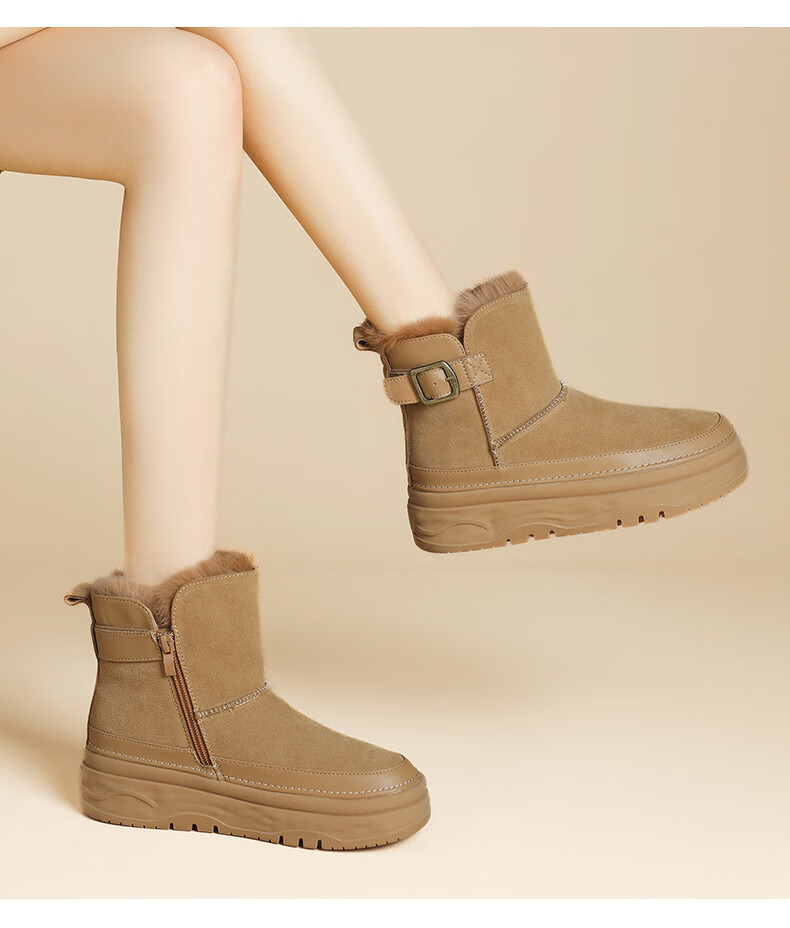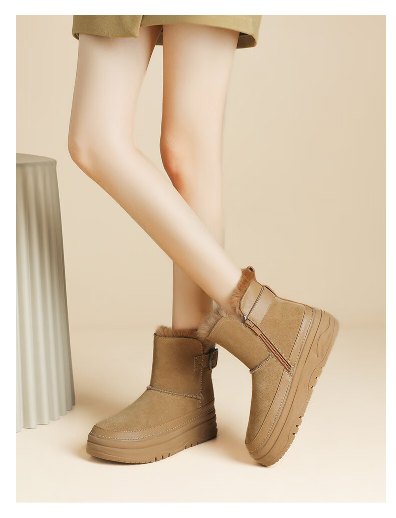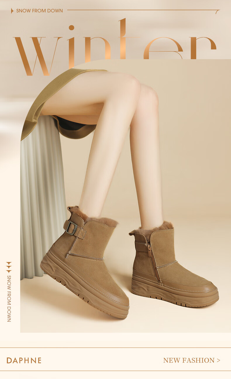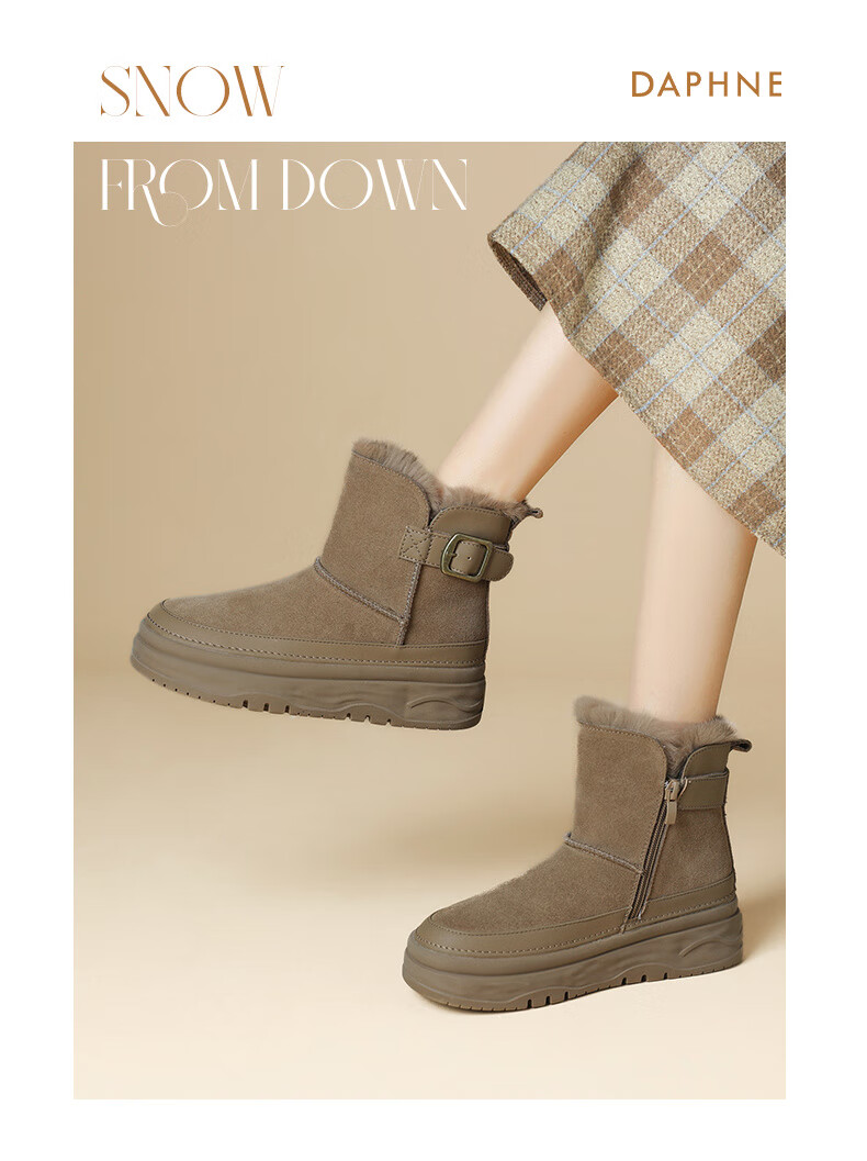 Daphne snow boots winter thickened velvet Northeastern cotton shoes thick-soled short boots women's shoes 4023608067 Khaki 38