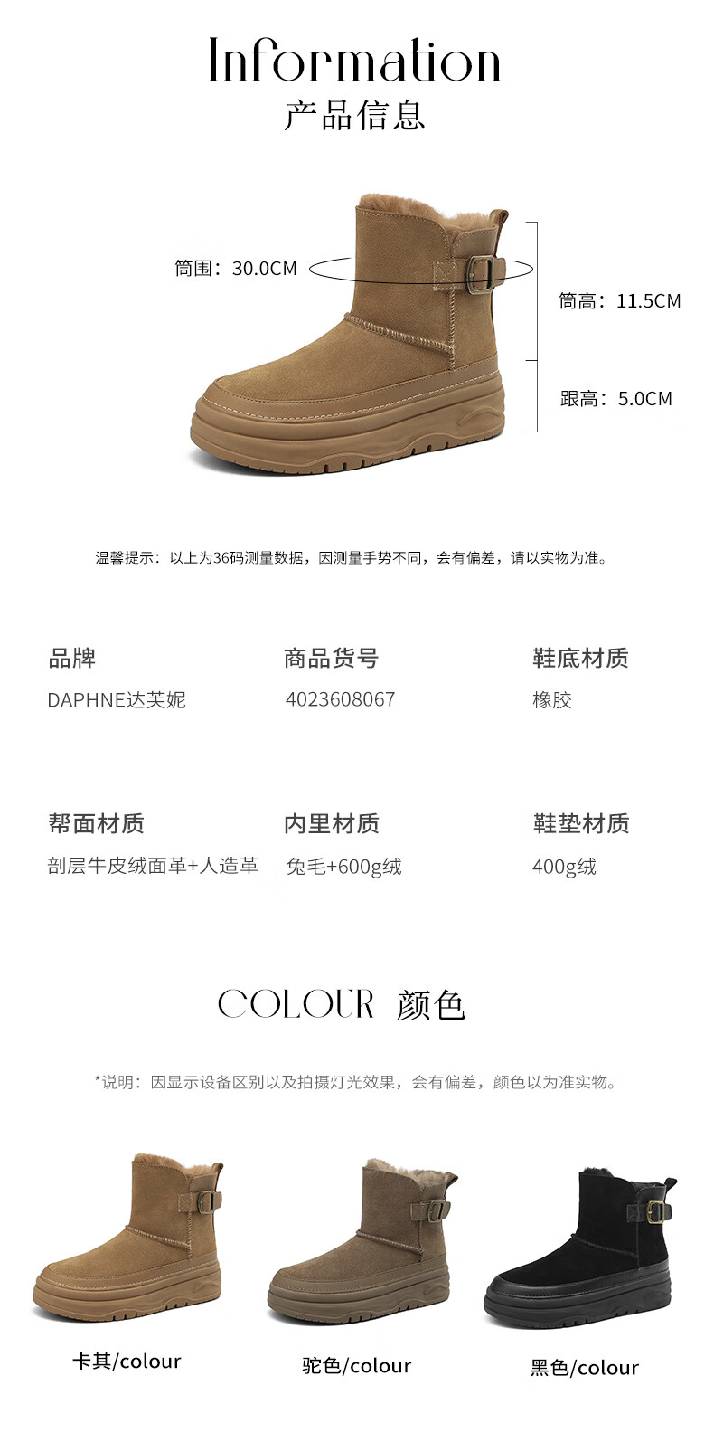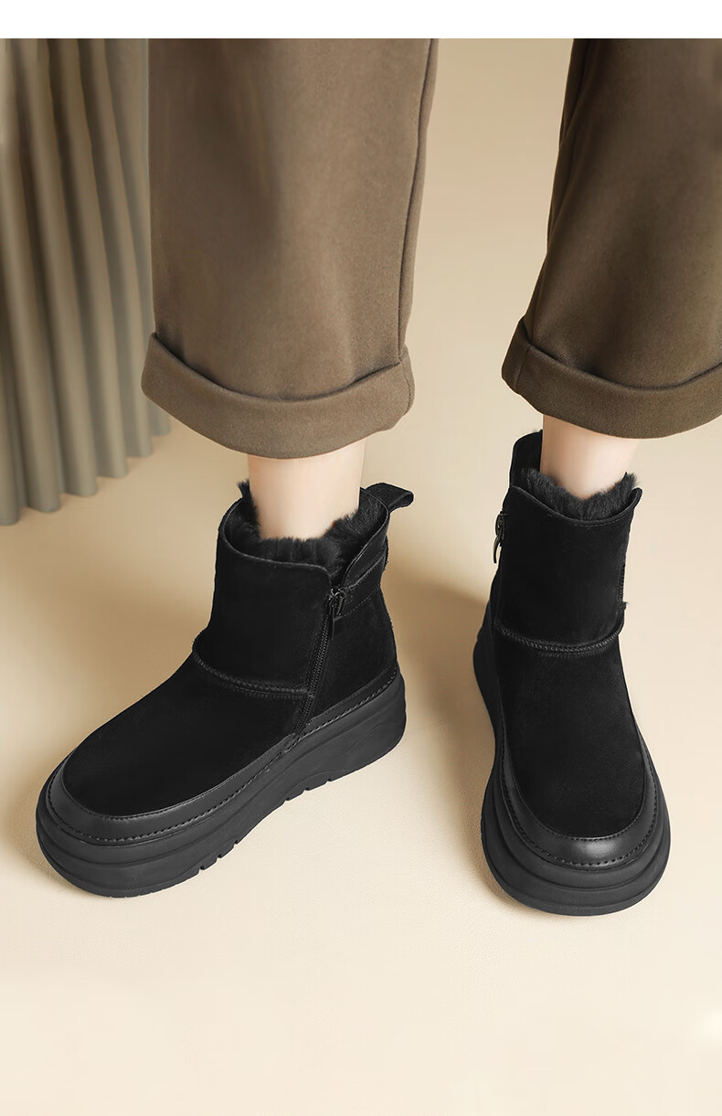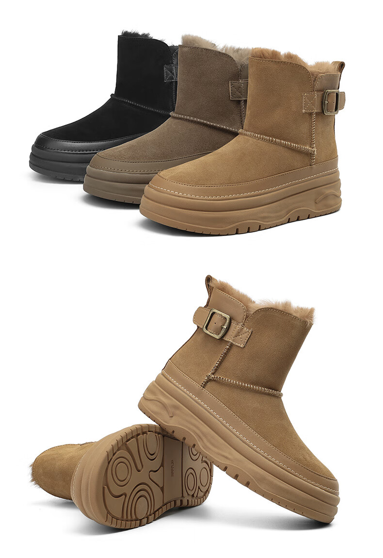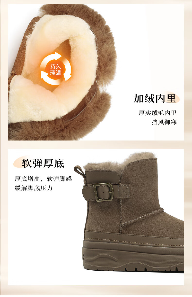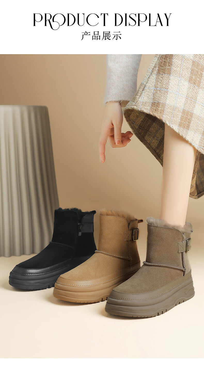 Daphne snow boots winter thickened velvet Northeastern cotton shoes thick-soled short boots women's shoes 4023608067 Khaki 38