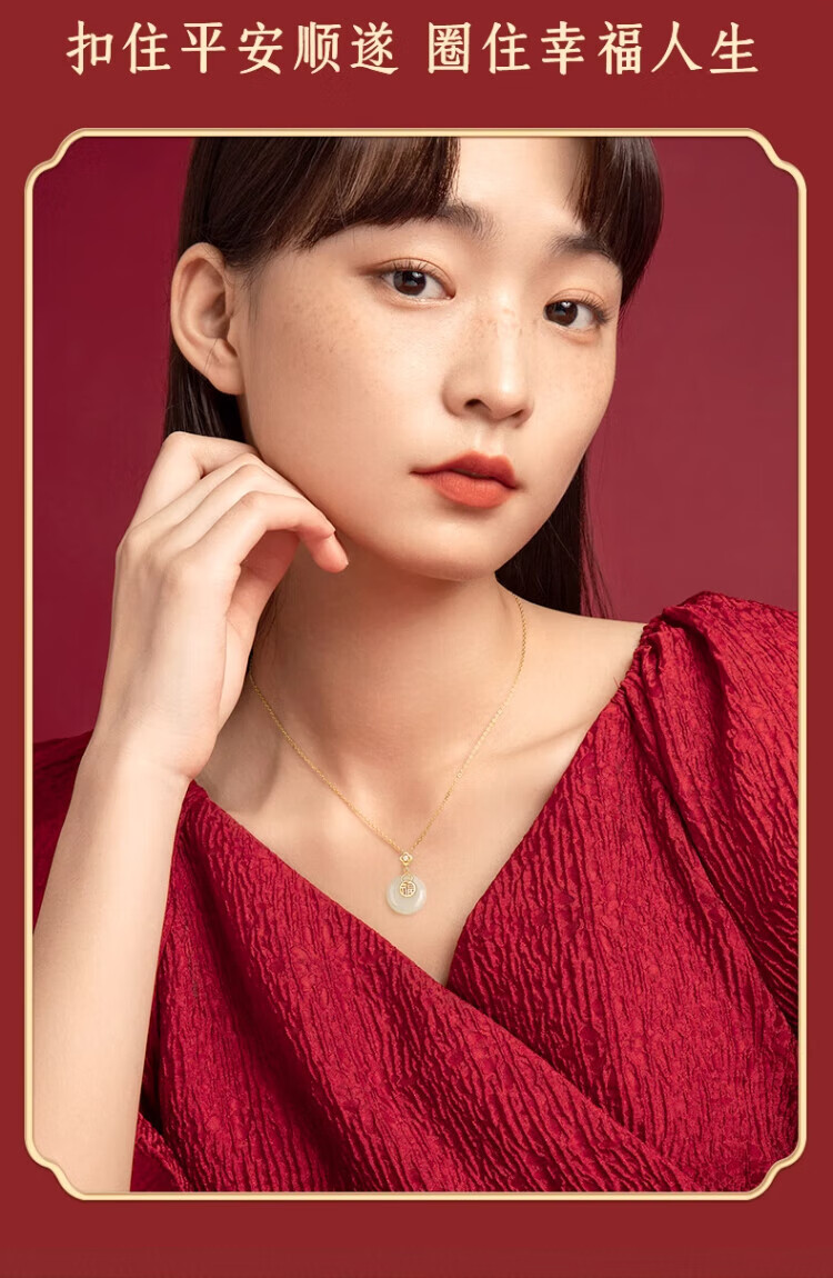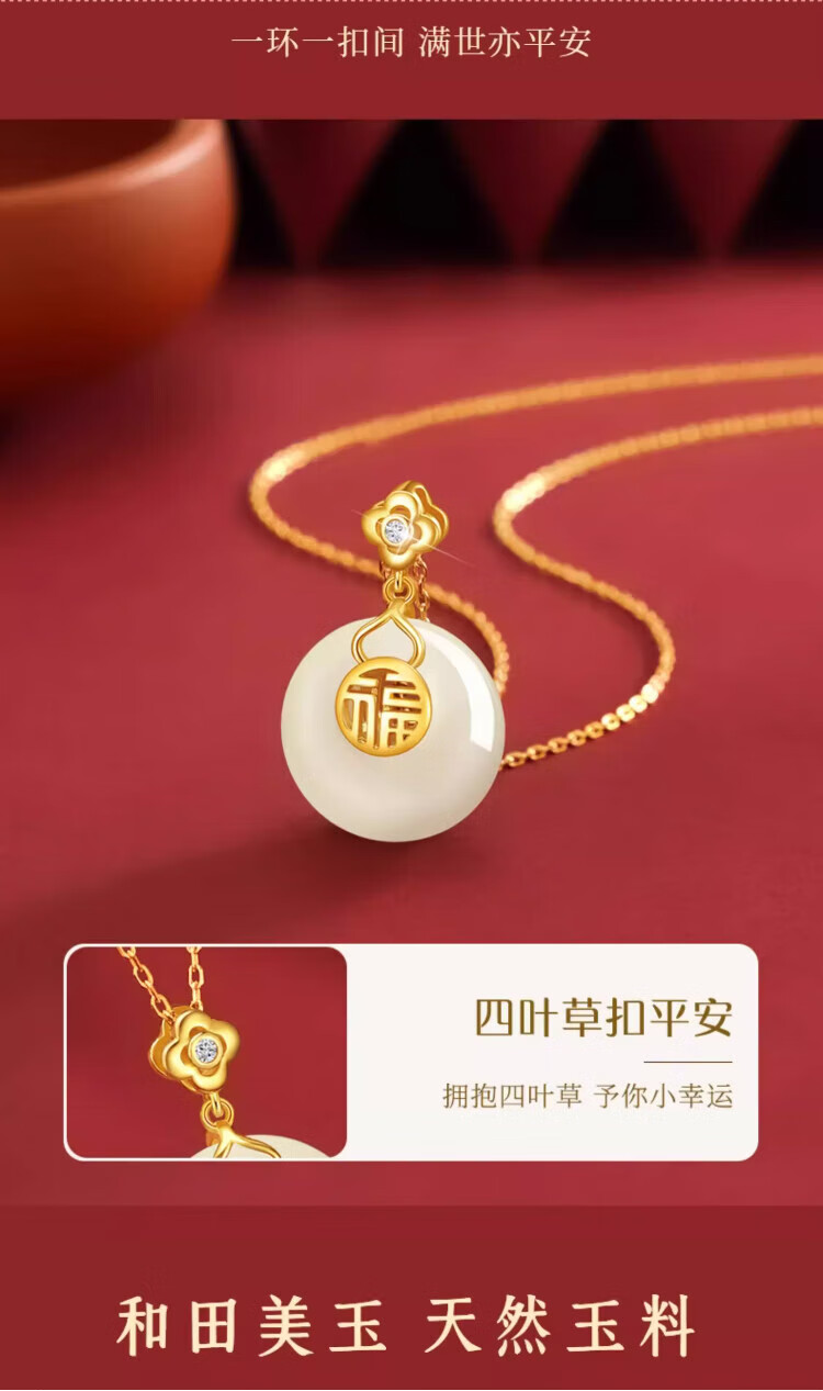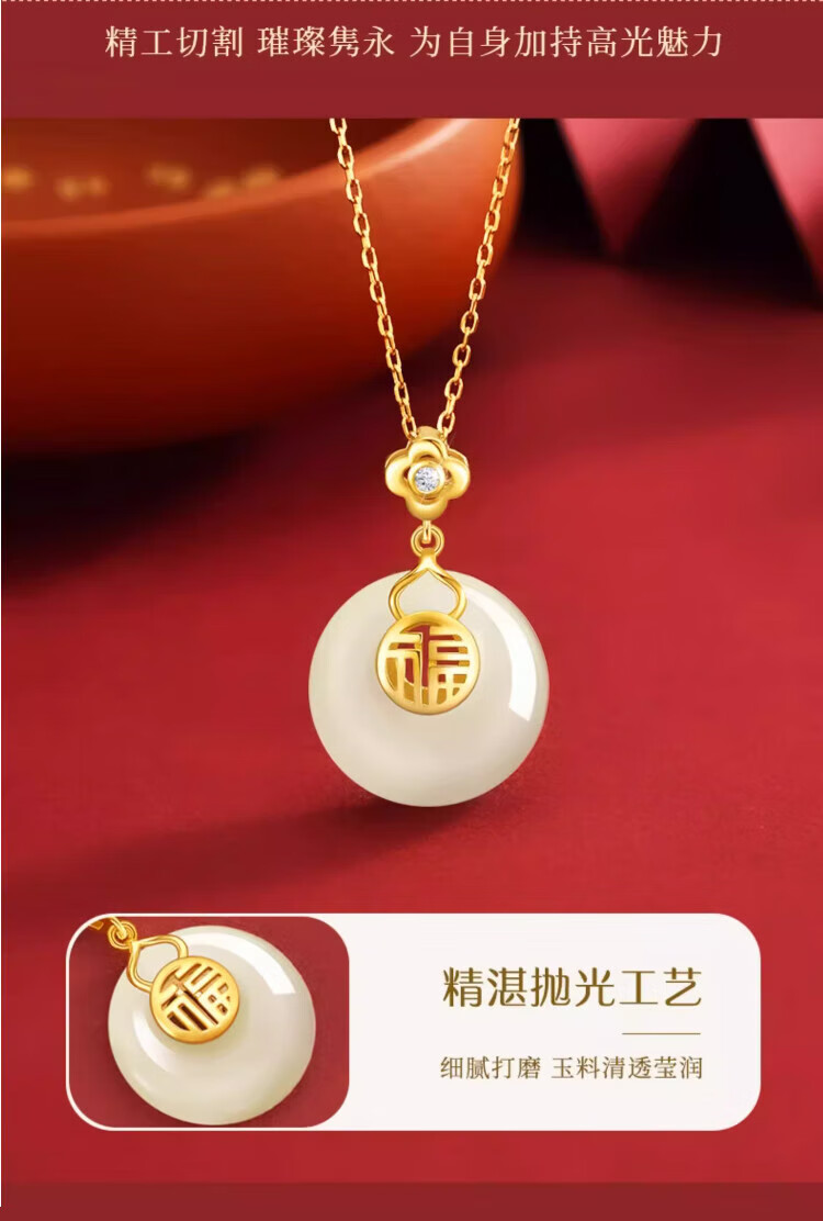 Central Chuang Fashion Chinese Gold and Silver Necklace Women's Safety Buckle Hetian Jade Pendant Birthday Gift for Mother and Elders S925