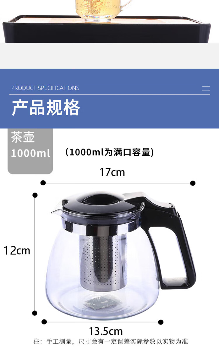 Mengting teapot thickened glass stainless steel filter teapot large capacity kettle tea set 1000ml
