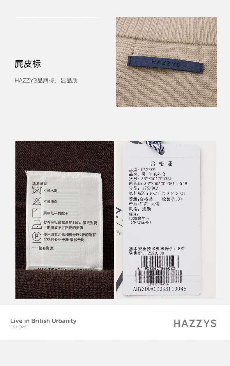 HAZZYS Men's Winter Men's Sweater Sheep Wool Cardigan Men's ABYZD0ACD03