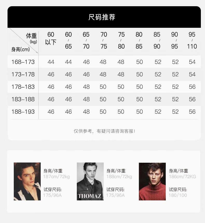 China (cm) 160-165/84-86 165-170 / 88-90 167-172 / 92-96 168-173 / 98-102 170-176 / 106-110