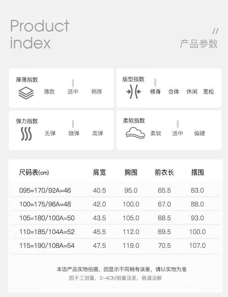 China (cm) 165 / 88-90 170 / 96-98 175 / 108-110 180 / 118-122 185 / 126-130