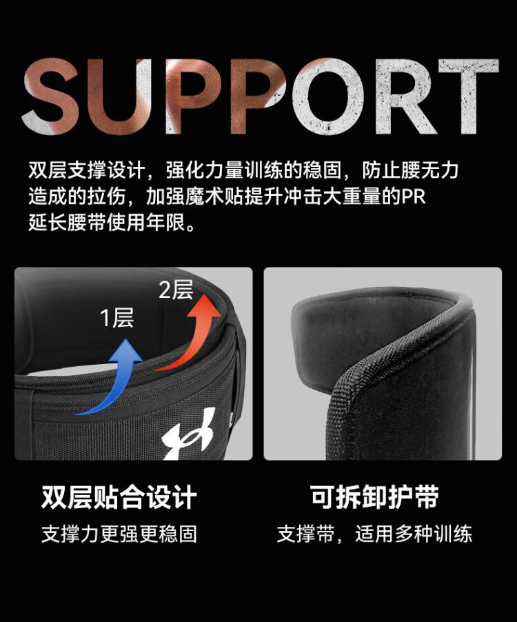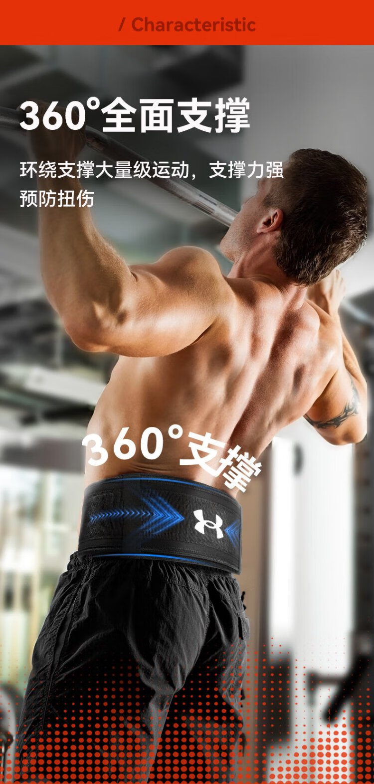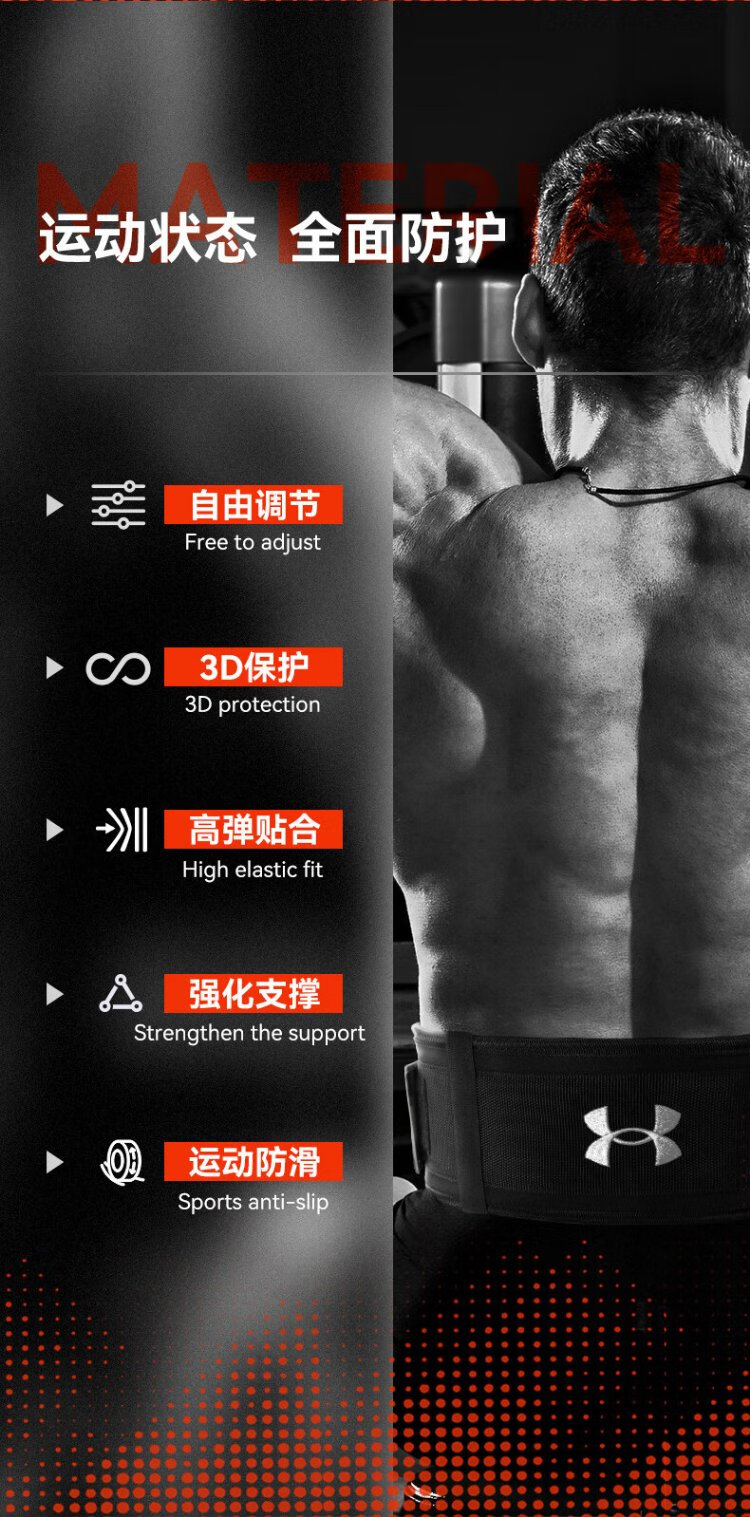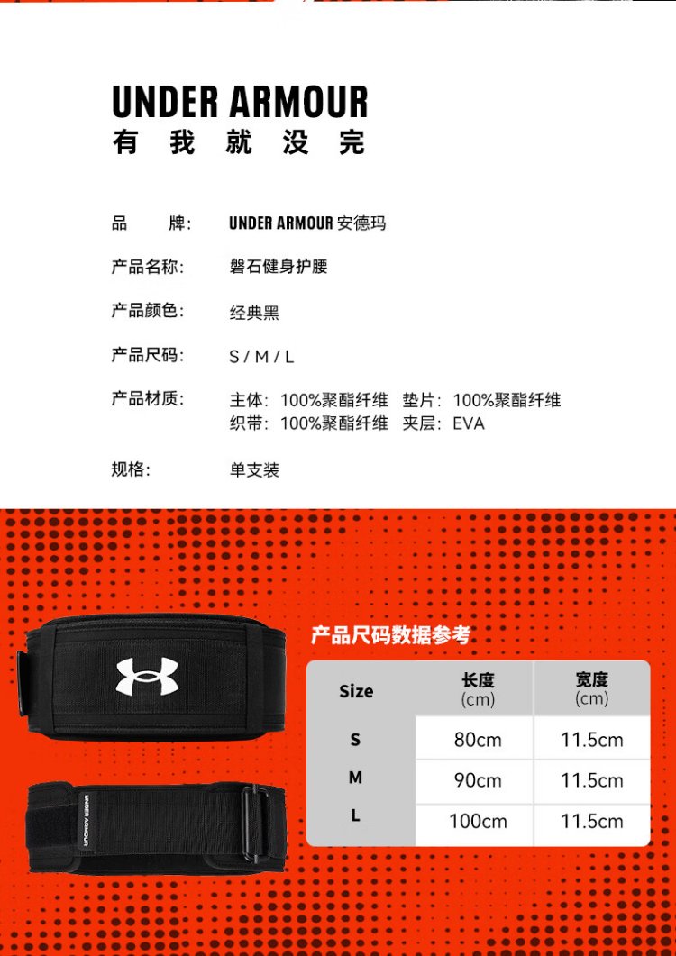 Under Armor Rock Waist Support Fitness Sports Squat Deadlift Belt Men's and Women's Strength Training Professional Weightlifting Iron Waist Girdle S Size