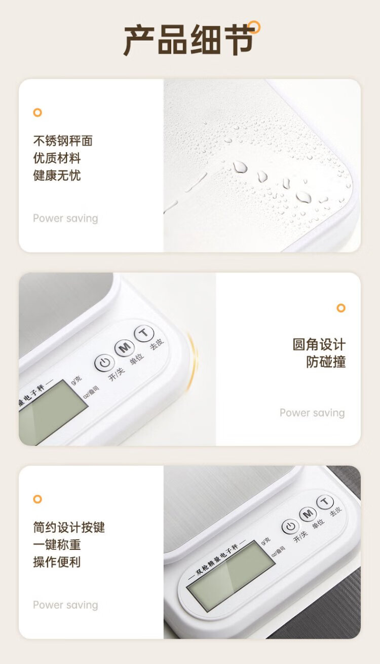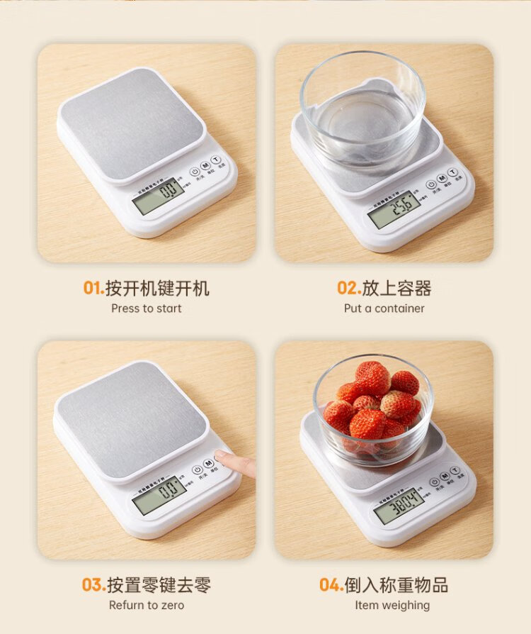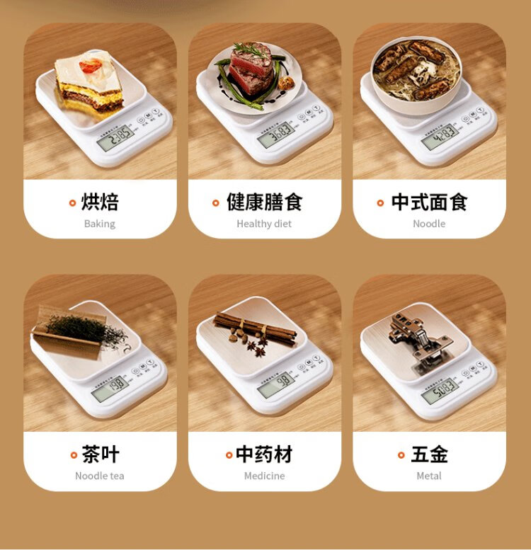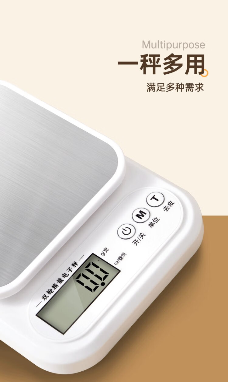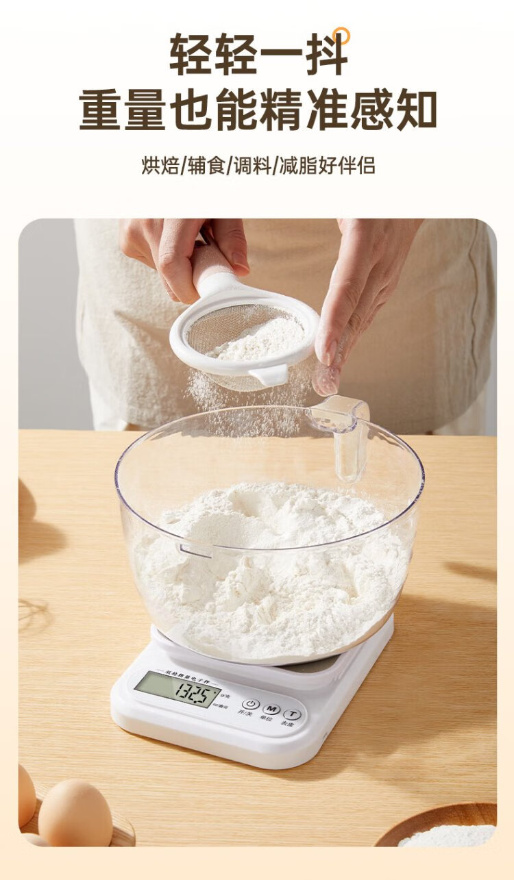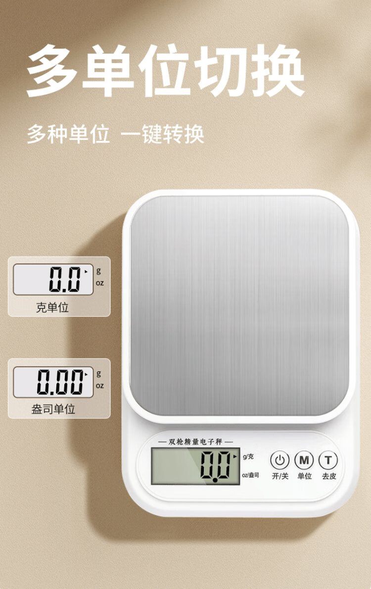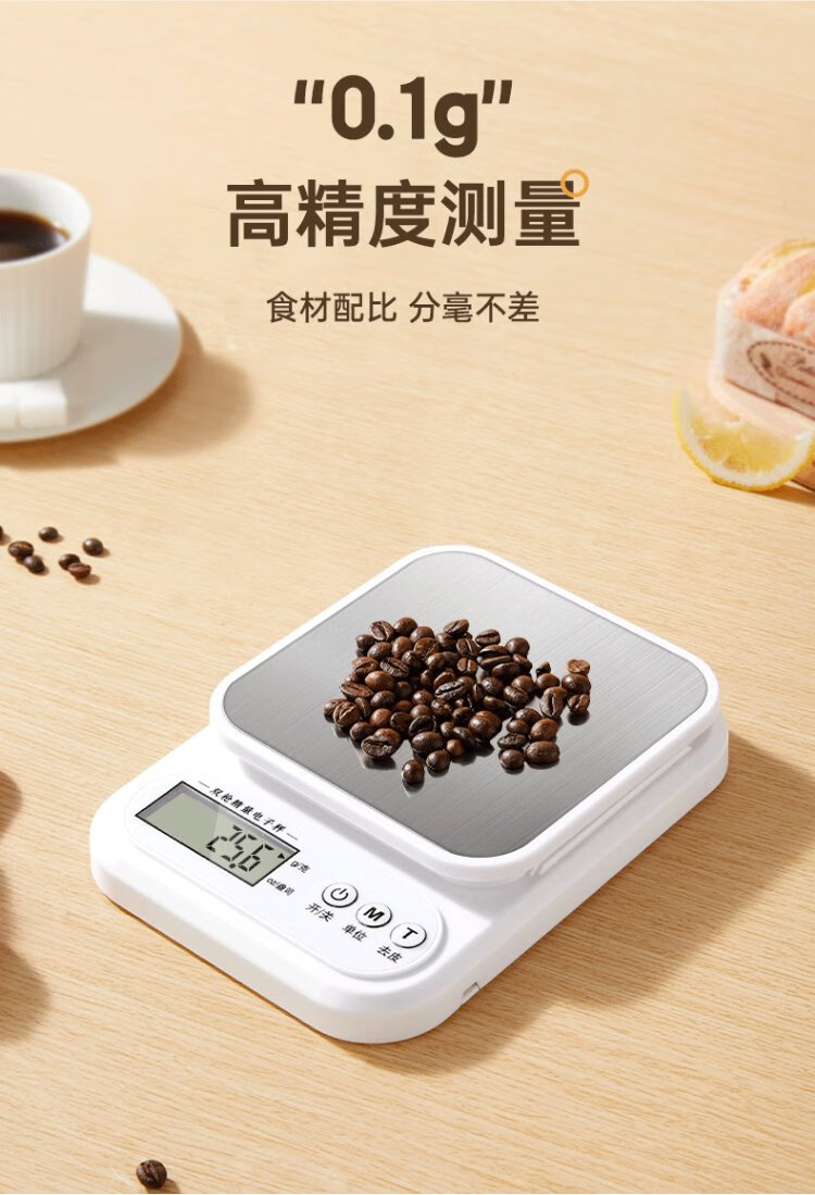 Double gun German-grade movement electronic scale high-precision kitchen scale food baking scale stainless steel rechargeable 3kg/0.1g