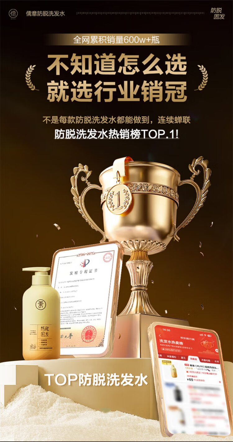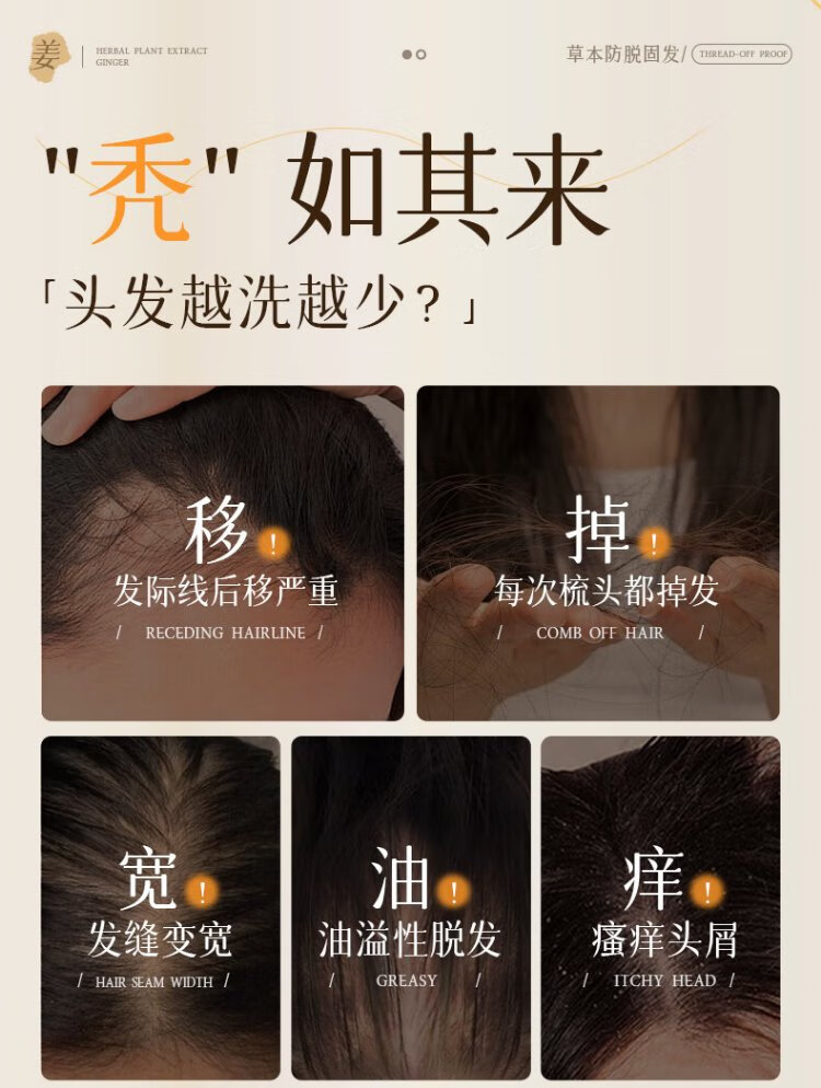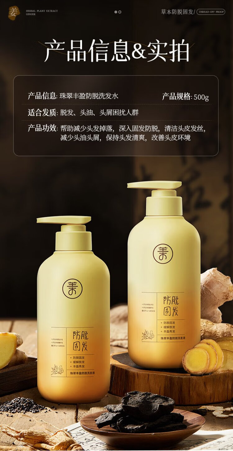RUYI anti-hair loss shampoo 500g Ginger Platycladus leaf solid hair oil control anti-dandruff cream for men and women No. 1 on the gold list