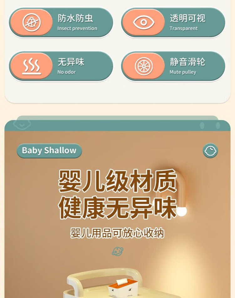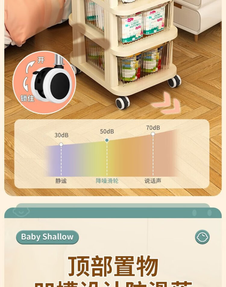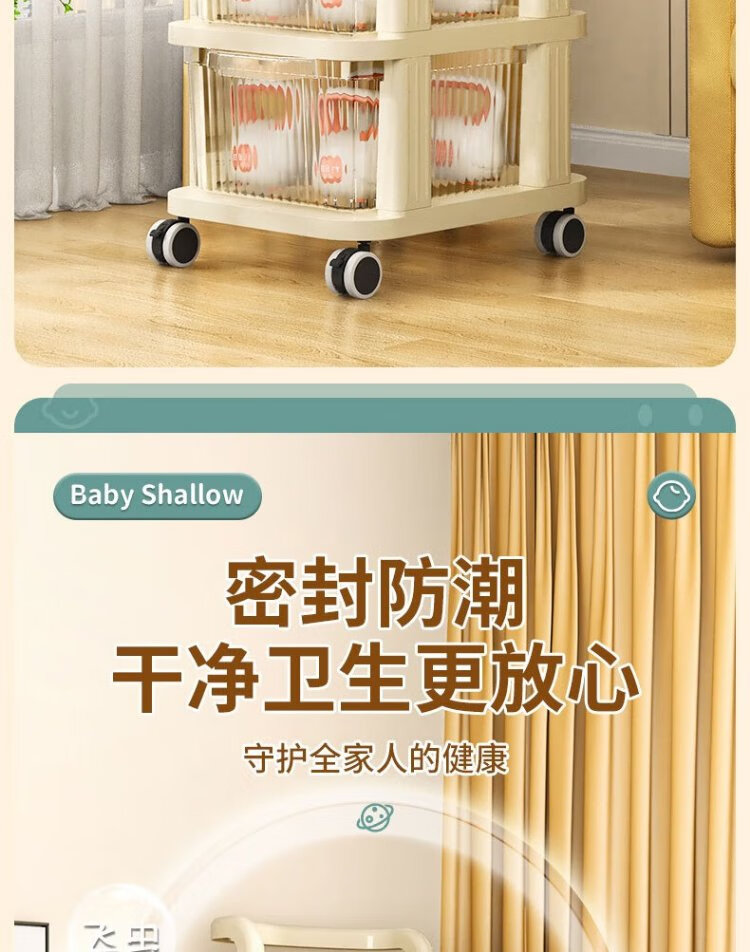 Shunyou stroller storage rack snacks and baby products storage drawer type removable four layers cream white SY-153