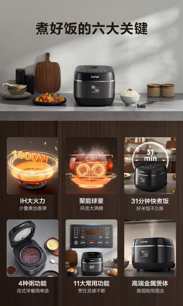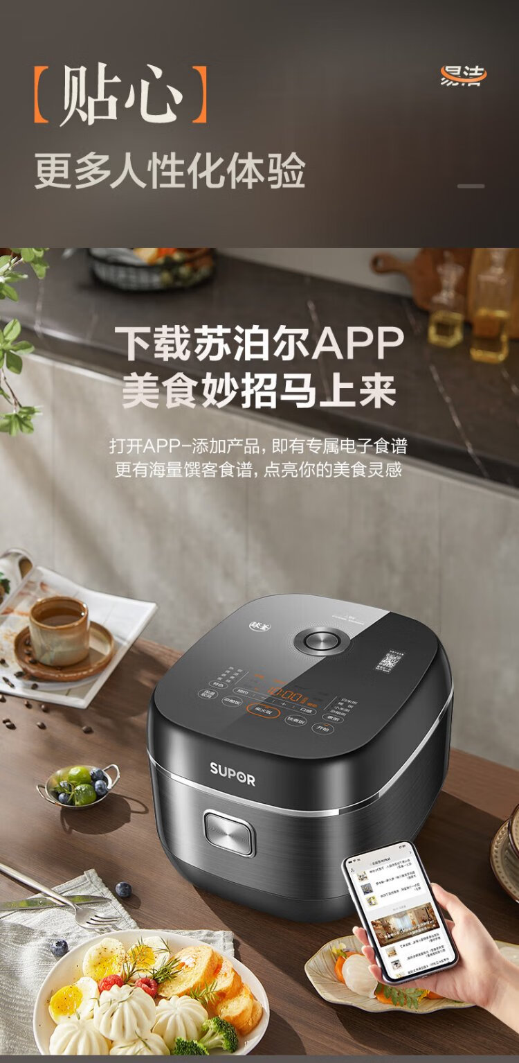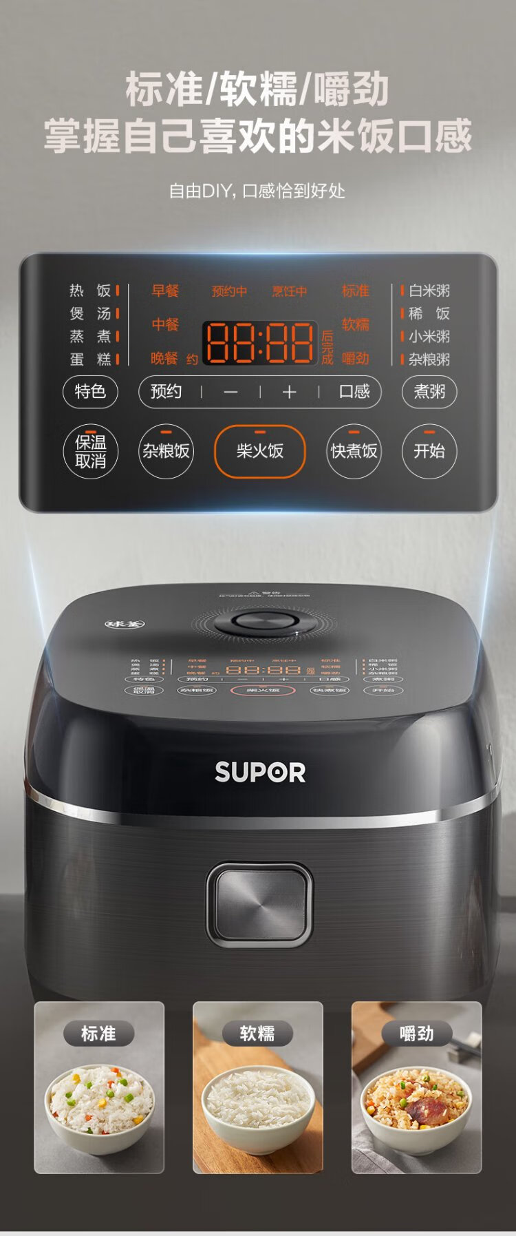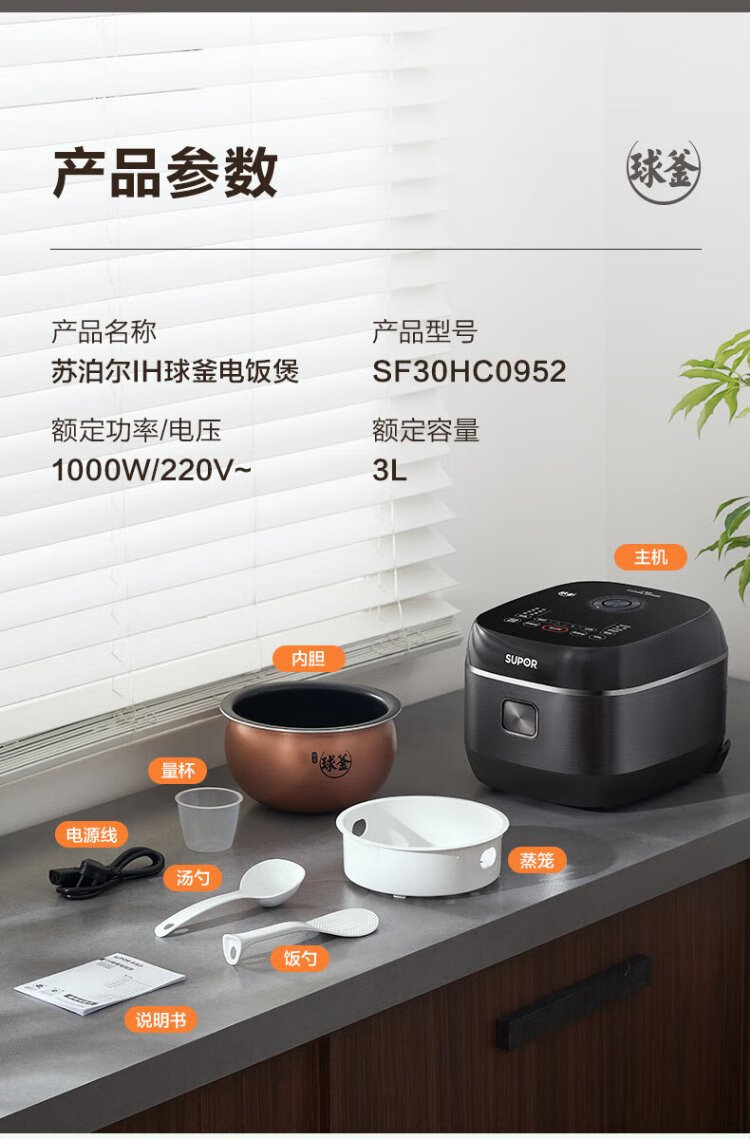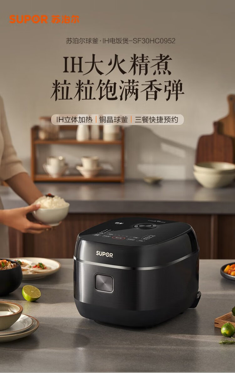 SUPOR small rice cooker for 2-3 people 3 liters IH heating ball kettle inner pot firewood rice multi-grain rice household electric cooking pot non-stick pot smart reservation small mini rice cooker SF30HC0952