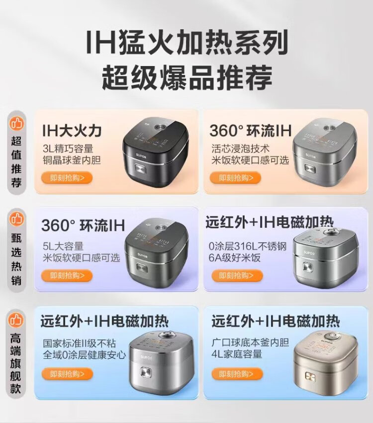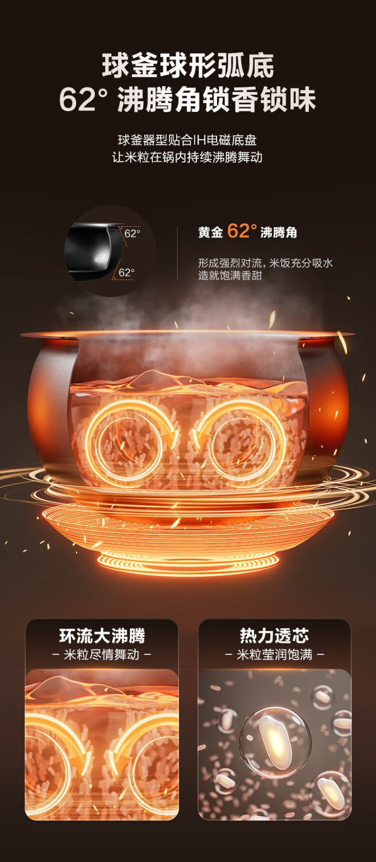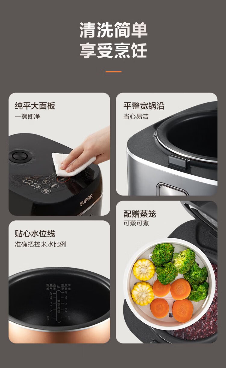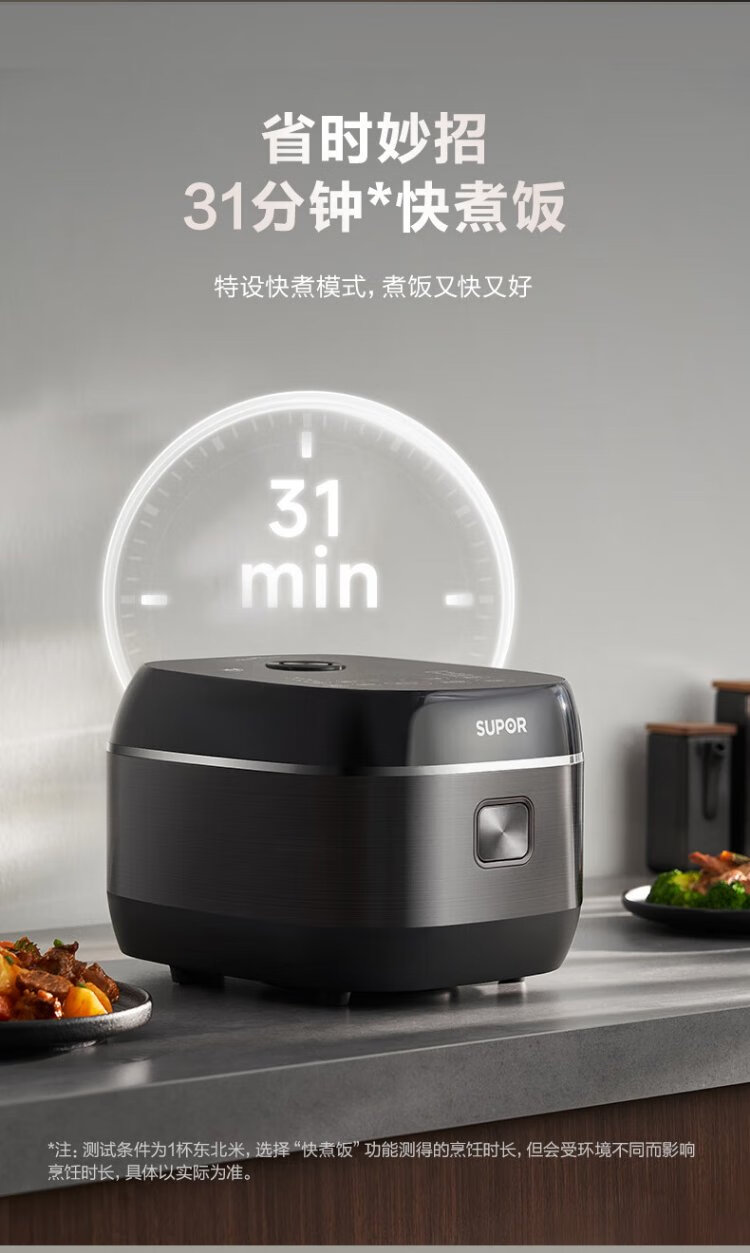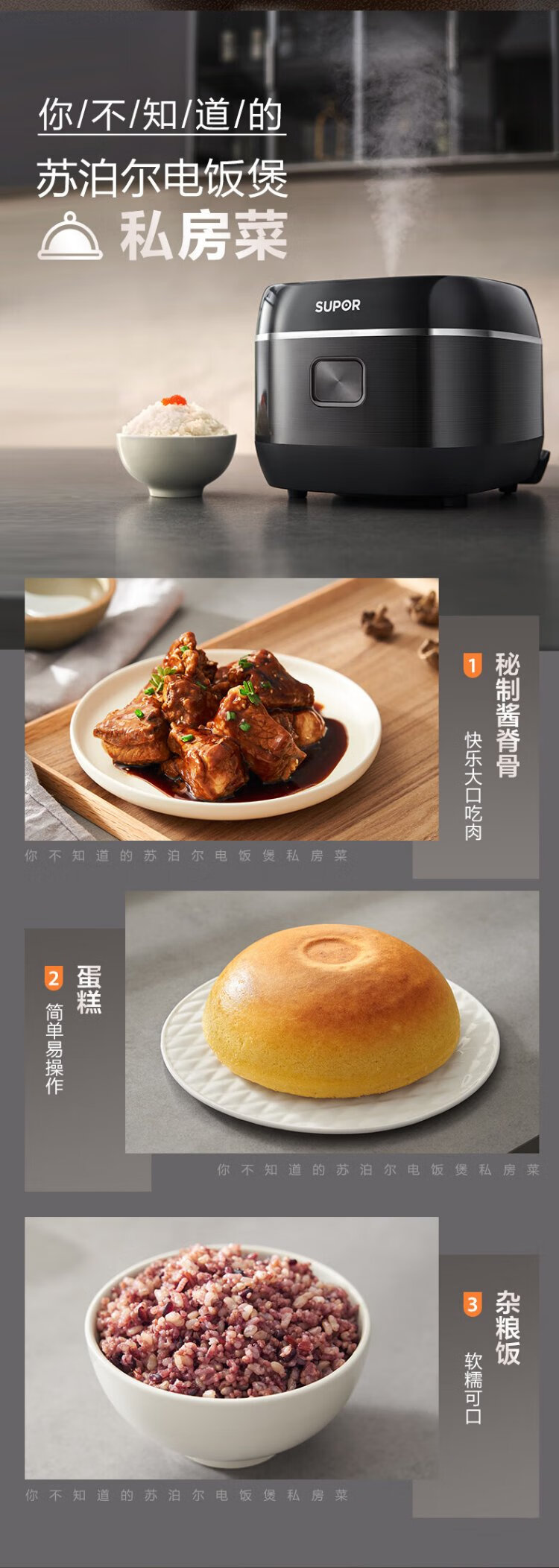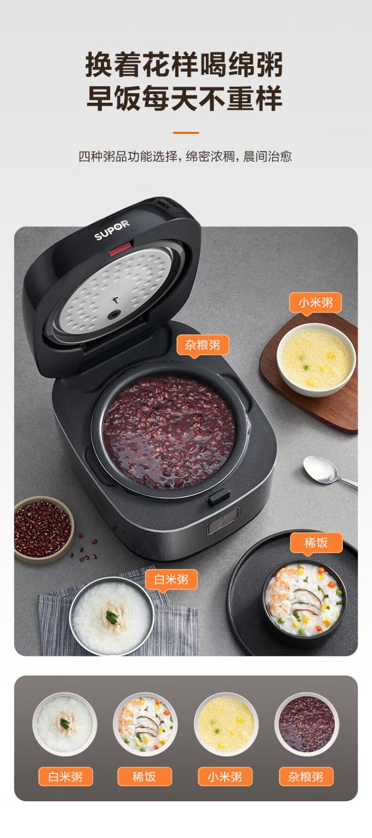 SUPOR small rice cooker for 2-3 people 3 liters IH heating ball kettle inner pot firewood rice multi-grain rice household electric cooking pot non-stick pot smart reservation small mini rice cooker SF30HC0952
