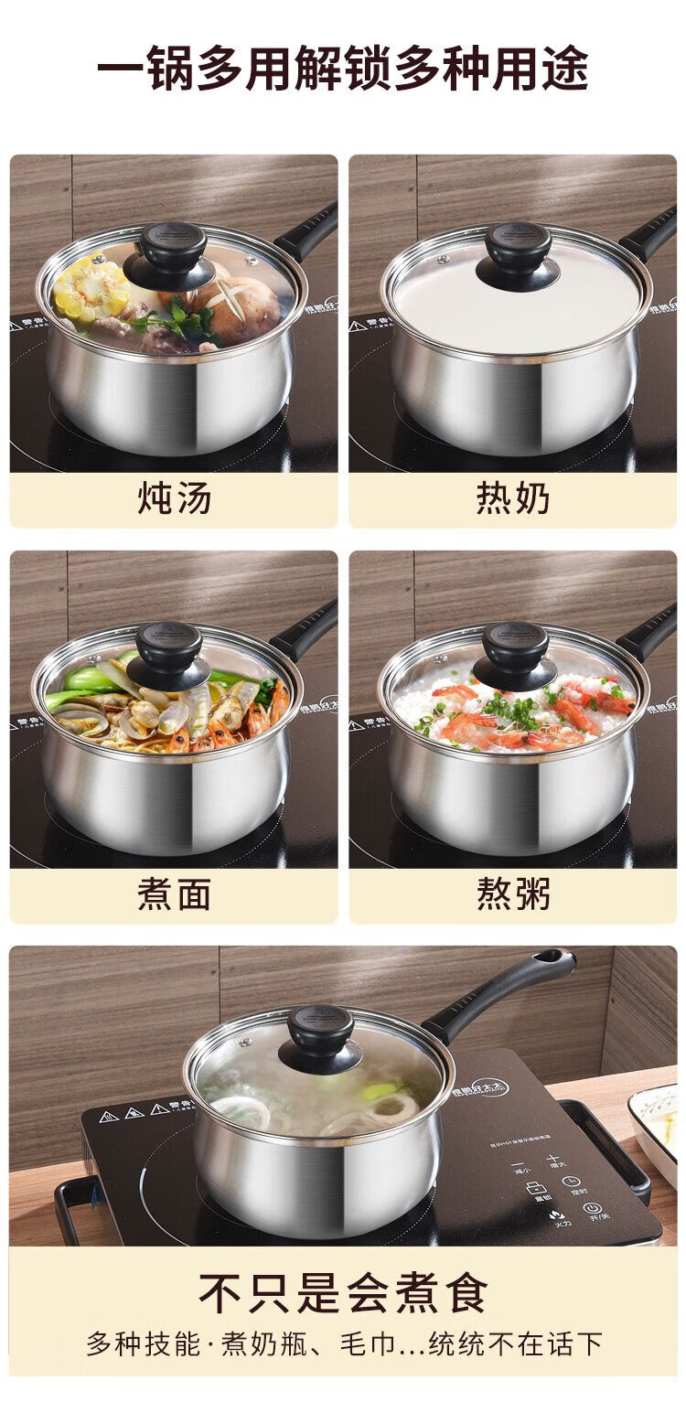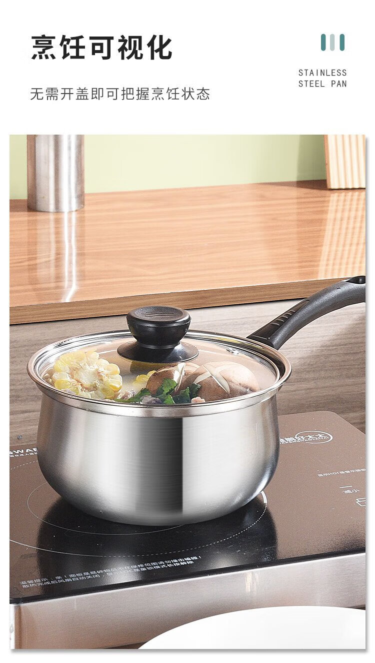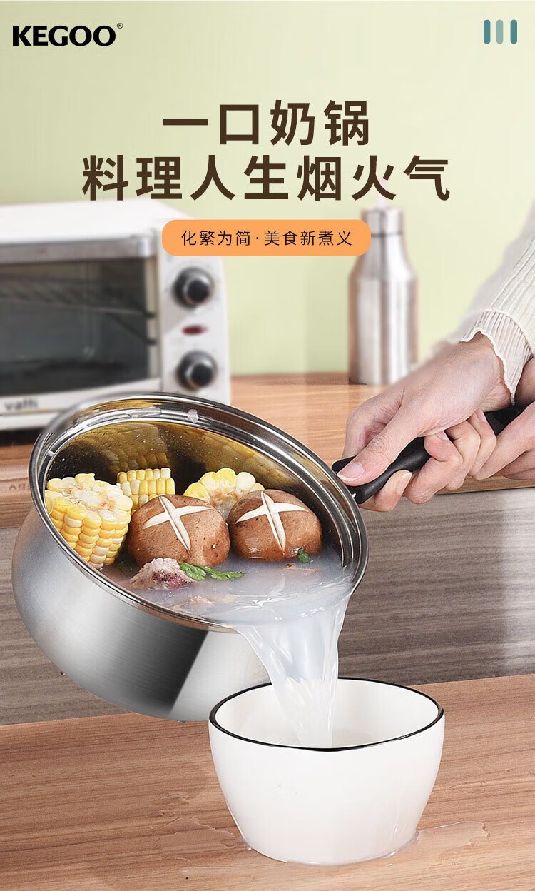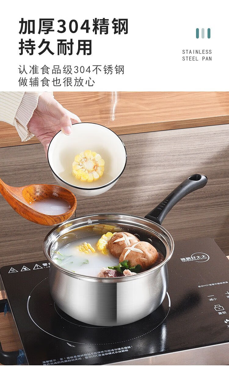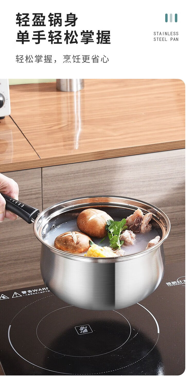KEGOO 304 stainless steel small milk pot 18cm food grade baby food pot soup pot noodle pot KG122