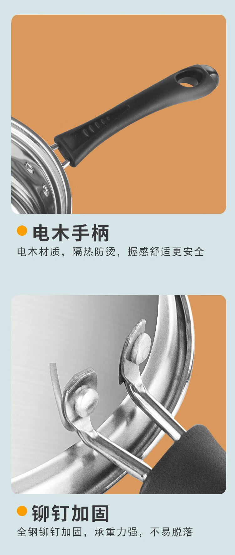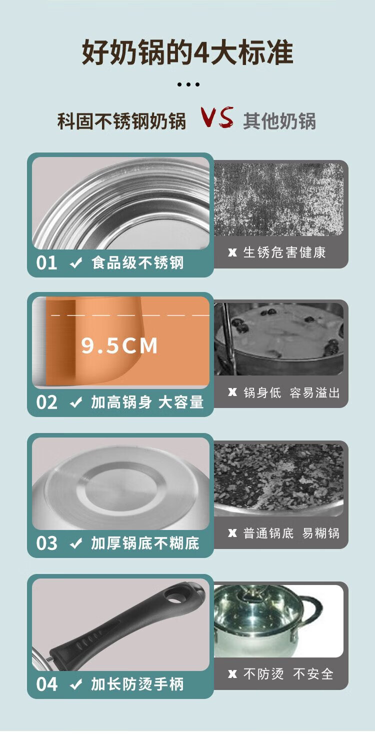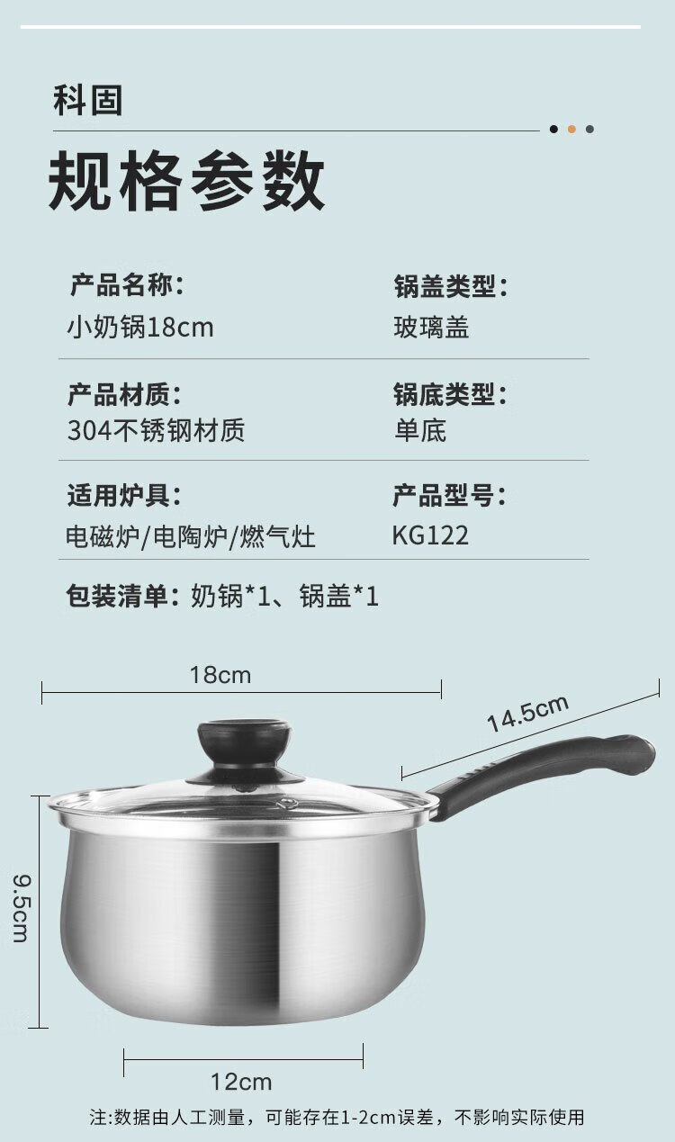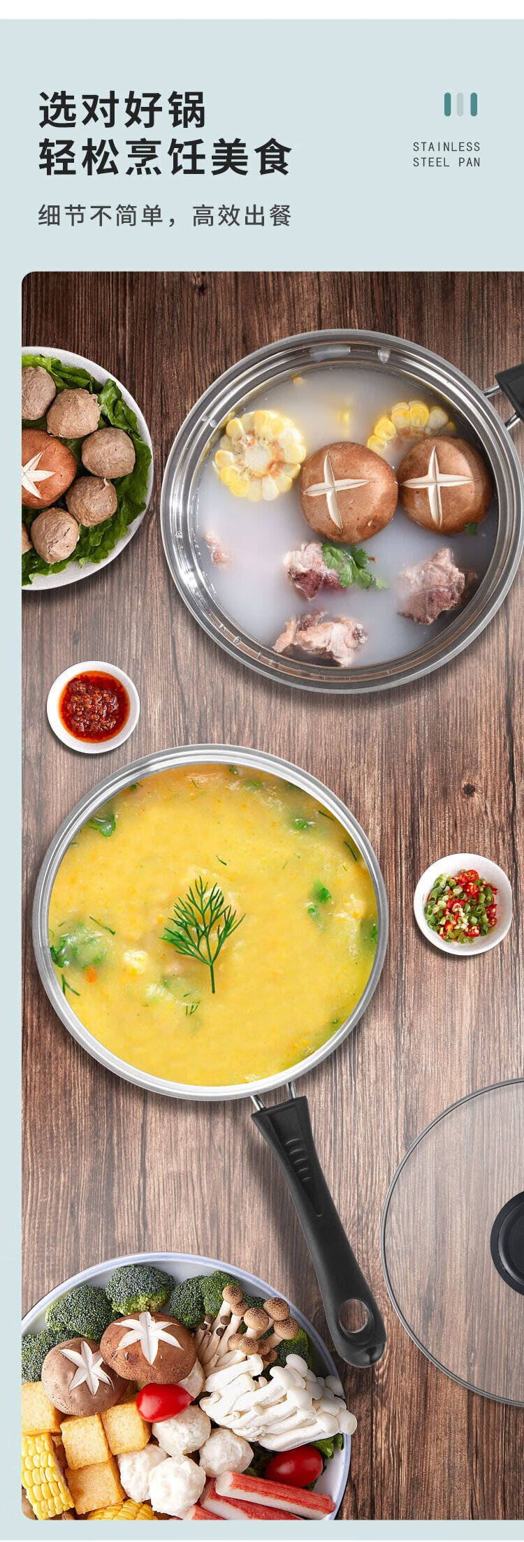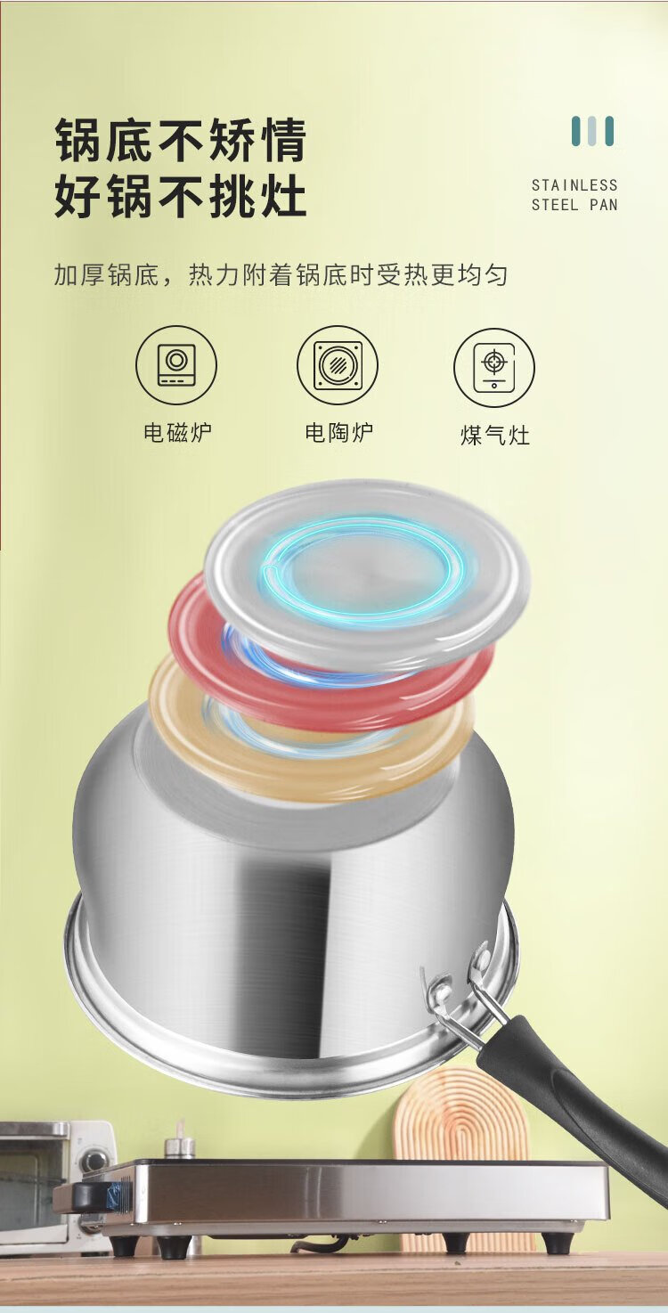 KEGOO 304 stainless steel small milk pot 18cm food grade baby food pot soup pot noodle pot KG122