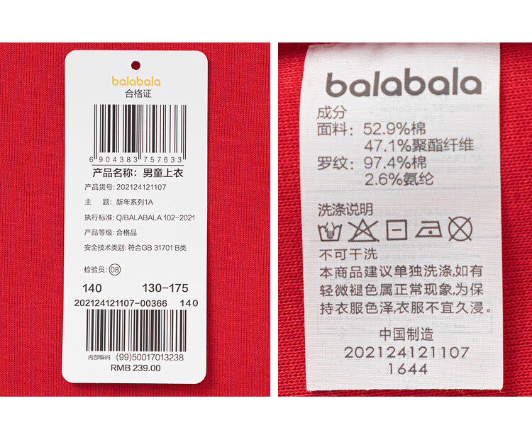 Balabala children's clothing children's sweatshirts men's spring and autumn big children's long-sleeved tops trendy New Year red
