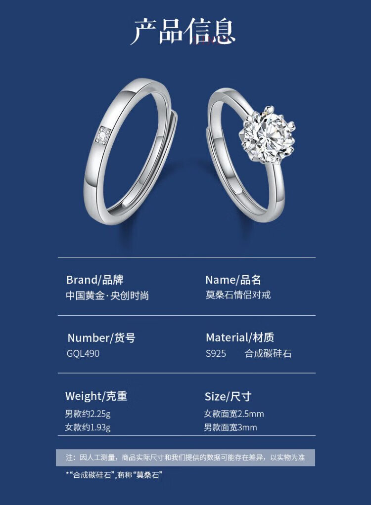 Central Fashion Fashion Chinese Gold Diamond Ring Moissanite Ring Couple Ring Proposal Ring Birthday Gift One Pair for Girlfriend