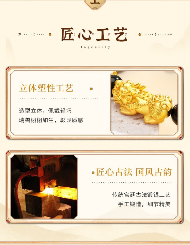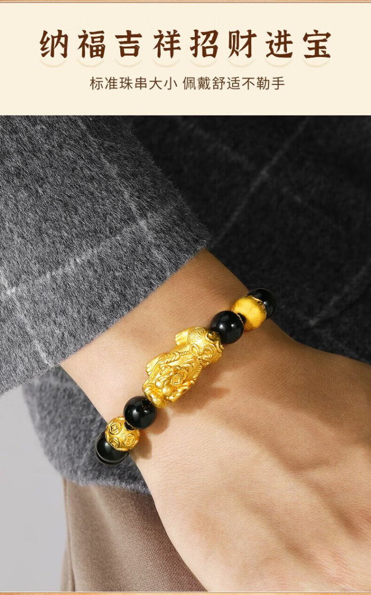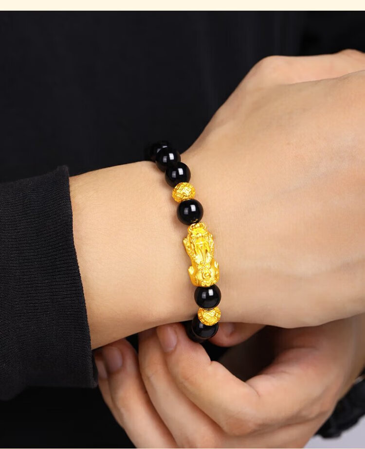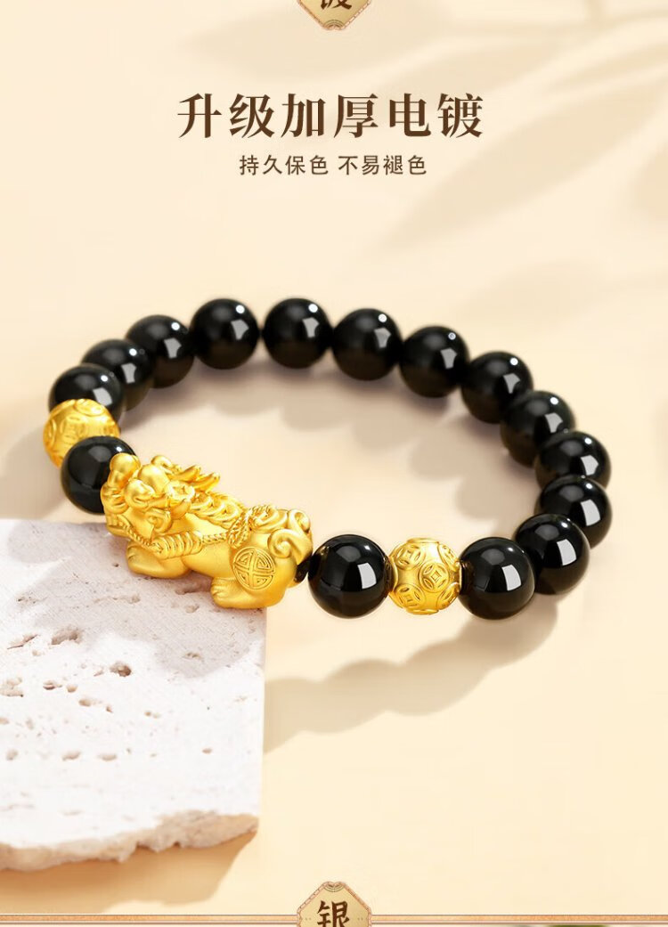 Central Fashion China Gold Pixiu Men's Pure Silver Bracelet Obsidian Bracelet Birthday Memorial Gift for Boyfriend