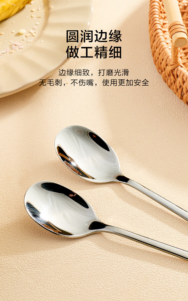 Made in Tokyo, soup and rice spoons, 304 stainless steel food grade complete tableware, Korean round spoons, corrosion-resistant and rust-resistant, 2 pieces