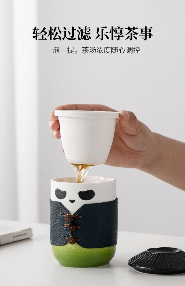 Heart Yuli Panda Tea Cup Tea Water Separation Souvenir Gift Boy Birthday Gift Men’s Souvenir for Father and Teacher