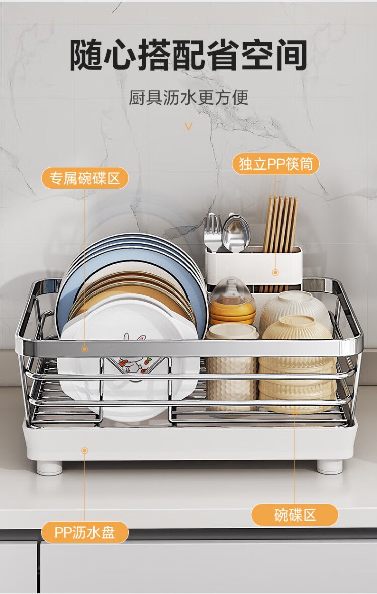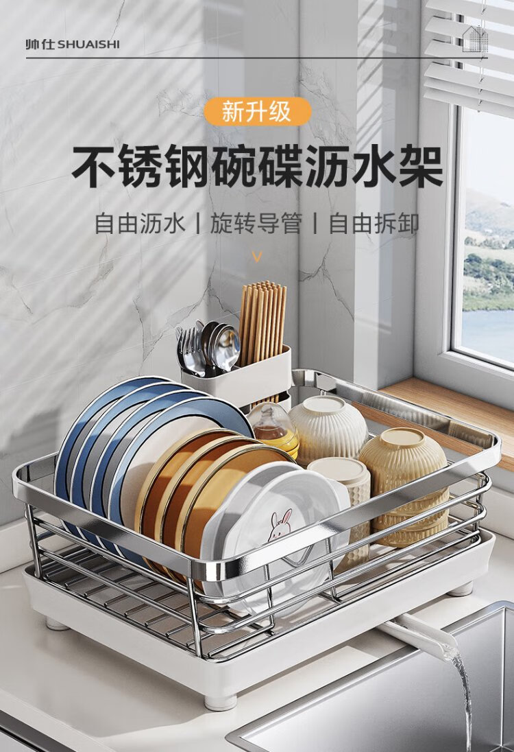Shuaishi 304 stainless steel dish rack kitchen rack drain bowl rack bowl and chopstick storage box bowl and chopstick tube storage rack