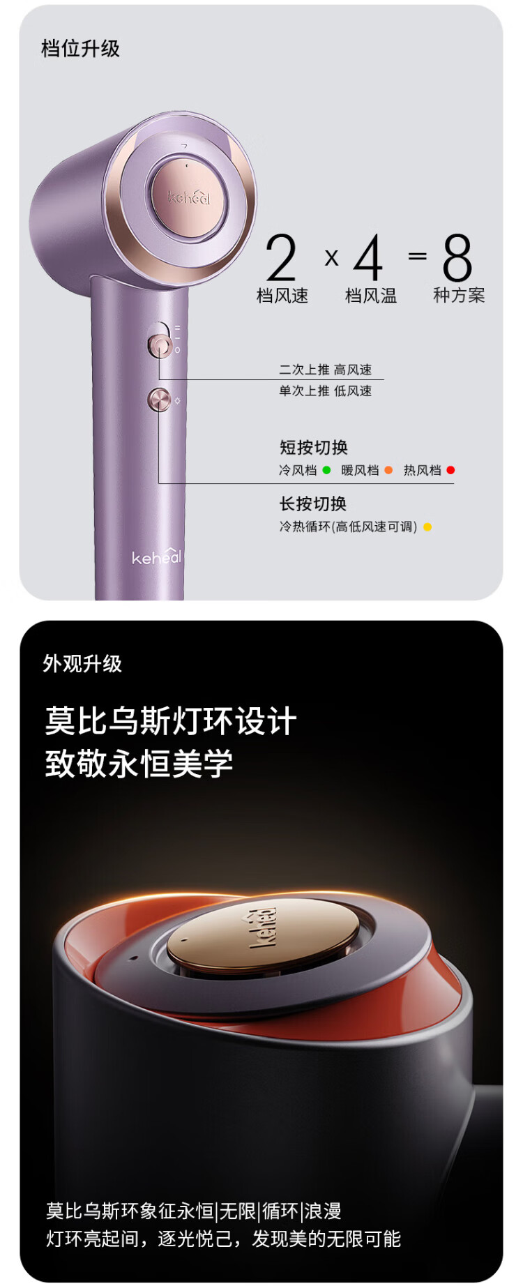 KEHEAL Kesi Water Light Essence Bomb High Speed Hair Dryer 2.7 Billion Plasma Hair Care Home Negative Ion High Power Non-Hairing Portable Hair Dryer Recommended Gift FE Rose Gold