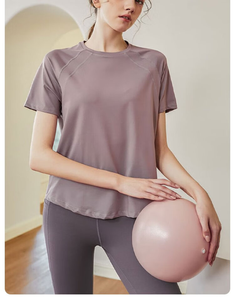 Xue Qianman yoga top women's fitness clothing summer short-sleeved top running sports slim slimming top Pilates training clothing