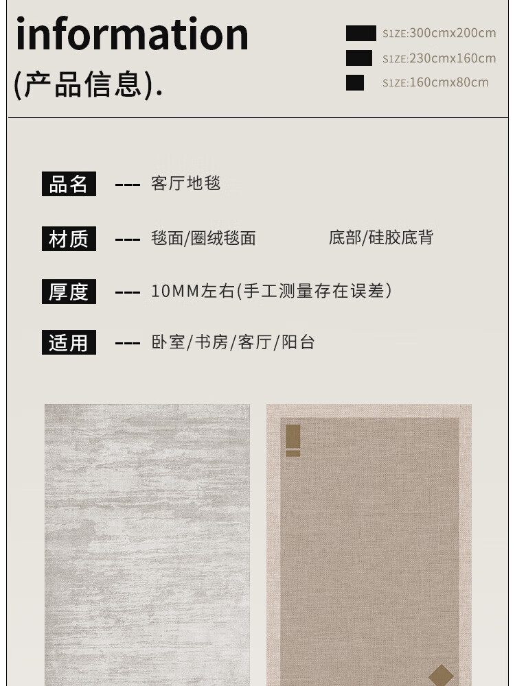 Budis carpet living room light luxury high-end sofa coffee table large size waterproof anti-slip no-wash and wipeable 2025 new floor mat
