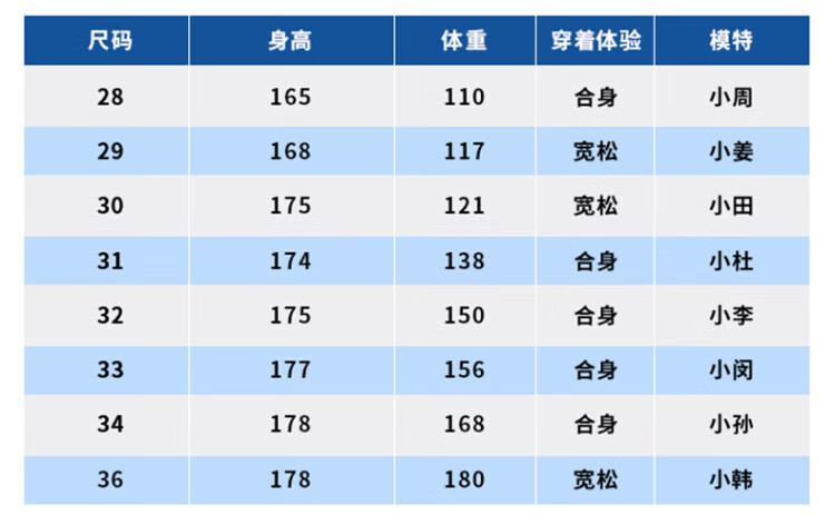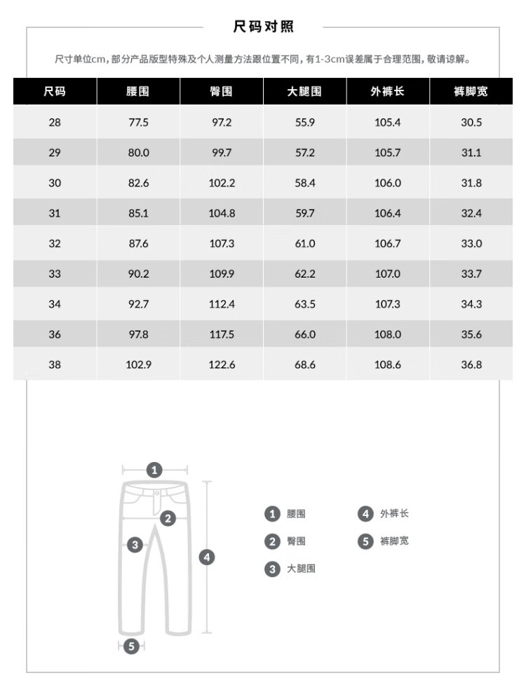 USA(inch) 28-30 30-32 32-34 34-38 38-42