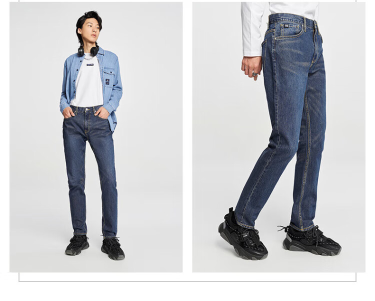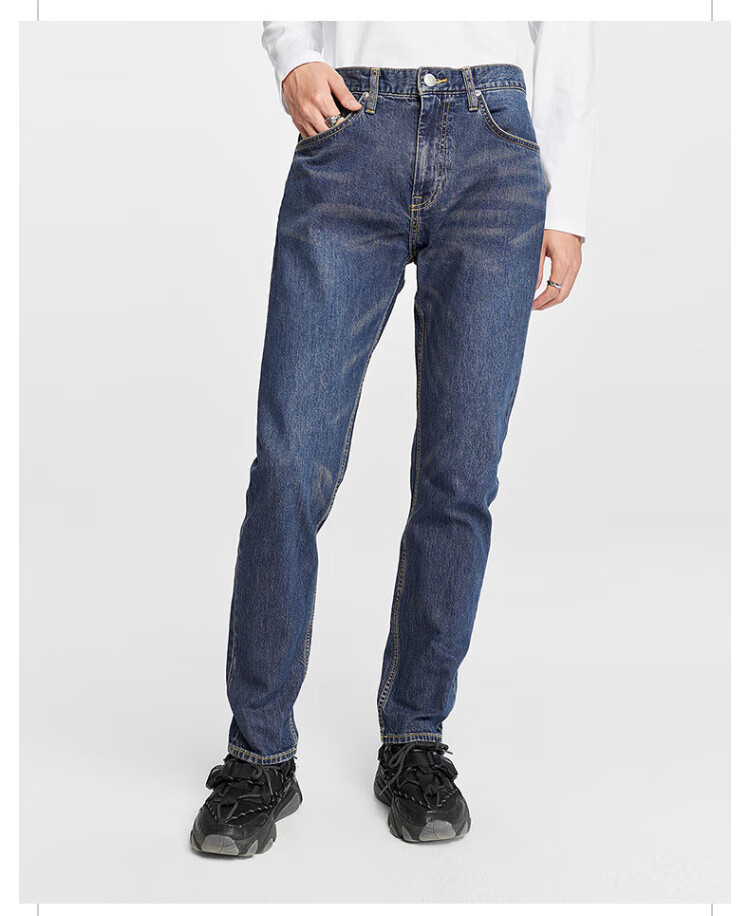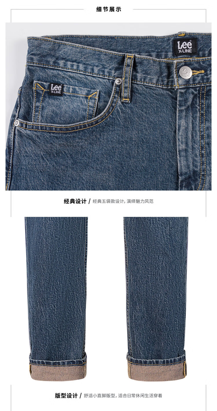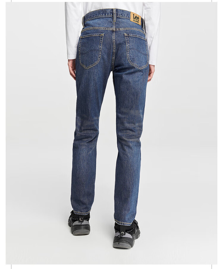Lee经典五袋款舒适中腰锥形中深蓝男牛仔裤休闲潮
